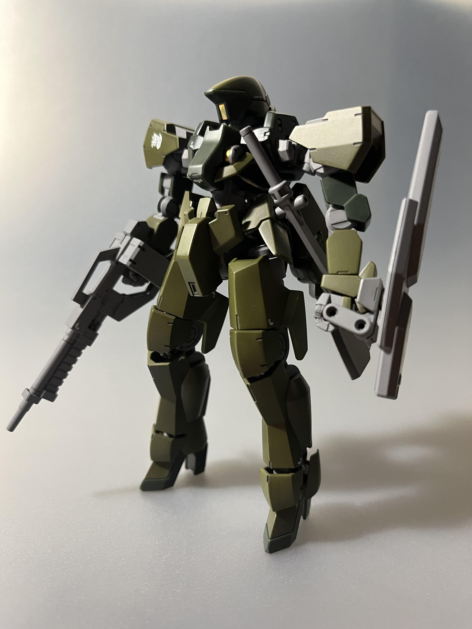 去年、鉄血が10周年だったので当時を思い出しながらアニメを見返すと作りたくなり作成。ファーストで言うところの量産型ザクの位置付け的MSで脚の先から頭のてっぺんまで量産感がたまらない大好きな機体です。脚は後はめ加工。シールドはオプションパーツセットより。デカールはモデグラ2016年11月号付録より拝借。もう、10年前ですが、デカールは劣化なく使えました。またデカールの付録とかやってほしいな。