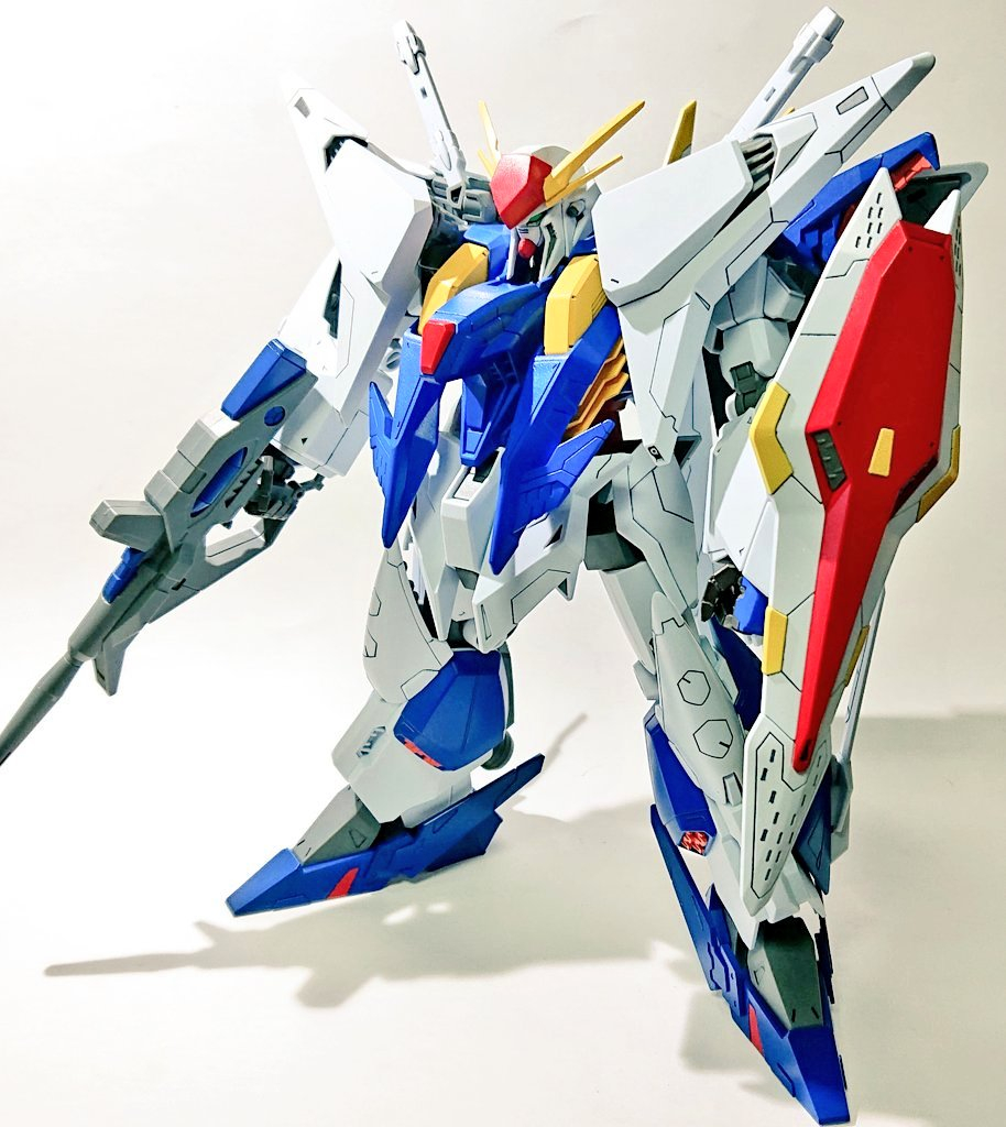 最初映画を観てからもあまり愛着の湧かない悪人面だったので、HG νガンダムのフェイスを移植してハンドパーツはMGユニコーンのを、後はバルカンや装飾周り等をスクラッチしてますね