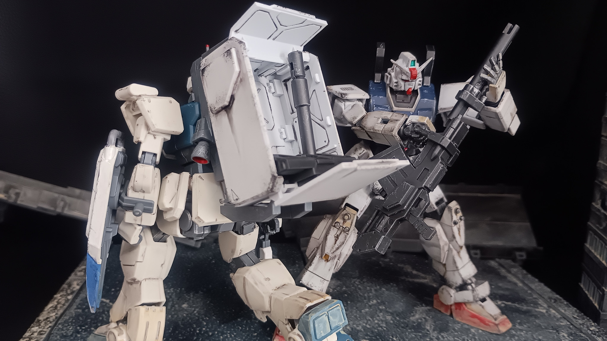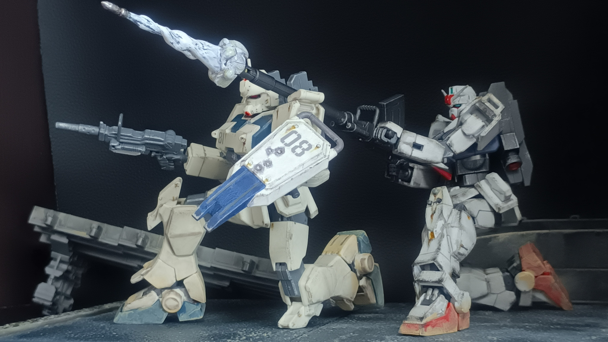 これはカッコイイですね!😄陸ガンに陸ジム!この作品見てしまうと、またチャレンジしたくなります!😄市街地戦の雰囲気が素晴らしく!理想的なショットばかりで見ていて楽しいです!👍