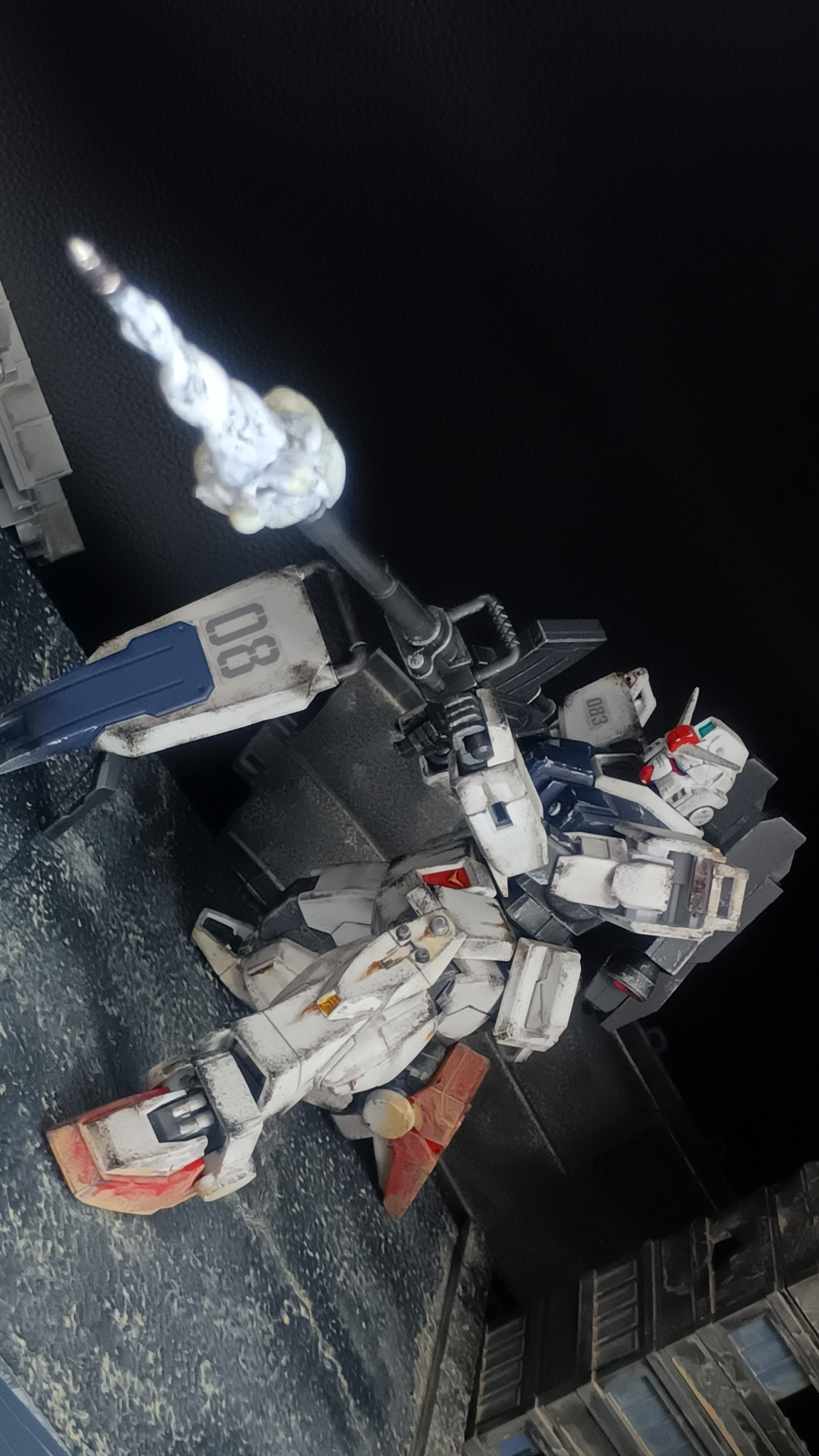 ウェザリングの陸ガン、EZ8とのショット、リアルなジオラマにエフェクトがめちゃ映えて、かっこいい😆👍
