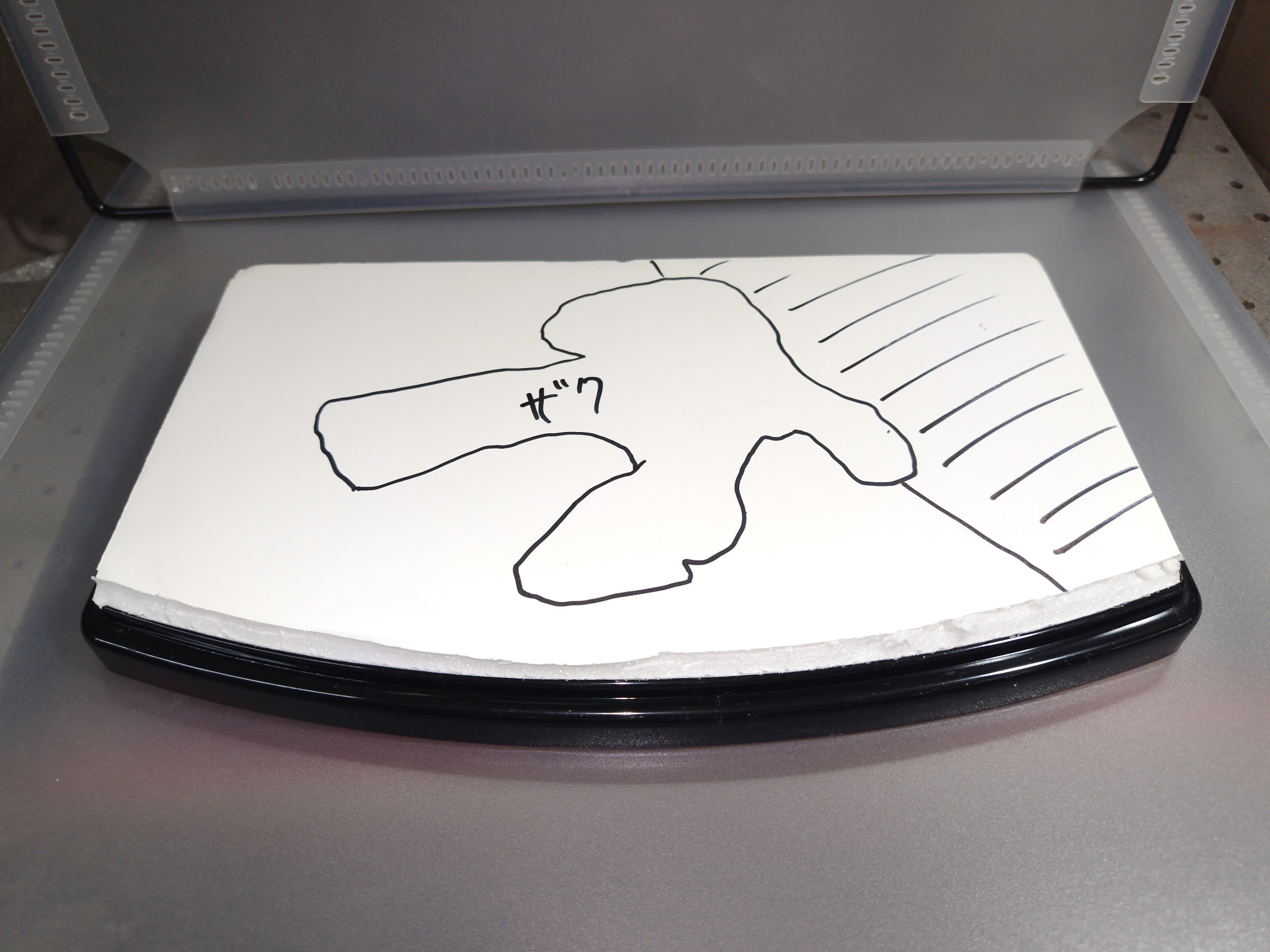 適当なベースに発泡スチロールを接着してアタリを付けます。サイズが問題ないならカマボコの板でも大丈夫です。