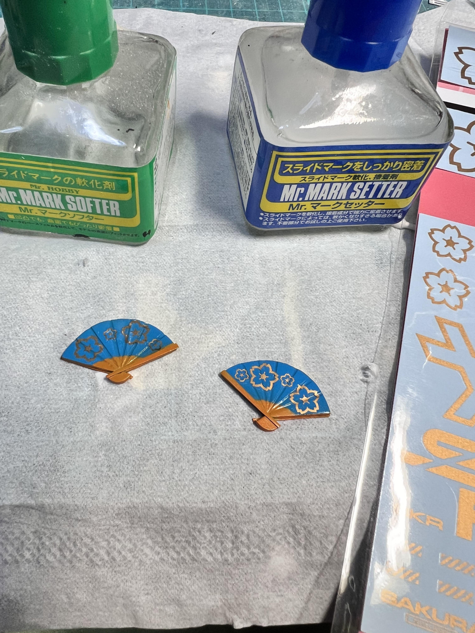 プラ板を切り出してから溝を掘り、それっぽく仕上げました。センスがないので苦戦しました(扇子だけに(gundam-kao5))。