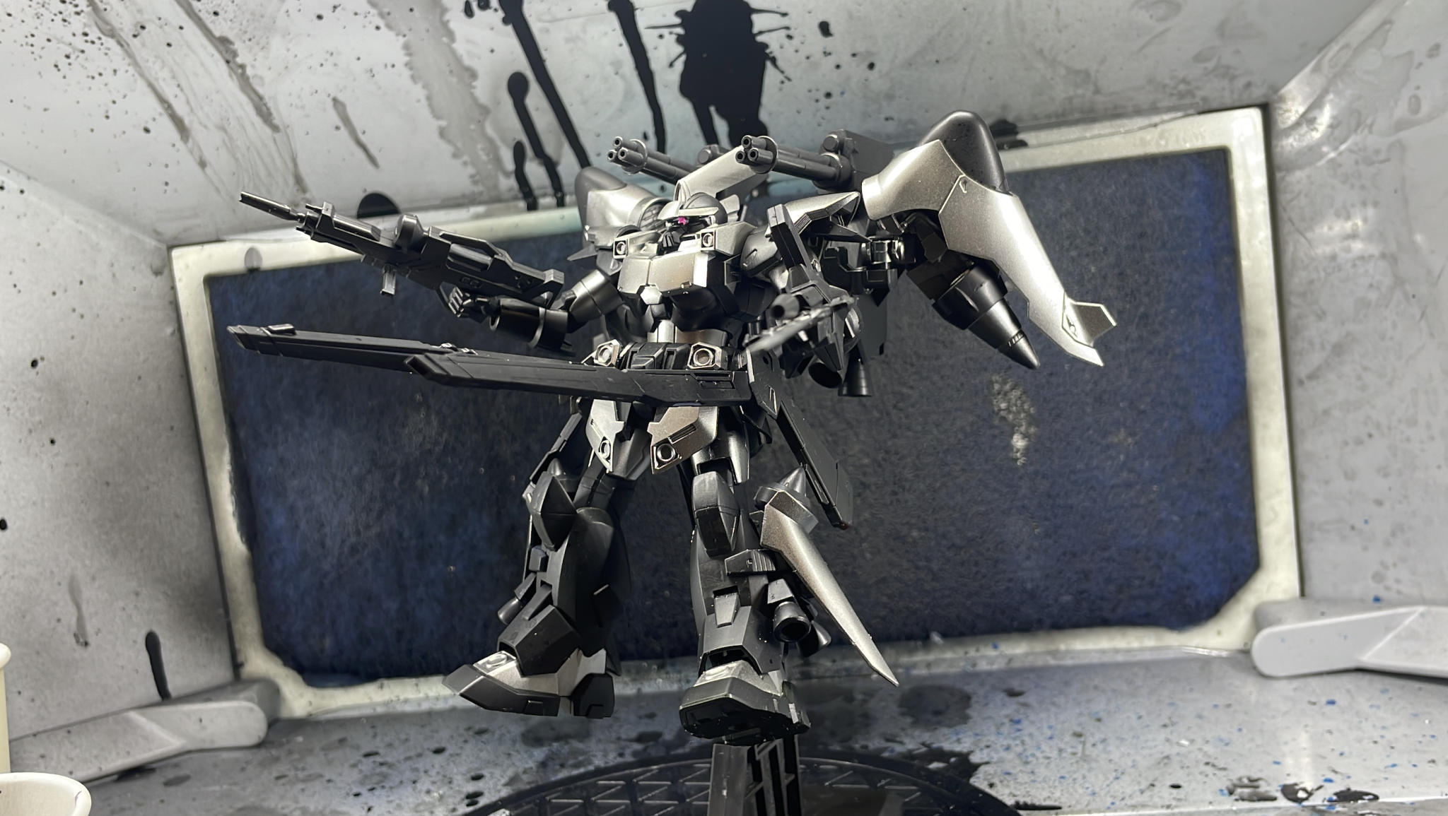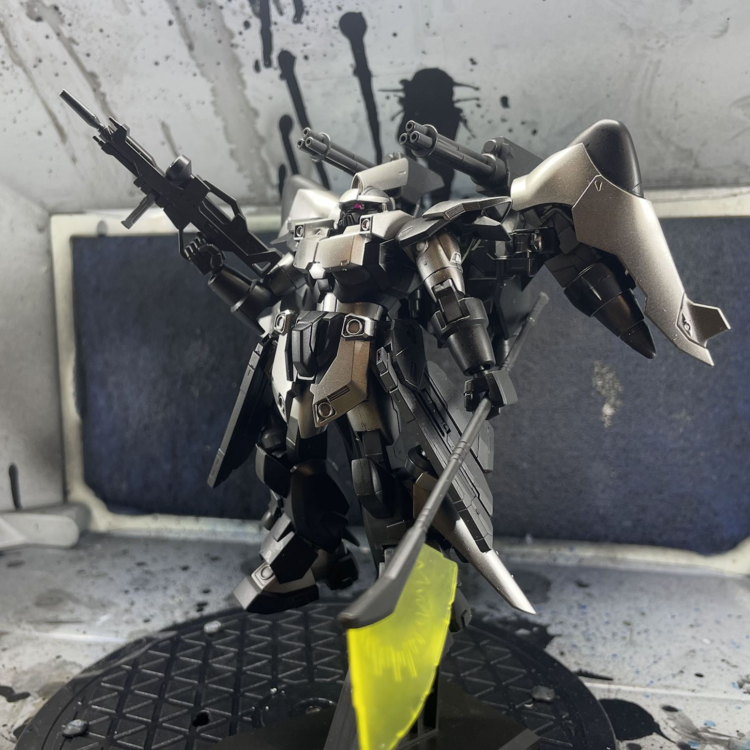 着脱式の試作ビームガトリング砲「ハイドラ」からビーム供給をしており、ビームが無くなるとガトリング砲を外し、本来のジンハイマニューバで戦闘を続行できる設定にしました。