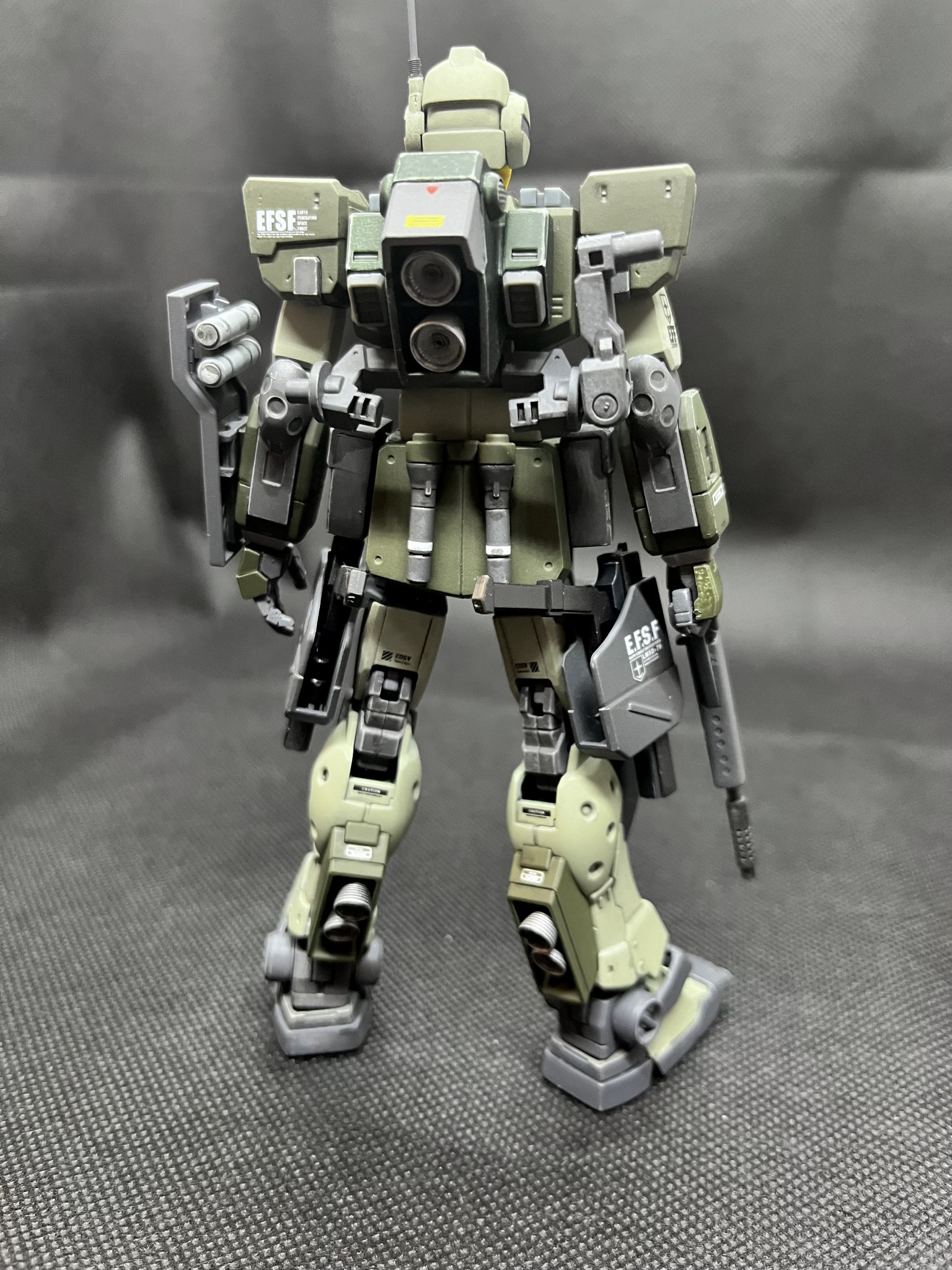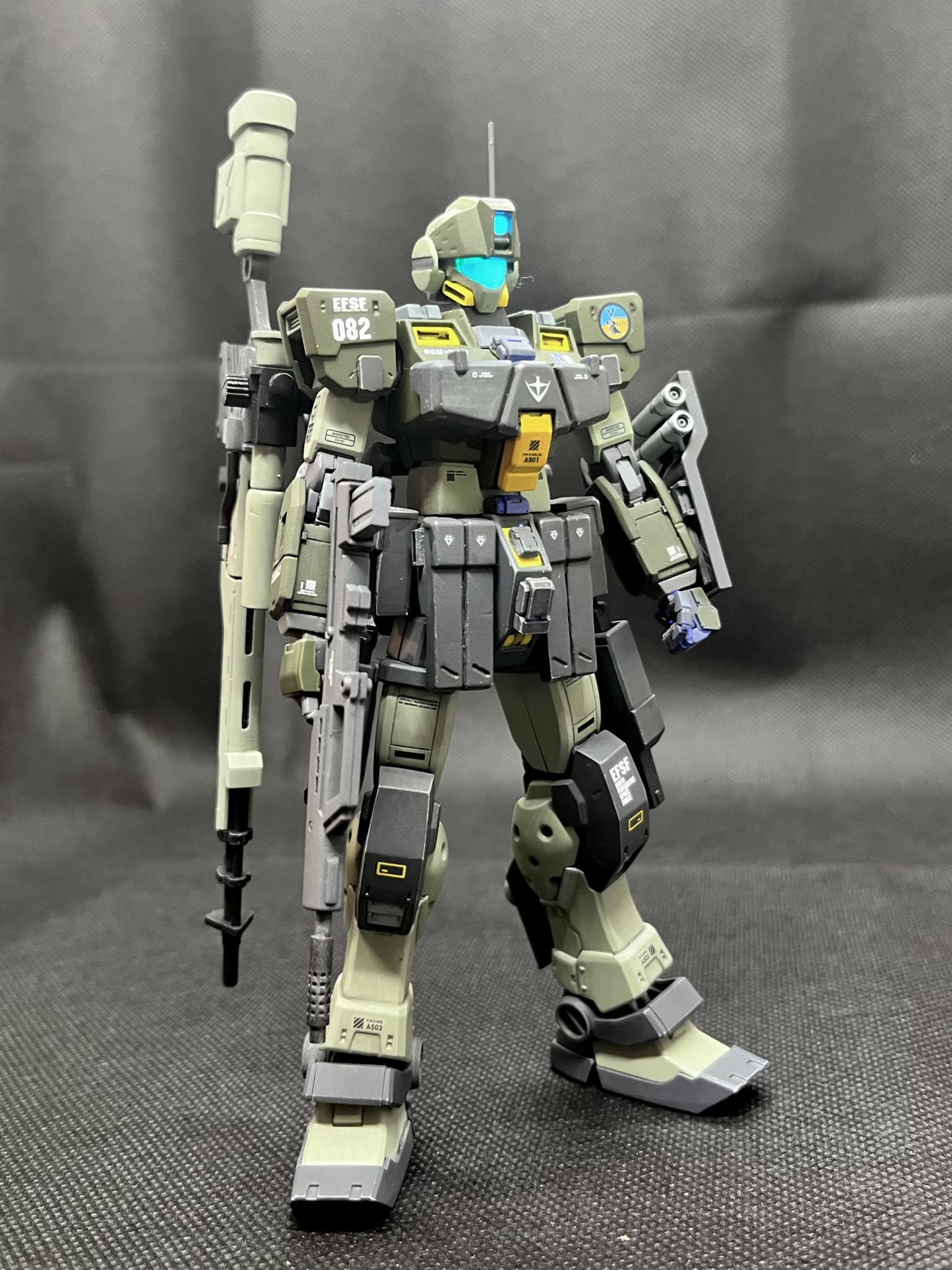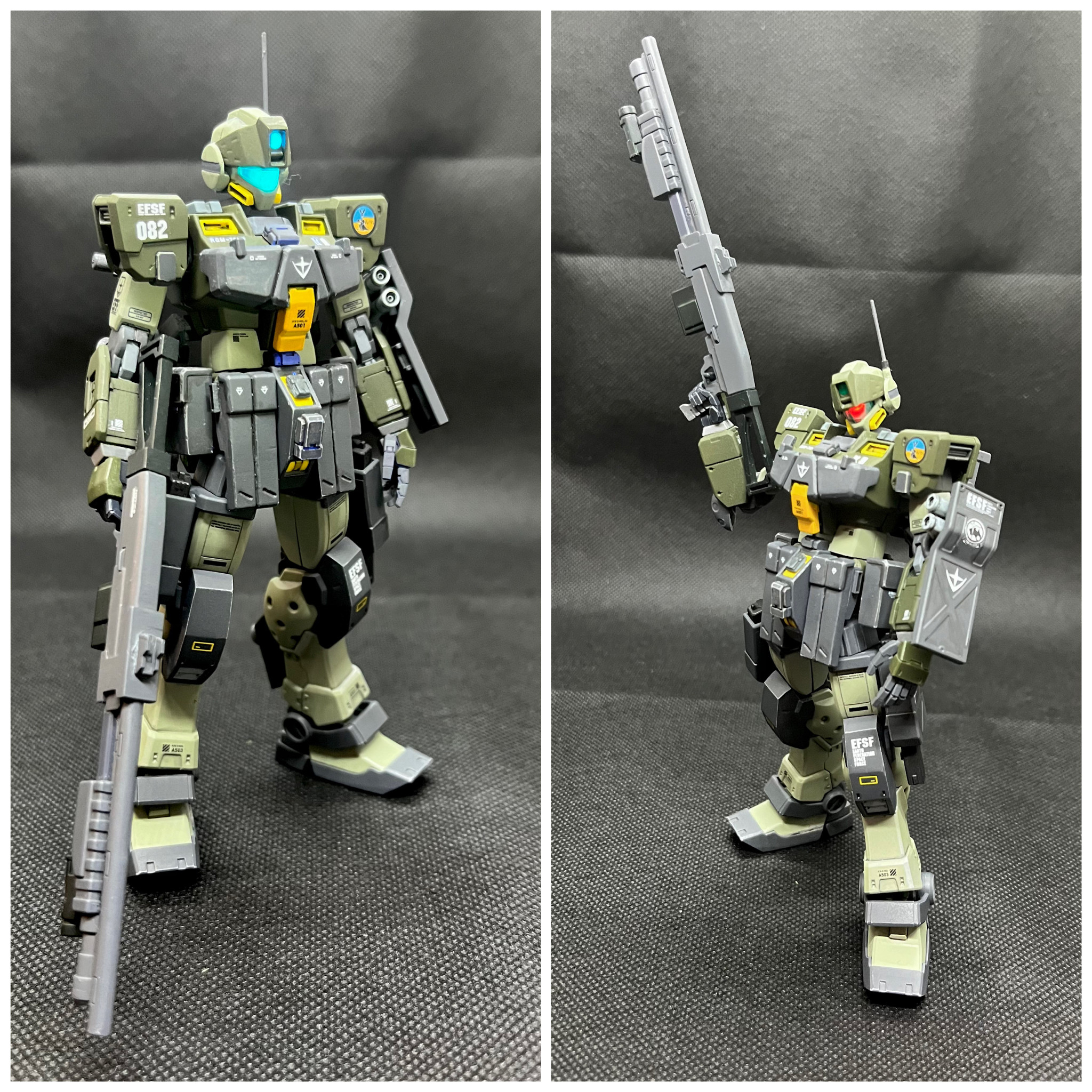 スナイパーライフルを背中に背負って、中距離での格闘スタイルで。ライフルはジムキャノンⅡのものを改造(マガジンを上下逆に付け直し等)したものを。
