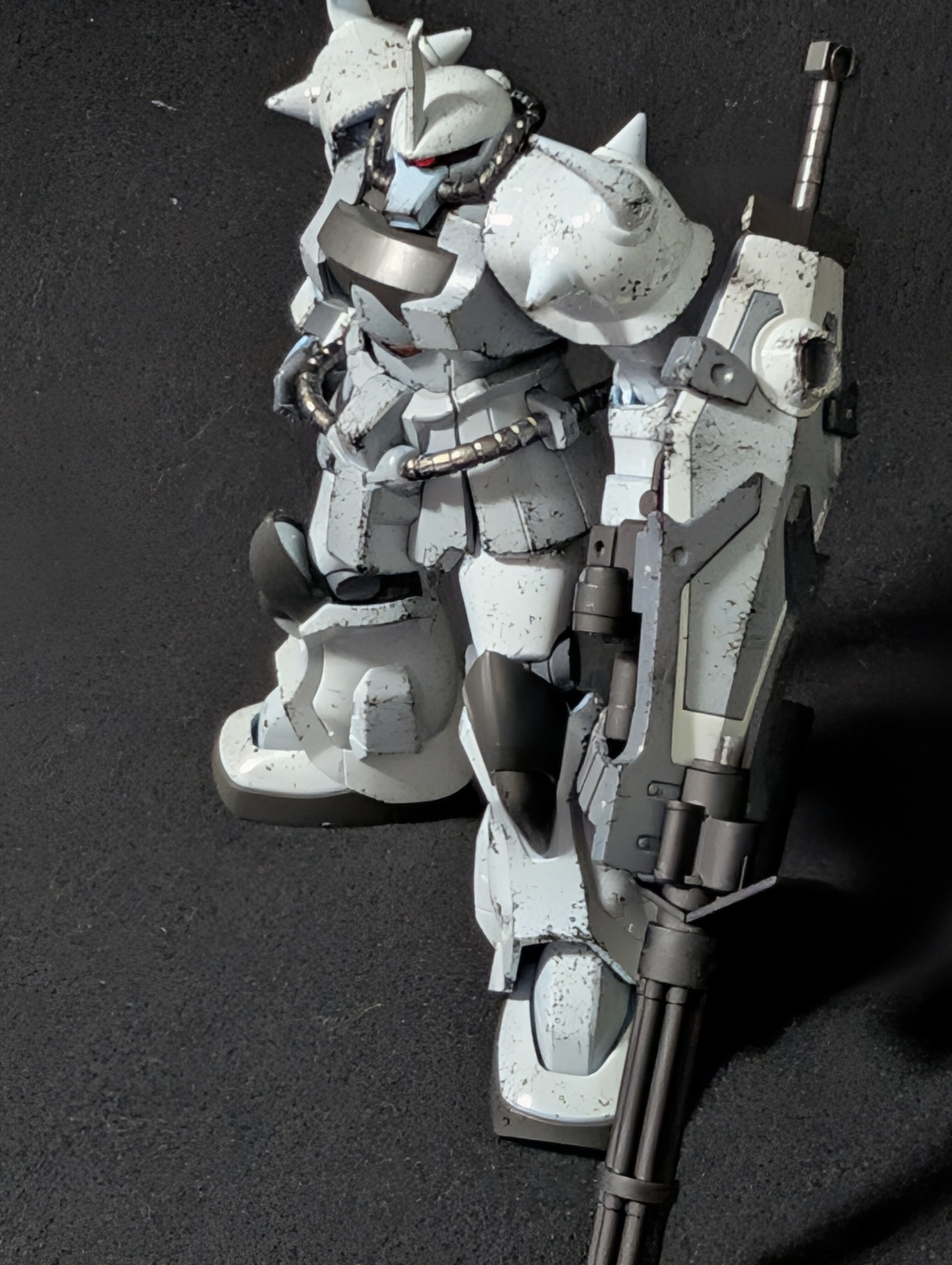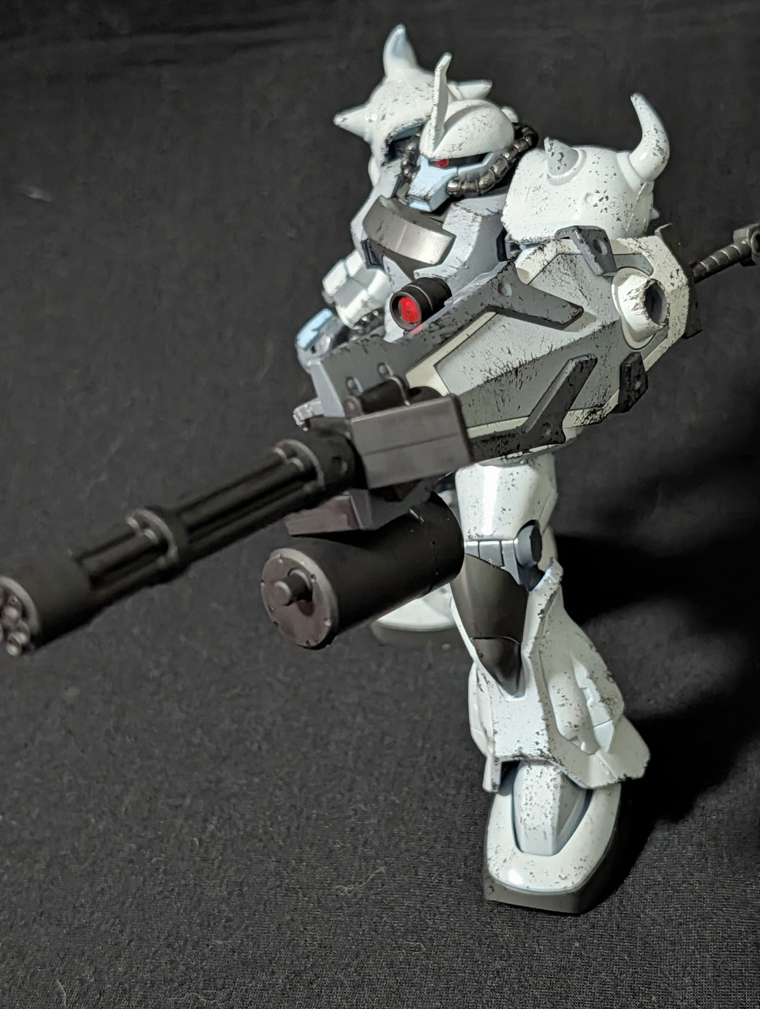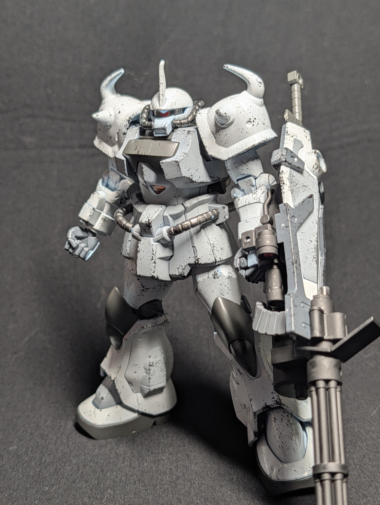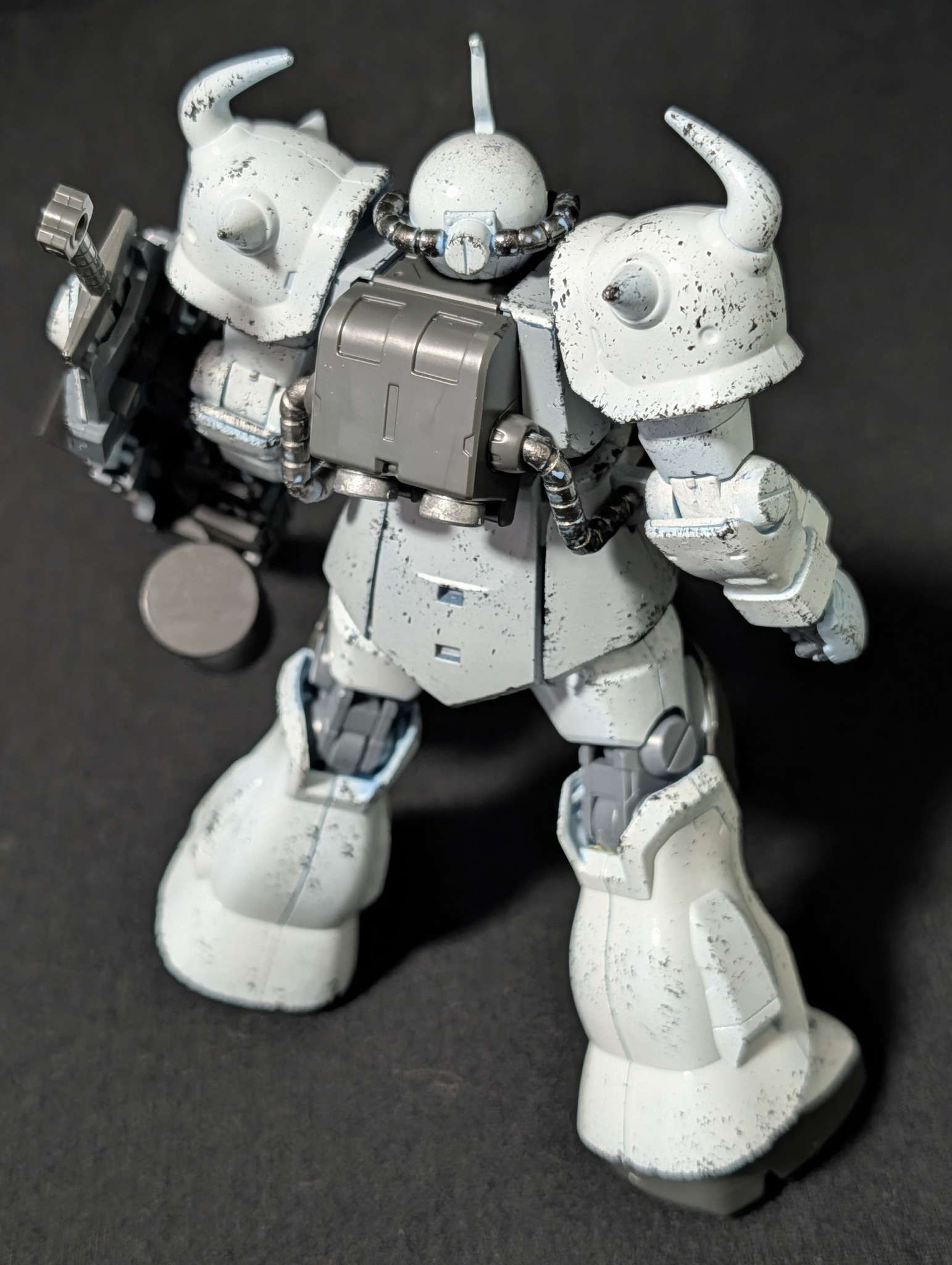 塗装途中で充電式エアブラシが死んでしまい、しっかり塗装が完了出来ませんでした。写真だと分かりにくかもですが、ボディはグレー、手足などはオフホワイトで塗り分けてます。