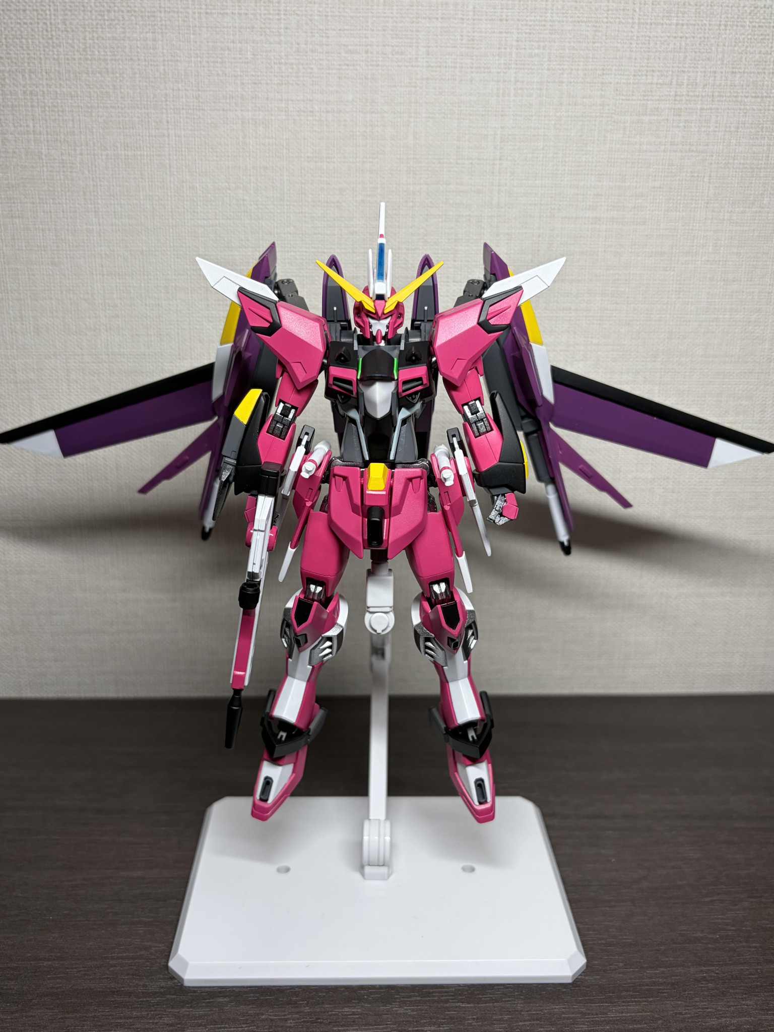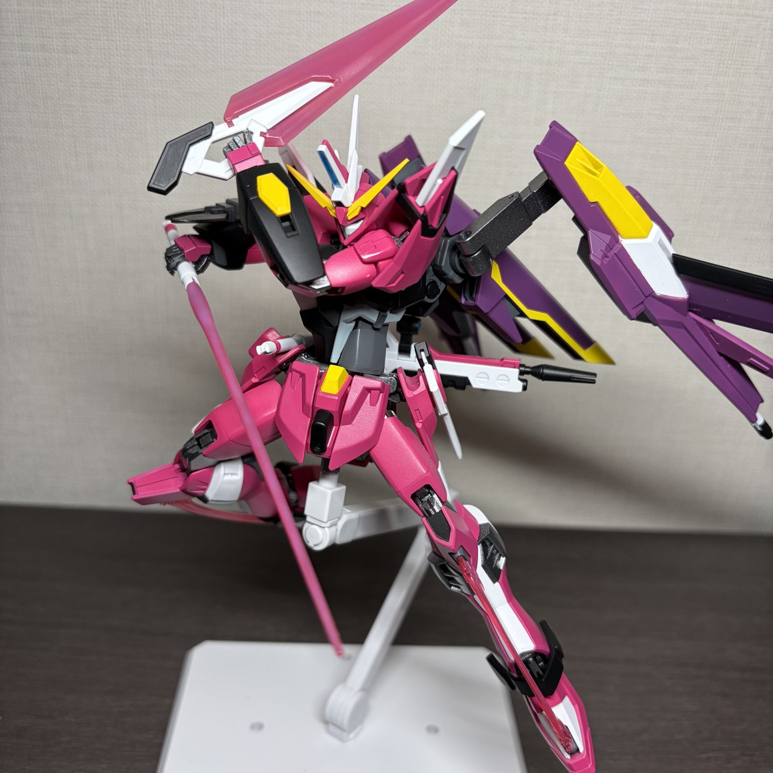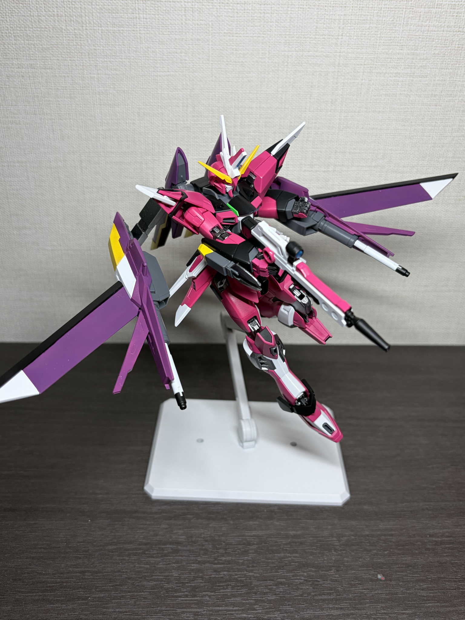 ベースはHGCEのインフィニットジャスティス、イモータルジャスティス、インフィニットジャスティス弐式から各部を拝借して組み上げ、所々にライジングフリーダムを足してます。