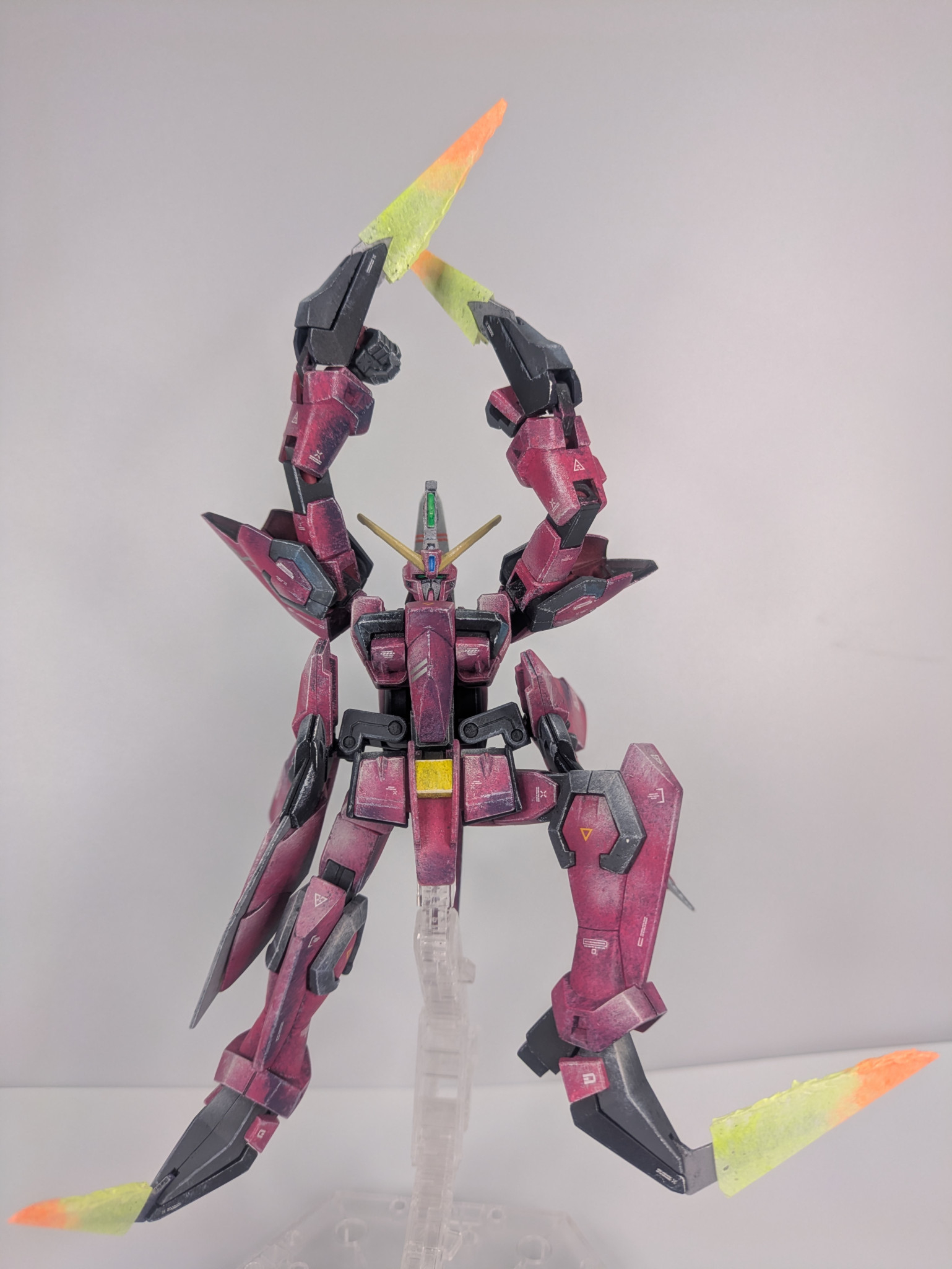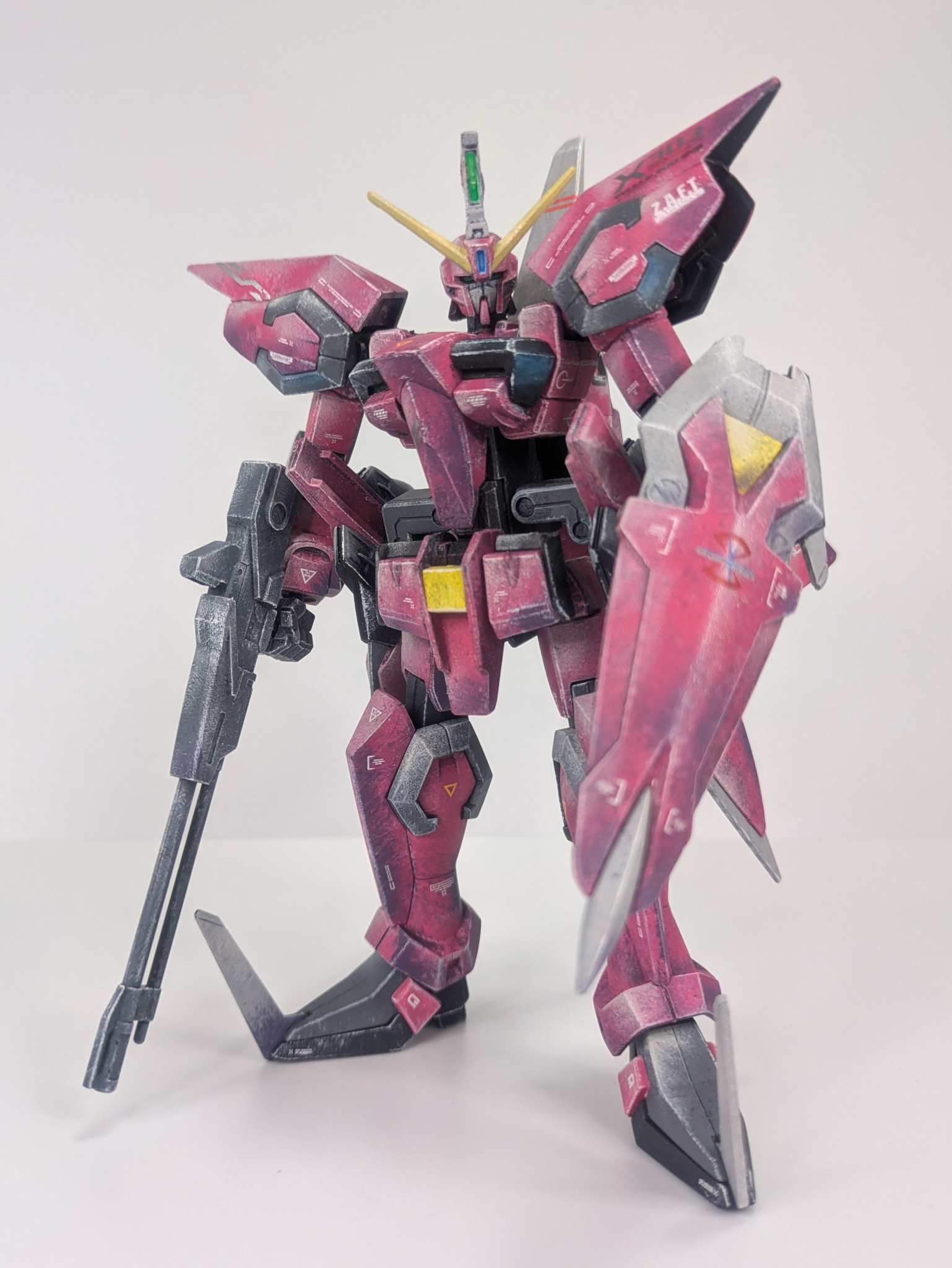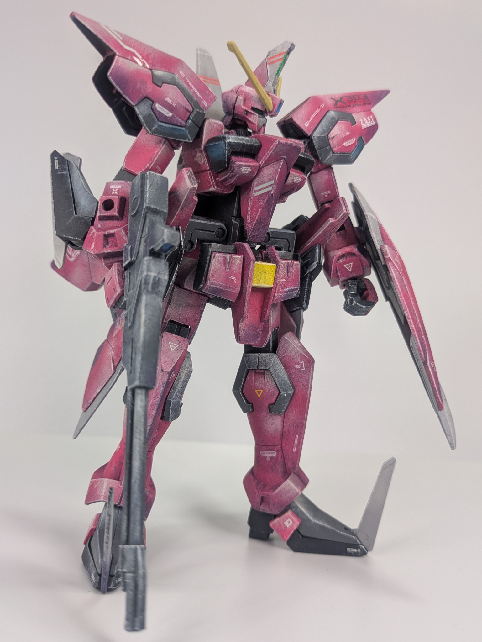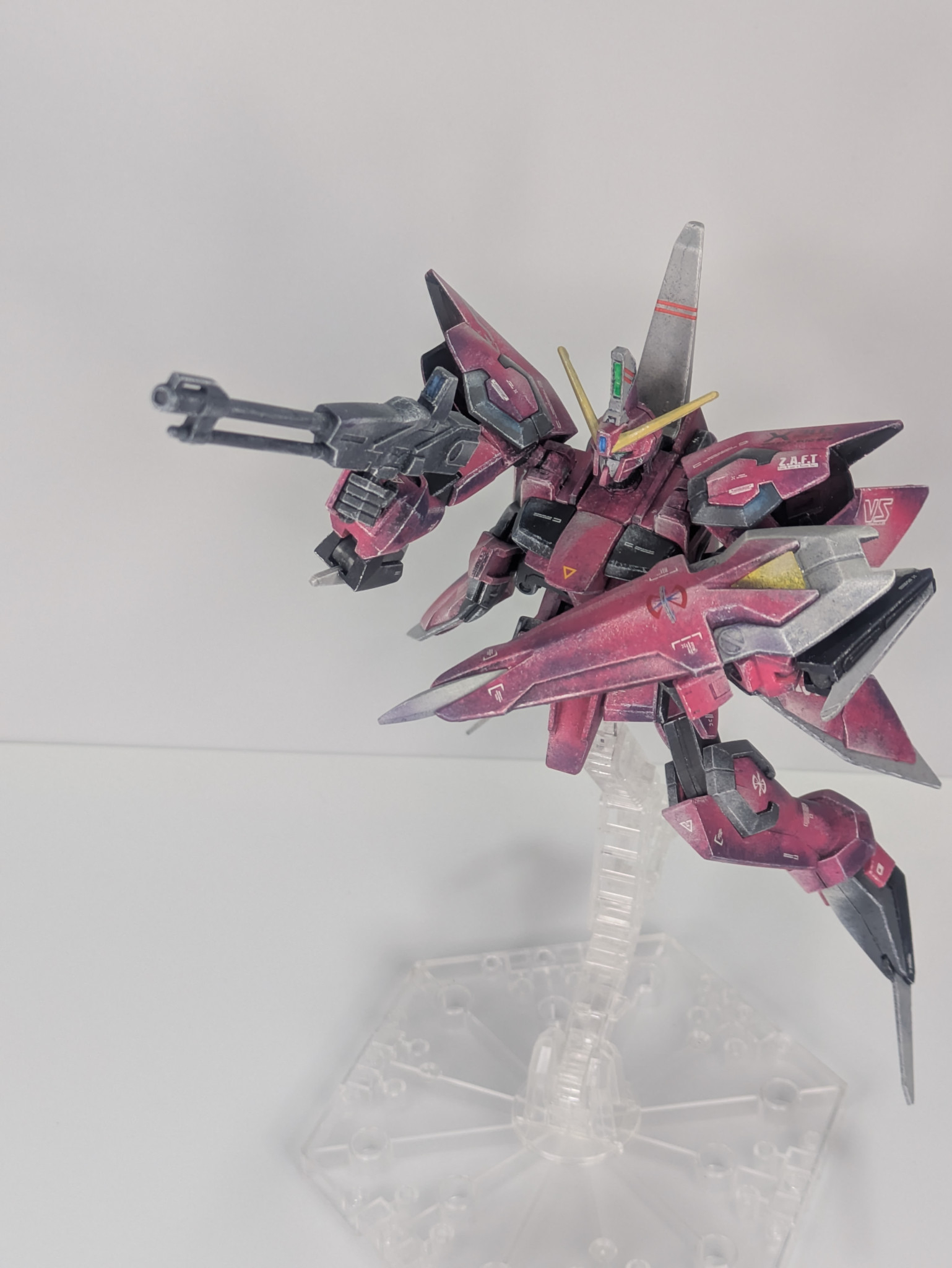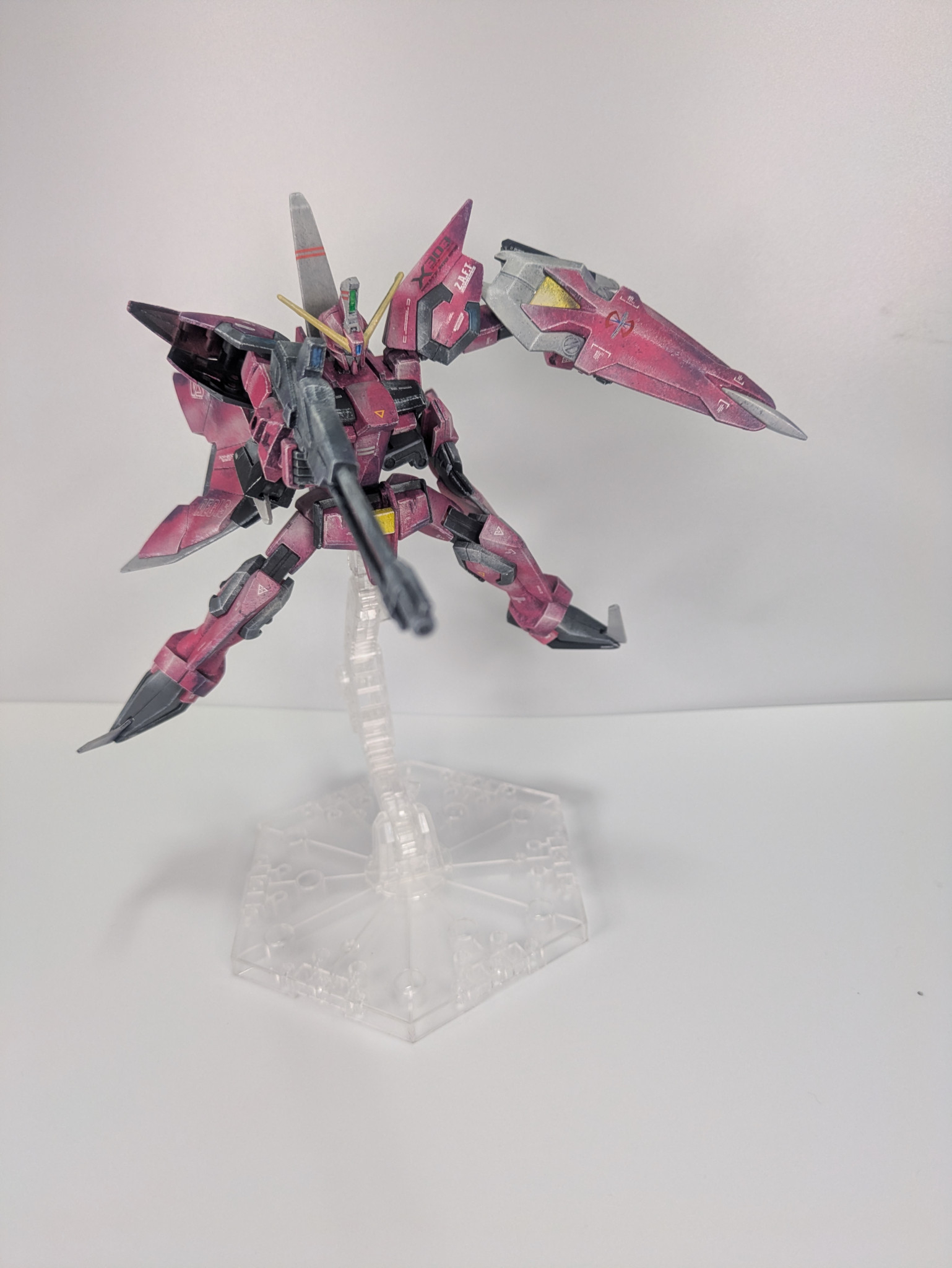 実はSEED系で1番好きな機体です。MS時のカッコ良さ、MA時の凶々しさ!たまらないです。塗装はいつもながら素晴らしい表現ですね✨未だに脳が2Dとして処理をしようとバグります…