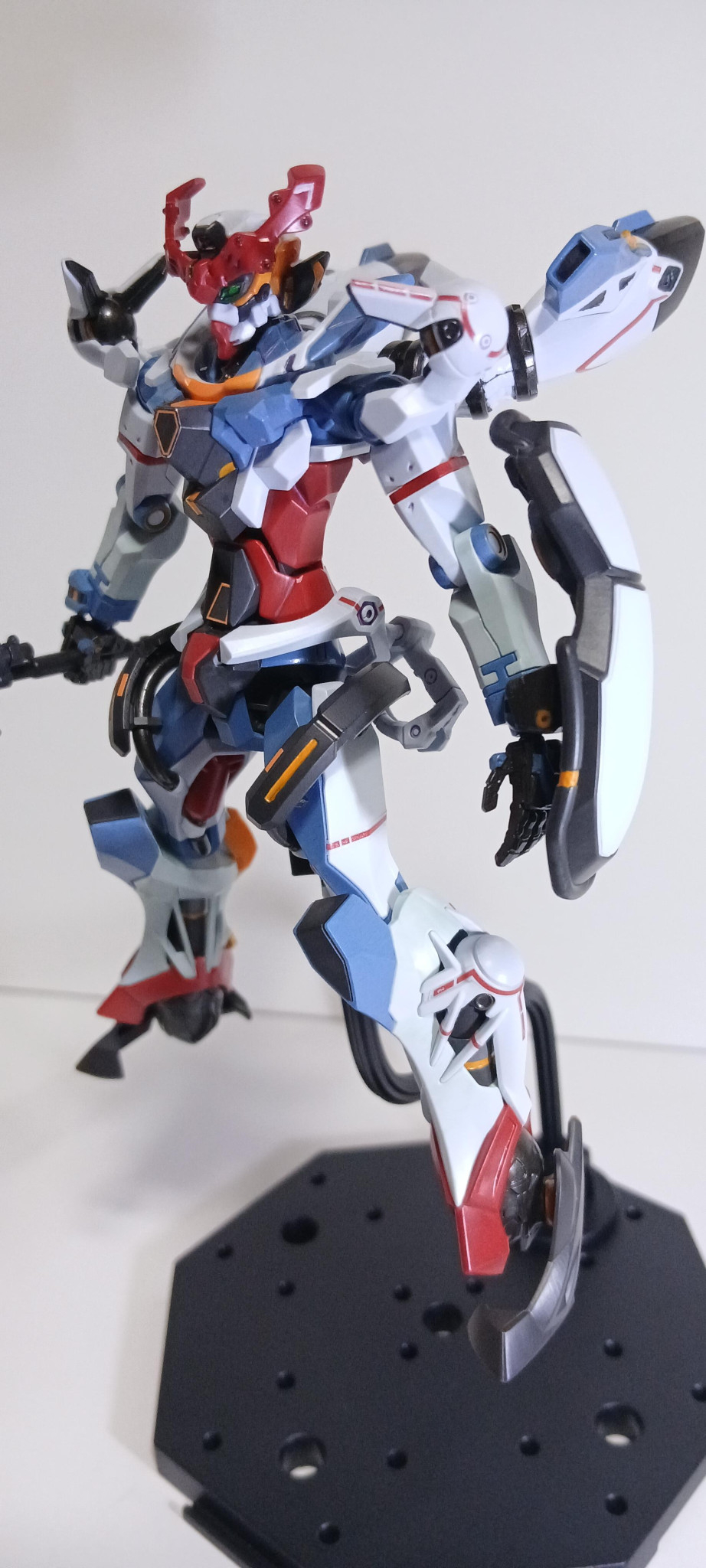 ヘッドが閉じてる状態です!今回やってみたかった事として、「塗装時間を短縮したい」を目的に制作してみました。すべてのパーツとまではいきませんが主に白、青、赤、ガンメタ部は一回しか塗っておりません。あと全箇所ではありませんが、気になる所だけ合わせ目消しをしてみました😊
