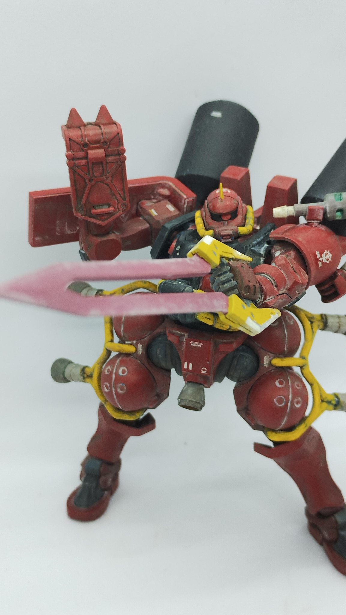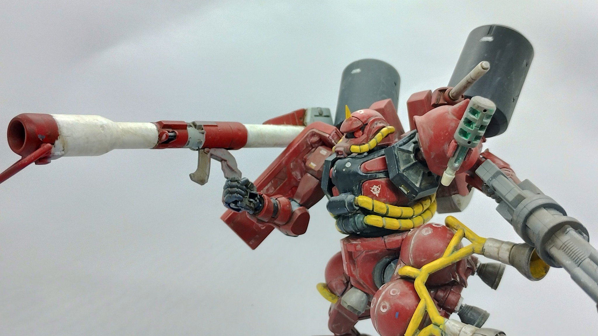 GQuuuuuuX世界のザクからの発展型、グフ〜ゲルググあたりに至るまでの試験機のイメージ…なのが武装からイメージできたらいいなと思います。