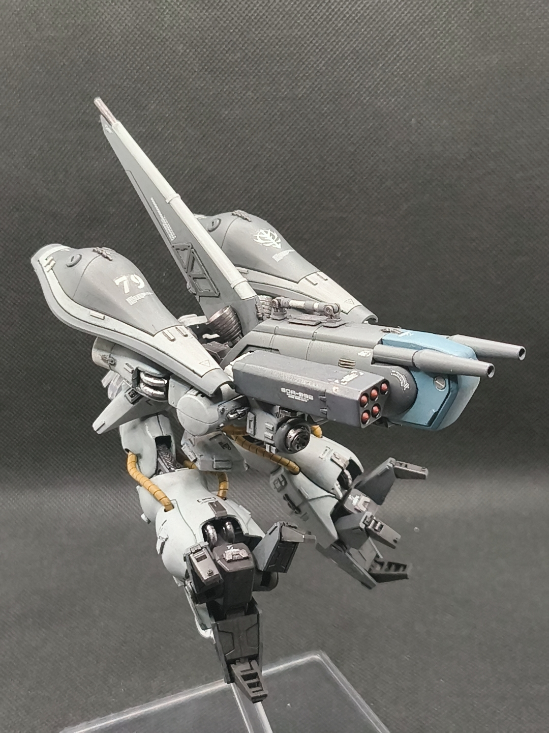 ナックルバスターを廃し、ミサイルランチャーに置き換えたのは英断だと言えます。ちなみに私は以前に、ガザCのナックルバスターを左手でも持てるように、ガ・ゾウムのハイパーナックルバスターみたいな手持ち式に改造したことがありました。