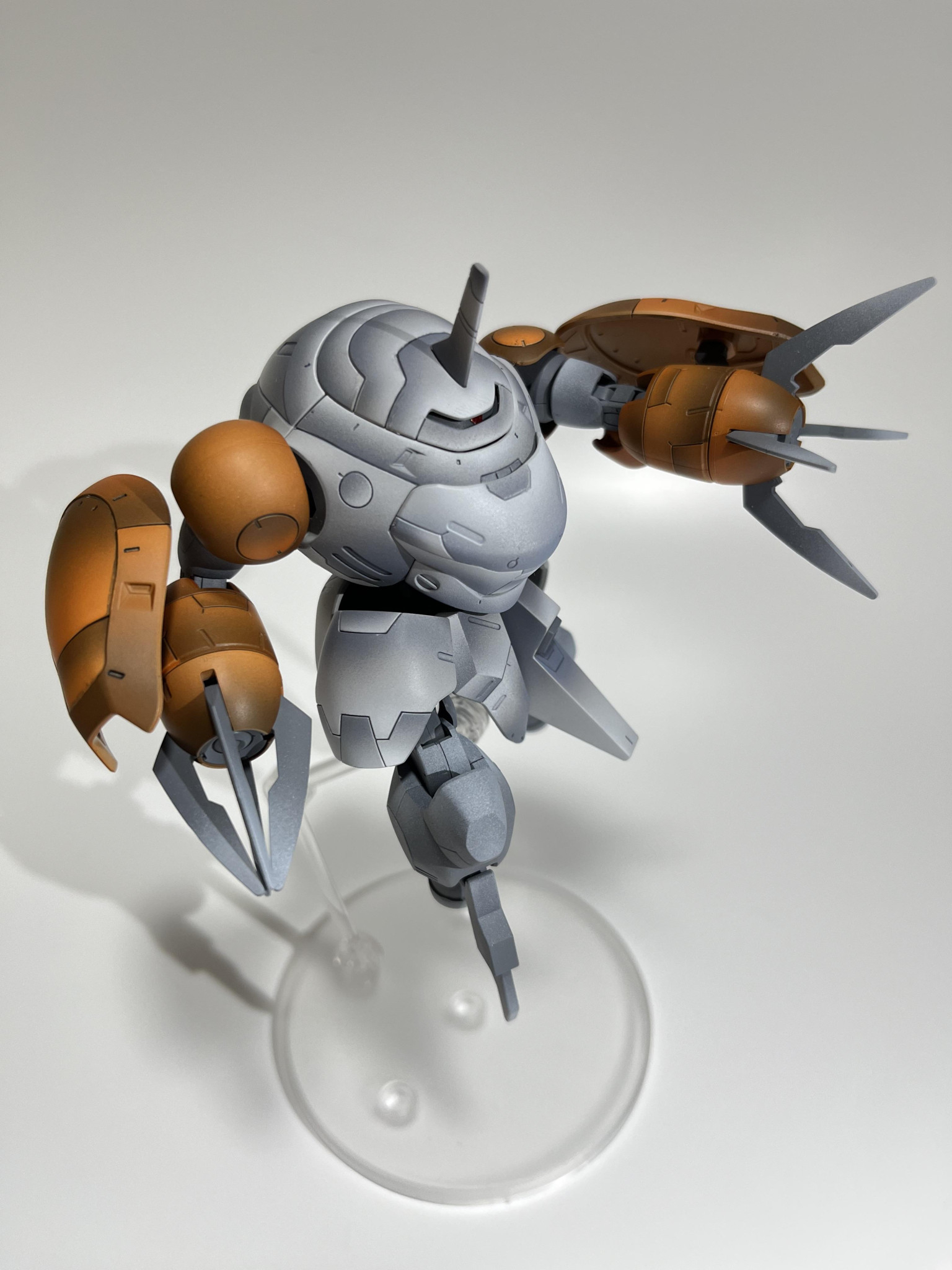 最近クスィーガンダムを作ろうとしてシャープ化、面出しなど面倒くさい工作があって途中で気分を変えようとグスタフカールを作っていた所、塗装に凝ってなかなか完成せず、その作成から逃げる為に作ったモンキークラブロディです