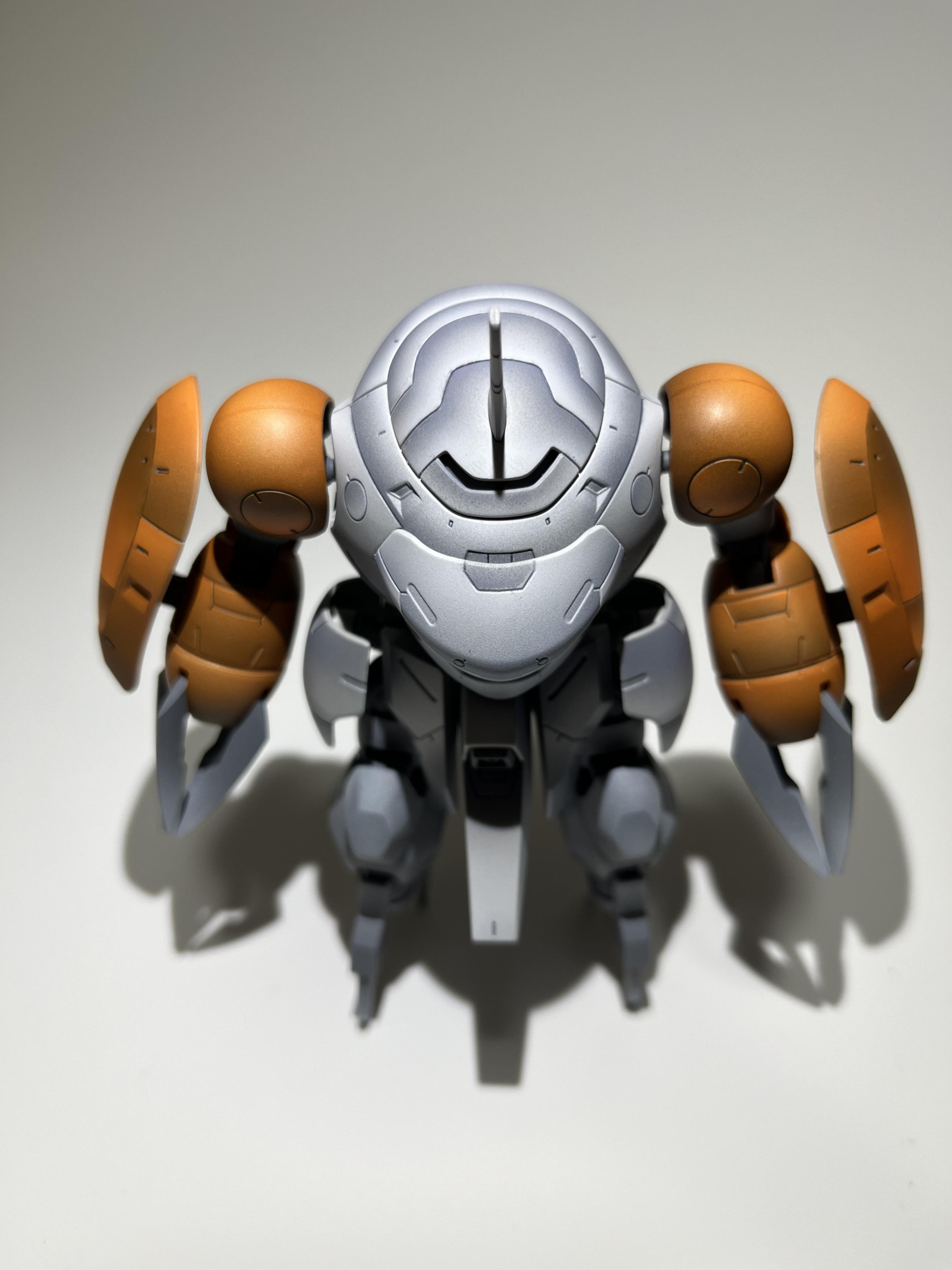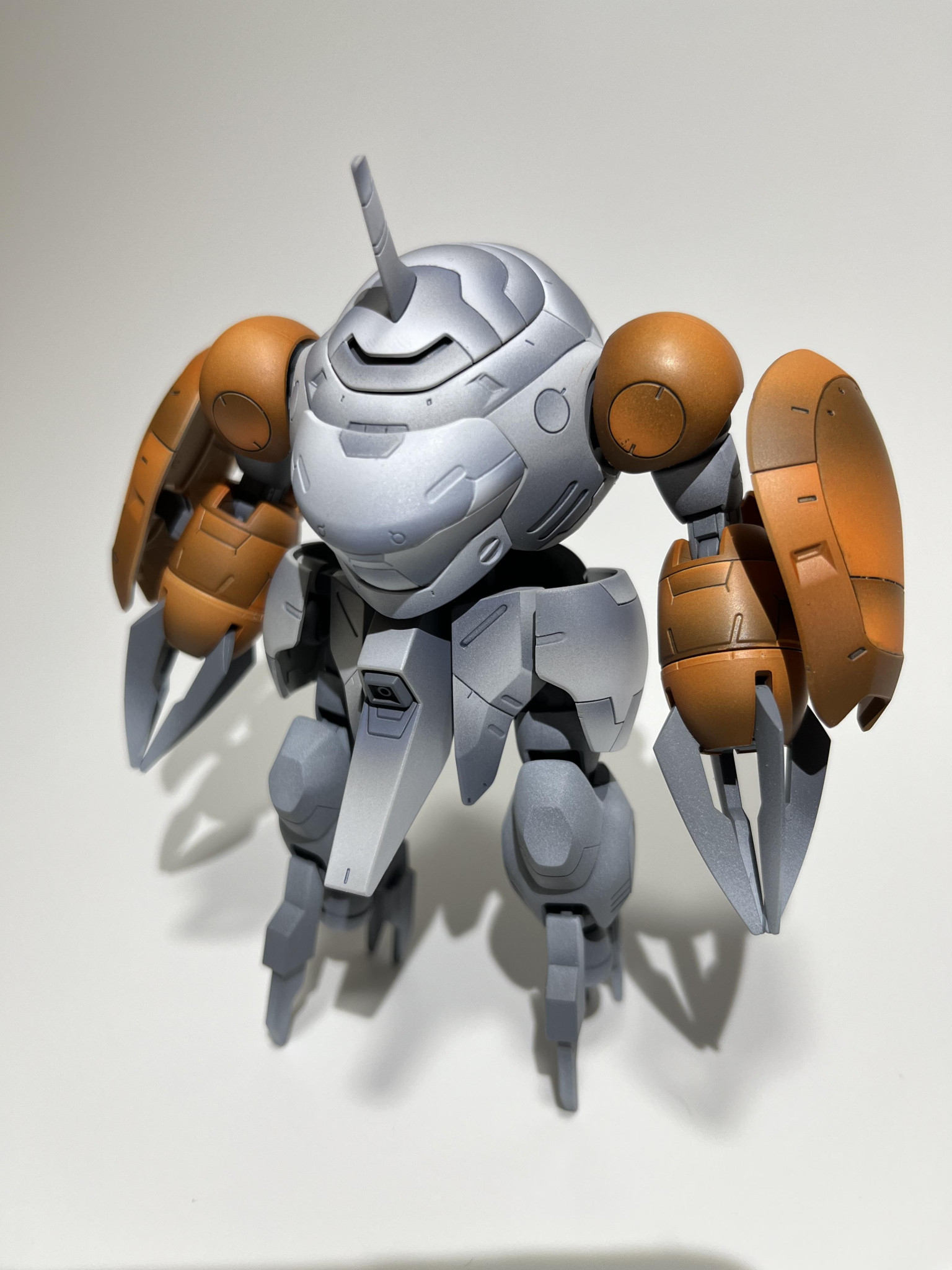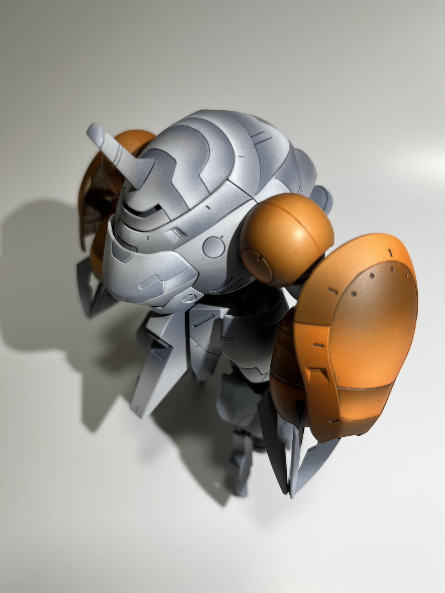 ホワイト、グレー、ダークグレーのサーフェイサーで影のある下地を作って、クリアホワイト、クリアオレンジで色をつけました