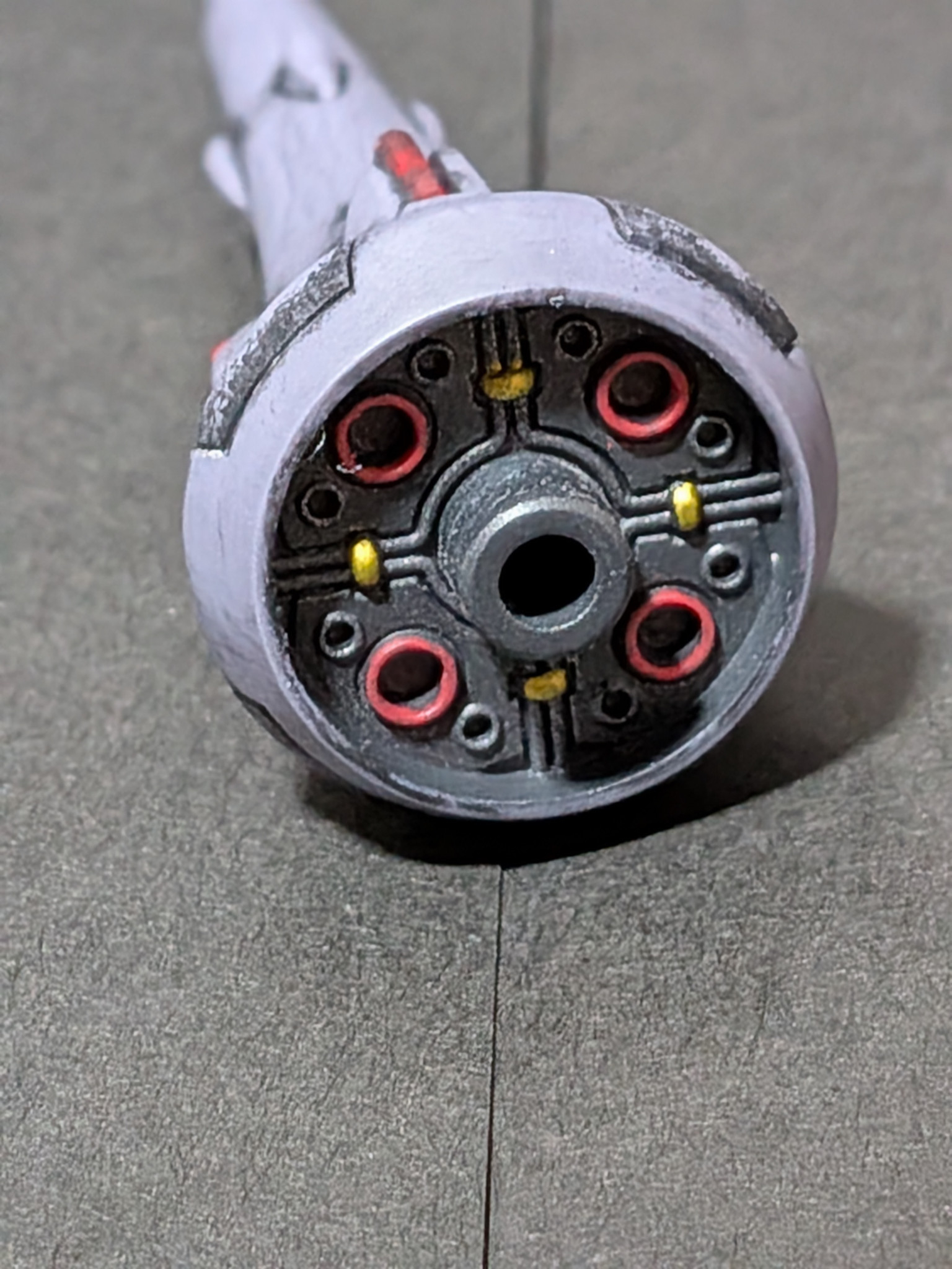 大型ドラグーン内部の塗装は水性アクリルマーカーのメカレッドとゴールドで塗装しました。