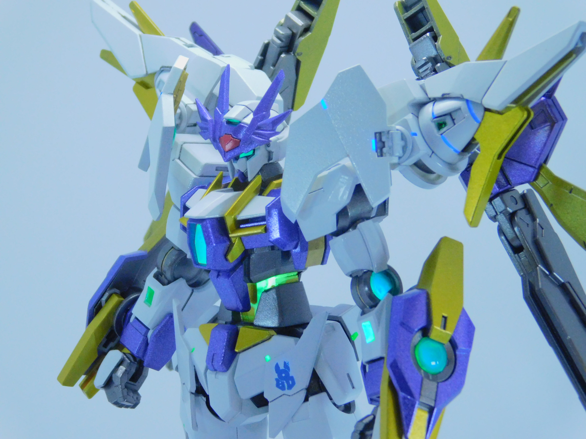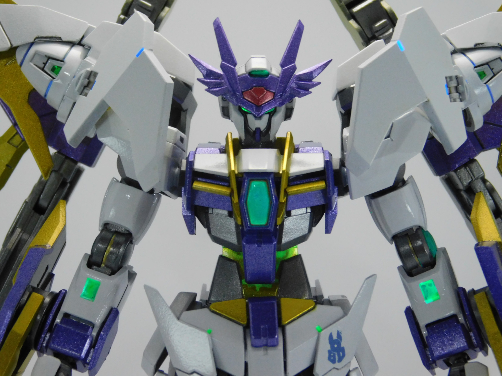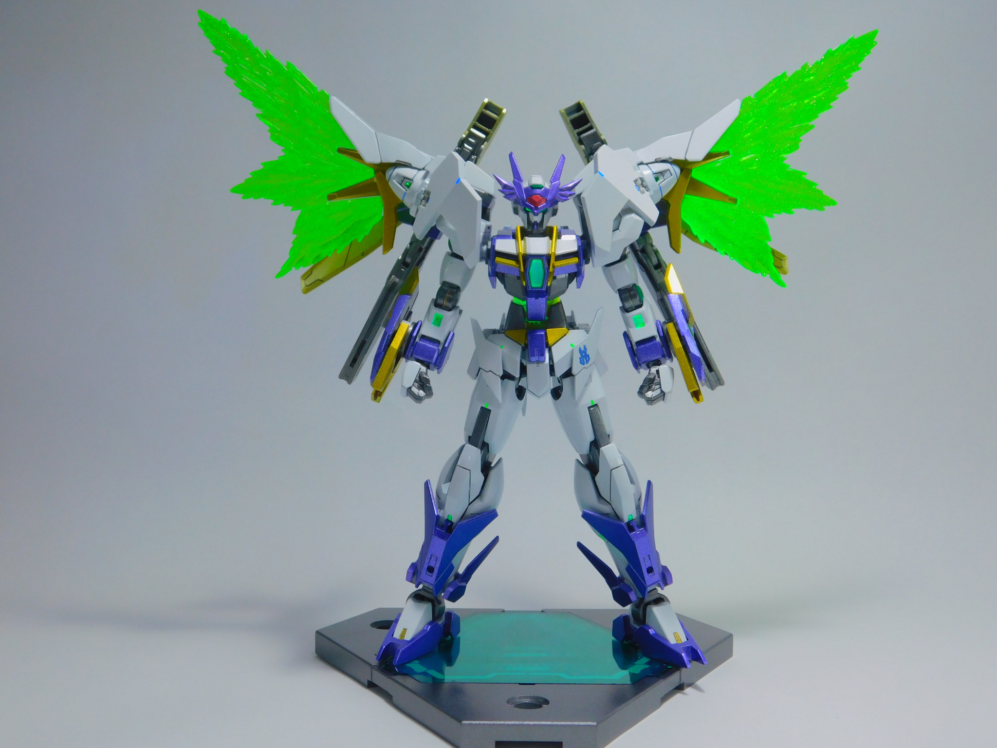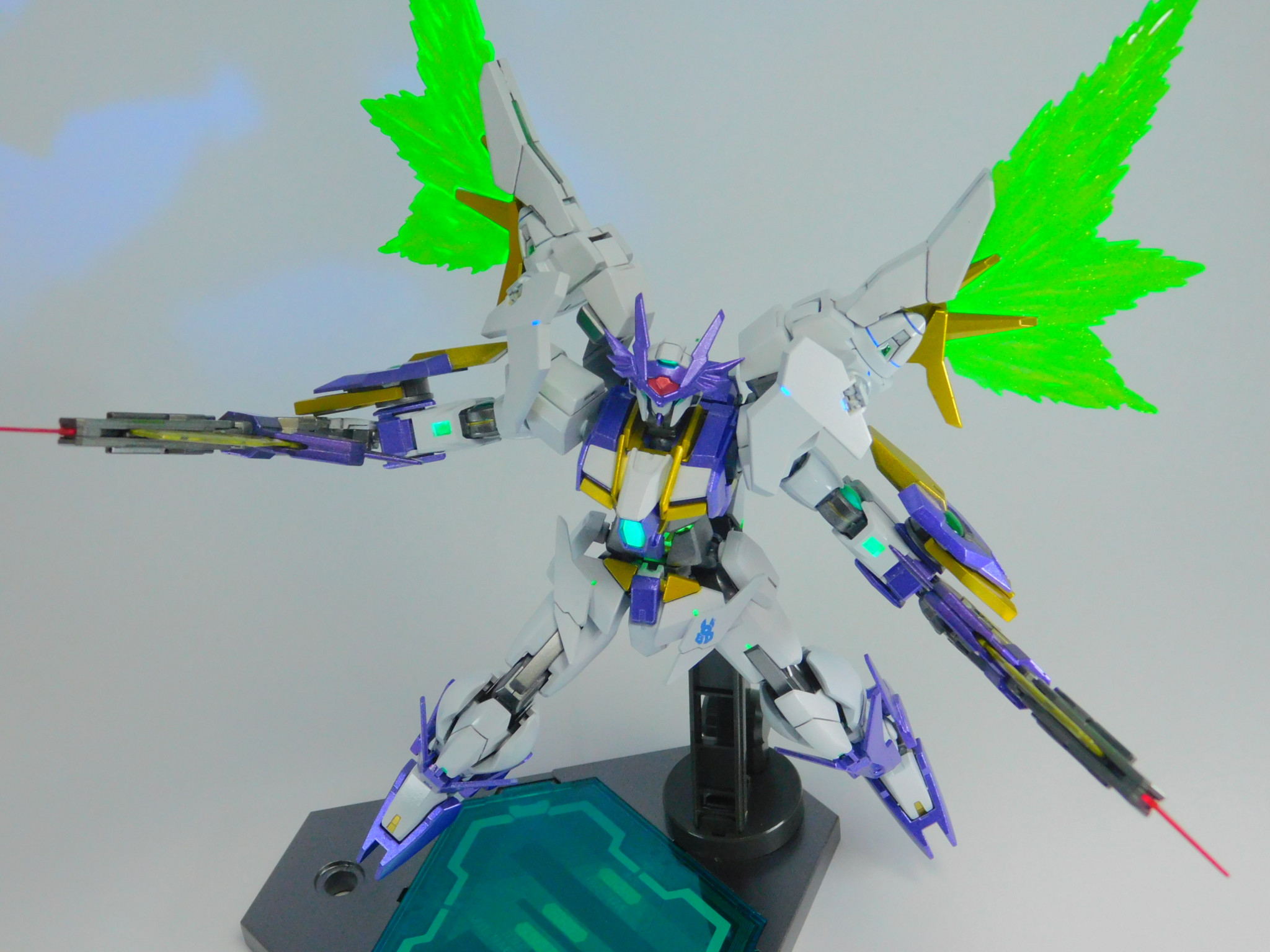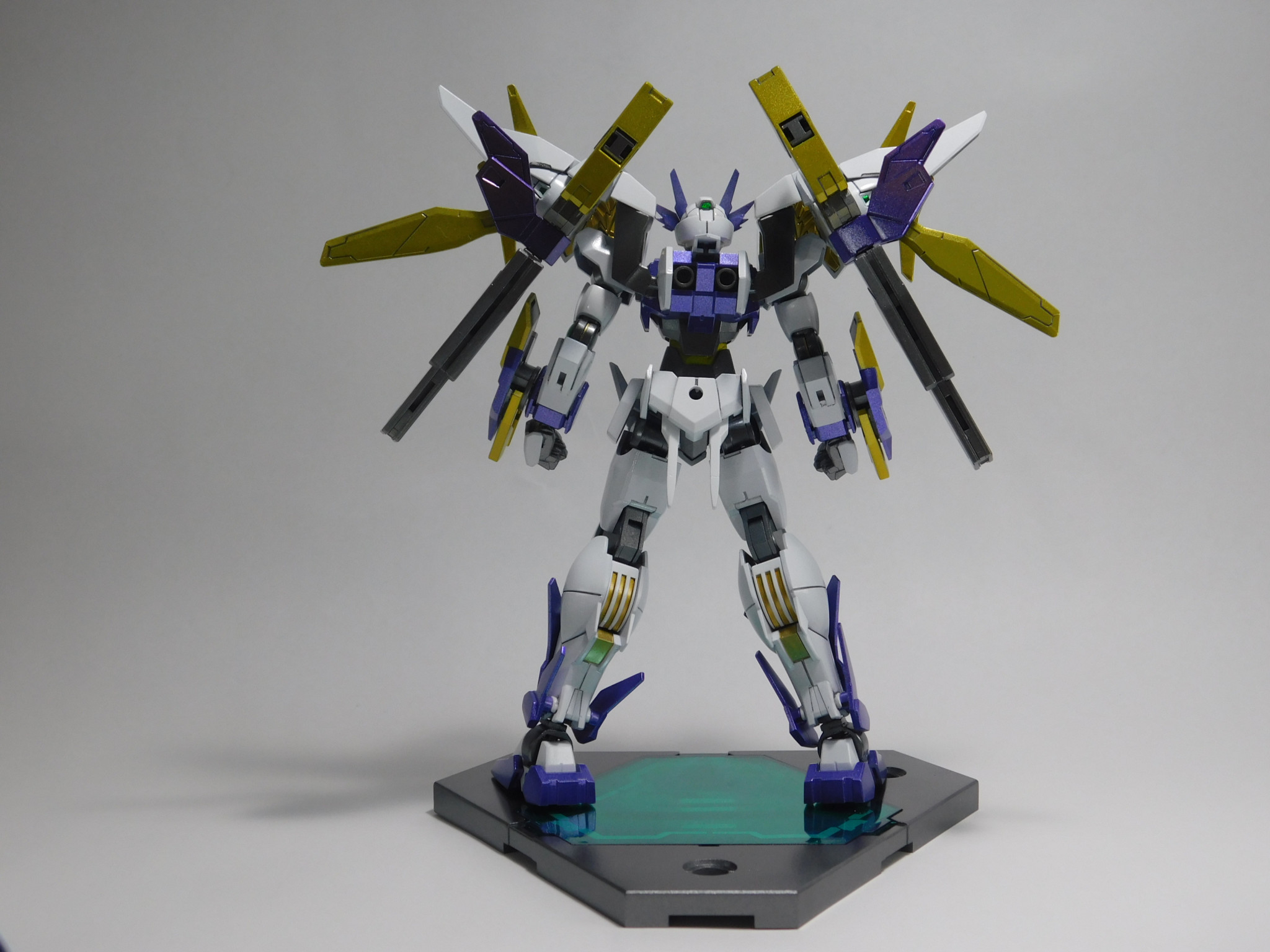 素体のダブルオースカイは変わらず、肩のGNドライヴが換装されることで異なる性能を発揮する。
