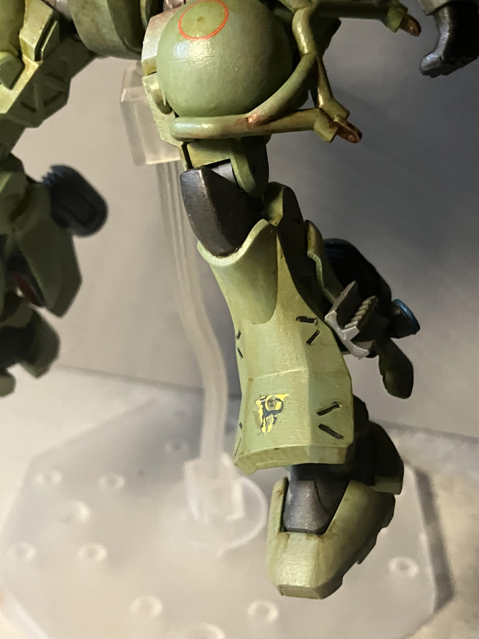 脛アーマーは元キットのを上下逆転させてる事により裾が広くなったのでザクⅡらしさが出たと思っています☺️