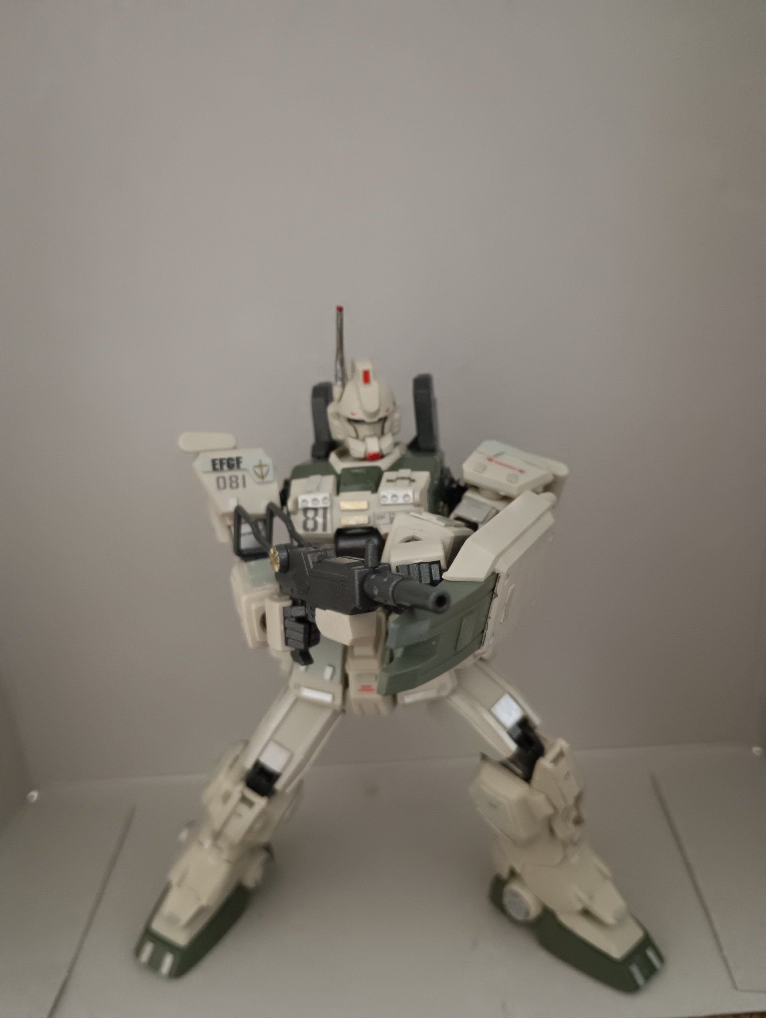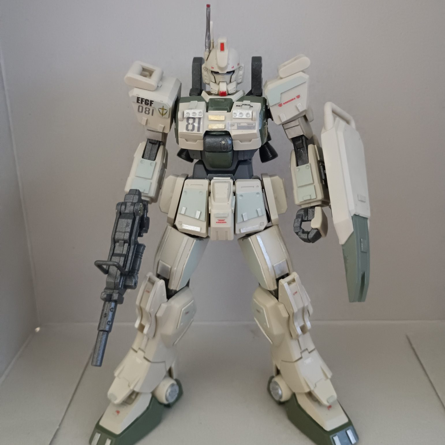 hgucガンダムez8をRG風に改造しました。プラ板を貼ったりとかしてます。貼ってるマーキングシールとかはほとんどオリジン版ジムとかのやつです。