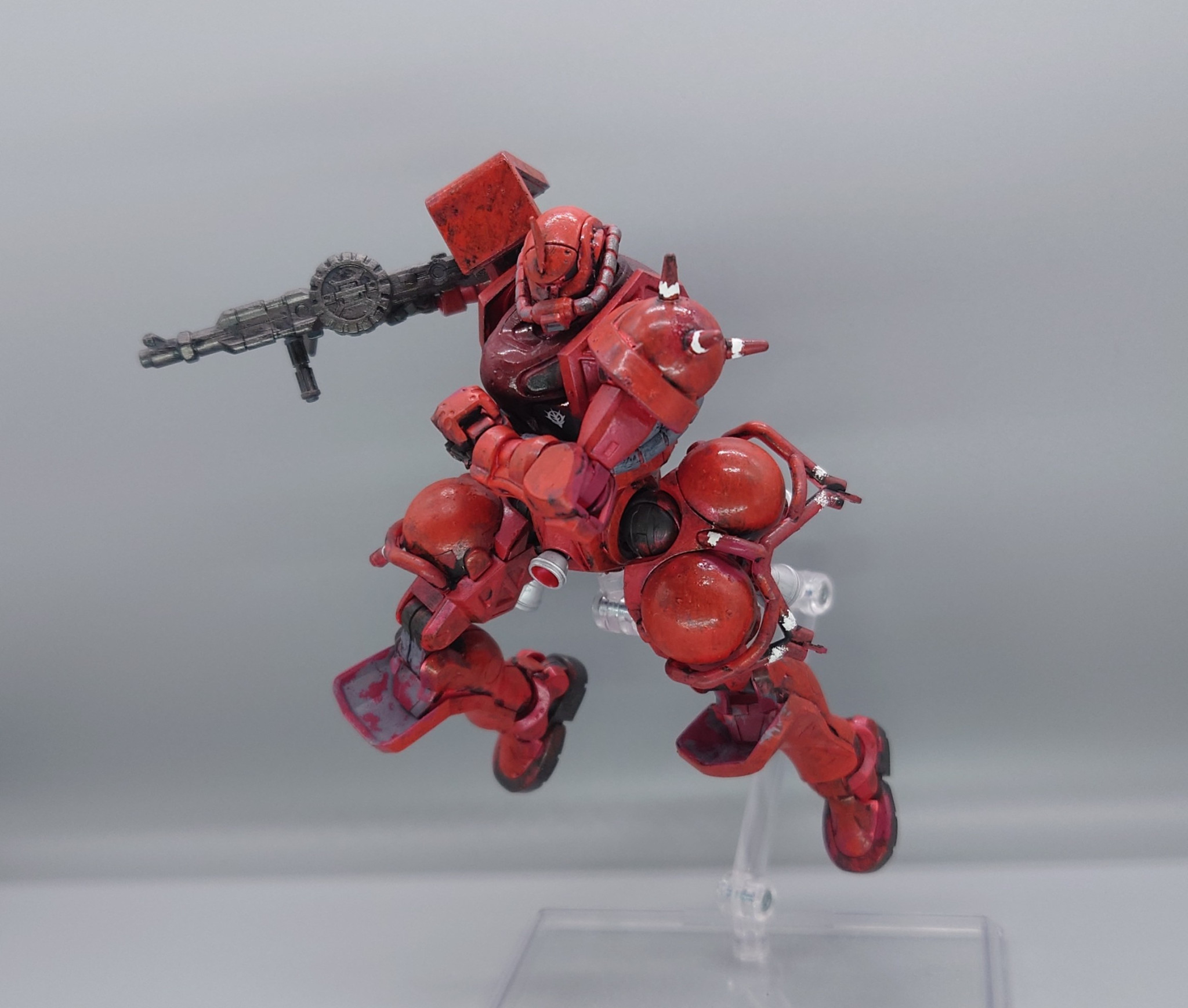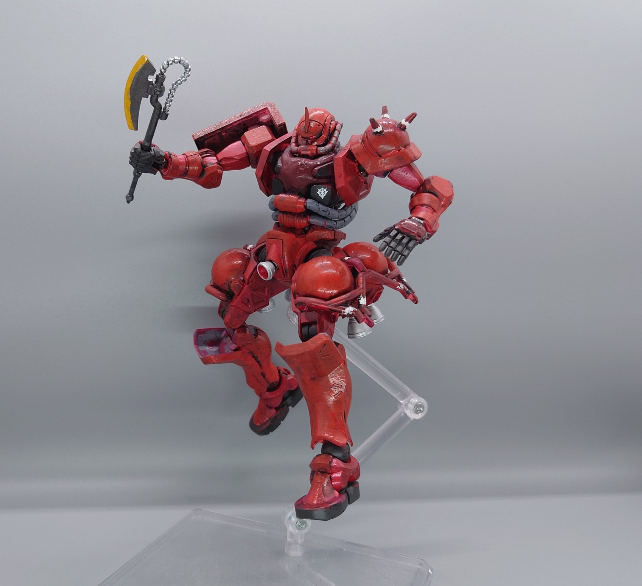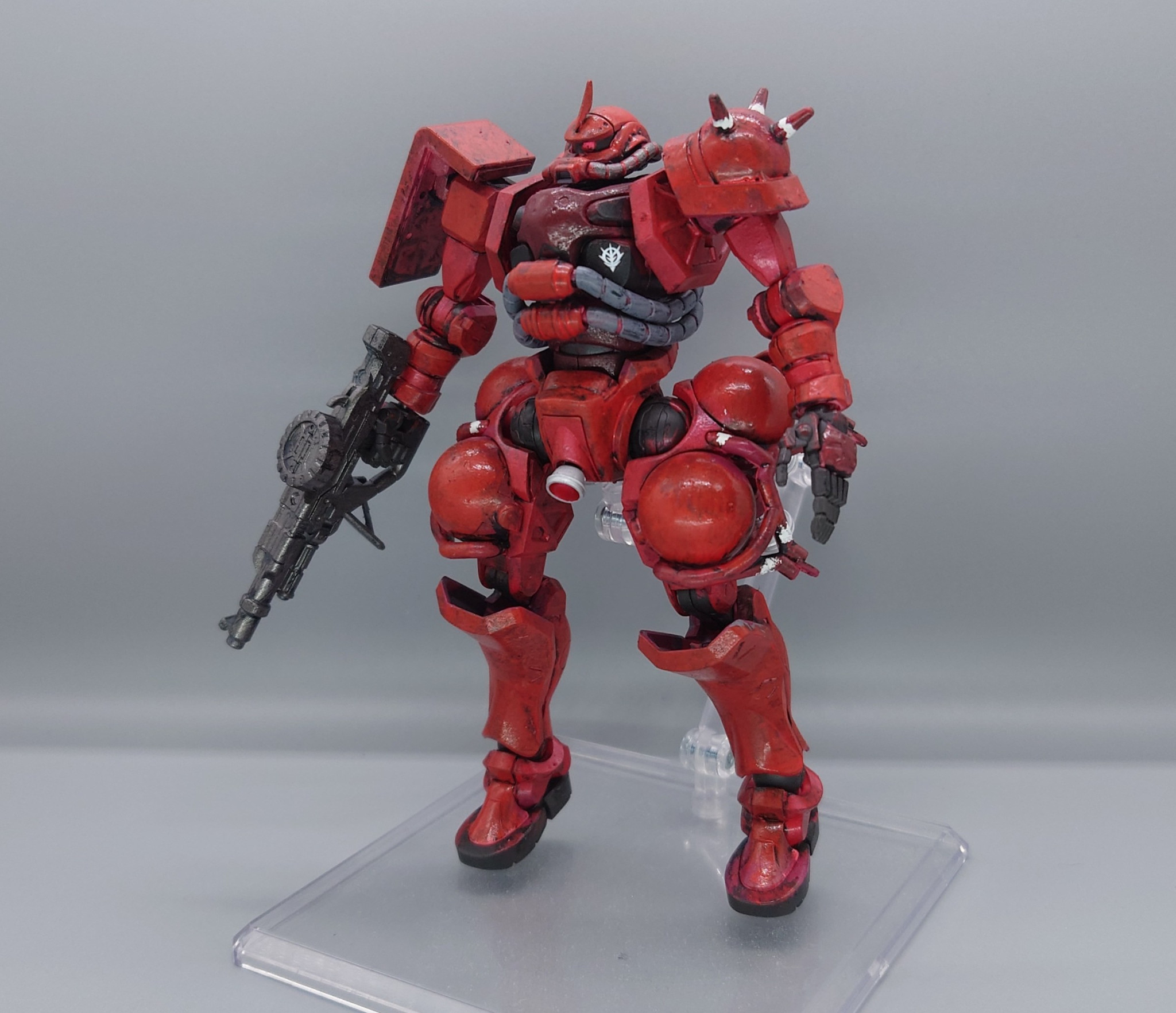 HGUCのザクと比べると足が小さくなっている分、少し直立させづらいです。ザクなんだけどザクじゃない、まさに別の世界線、そんな感じのデザインです。