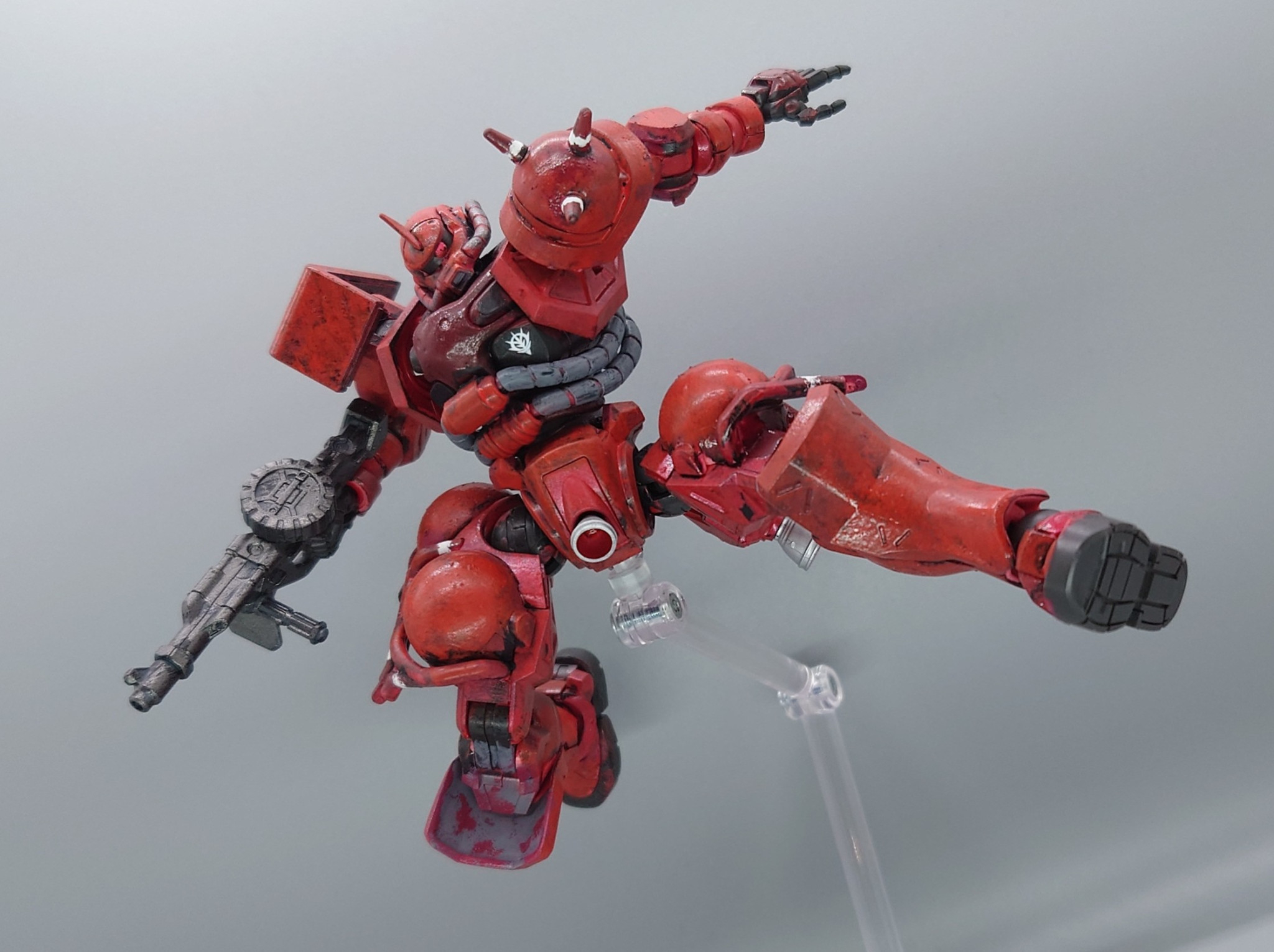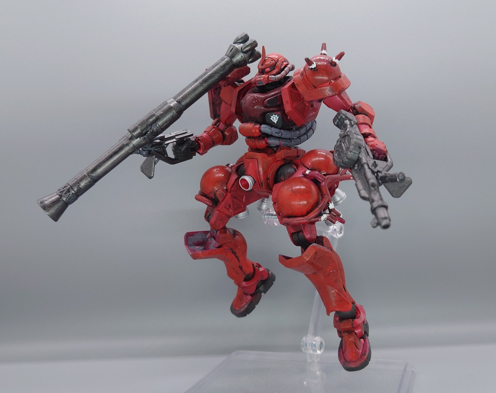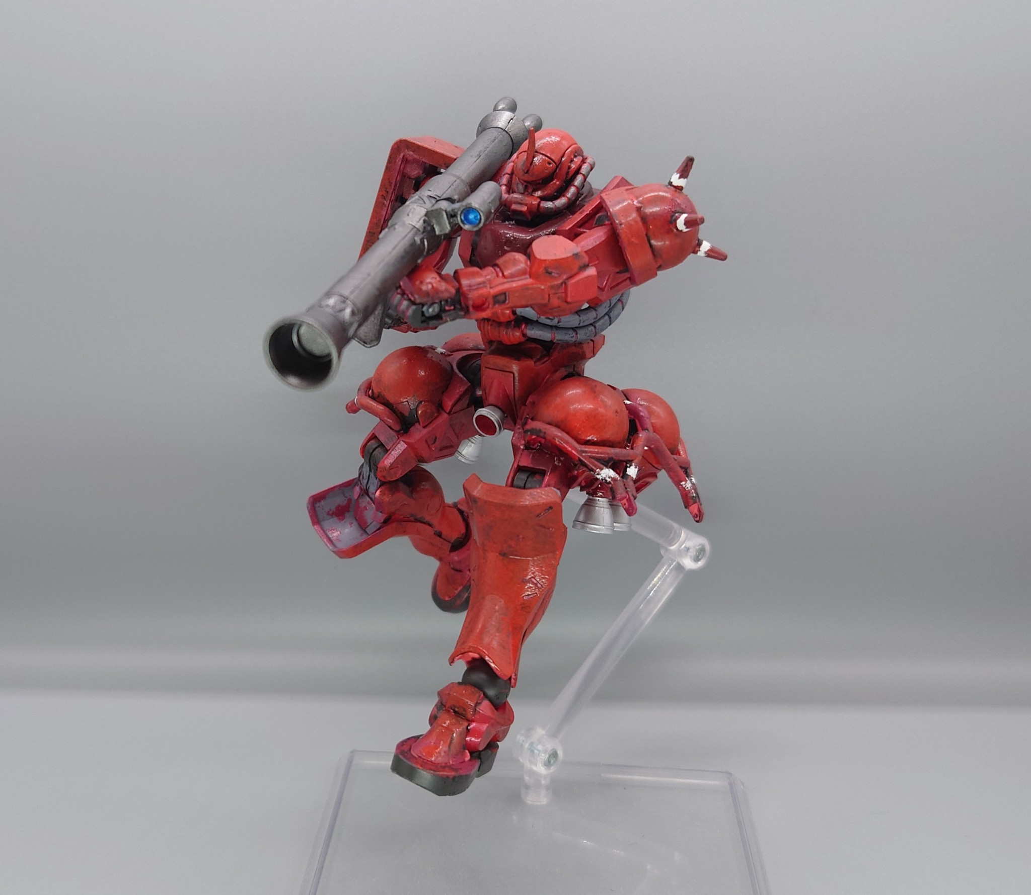 HGUCのザクと比べると足が小さくなっている分、少し直立させづらいです。ザクなんだけどザクじゃない、まさに別の世界線、そんな感じのデザインです。