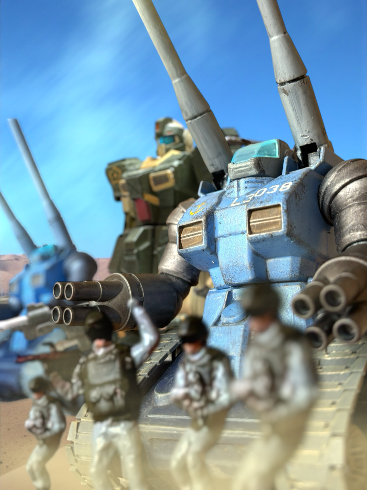 北アフリカから中東。ジオン公国軍の勢力圏だった砂漠地帯を取り戻すための、ベルベット作戦も、いよいよ大詰めだ。彼らのいる旅団は、サラサール湖付近のジオンの大規模拠点を攻める。