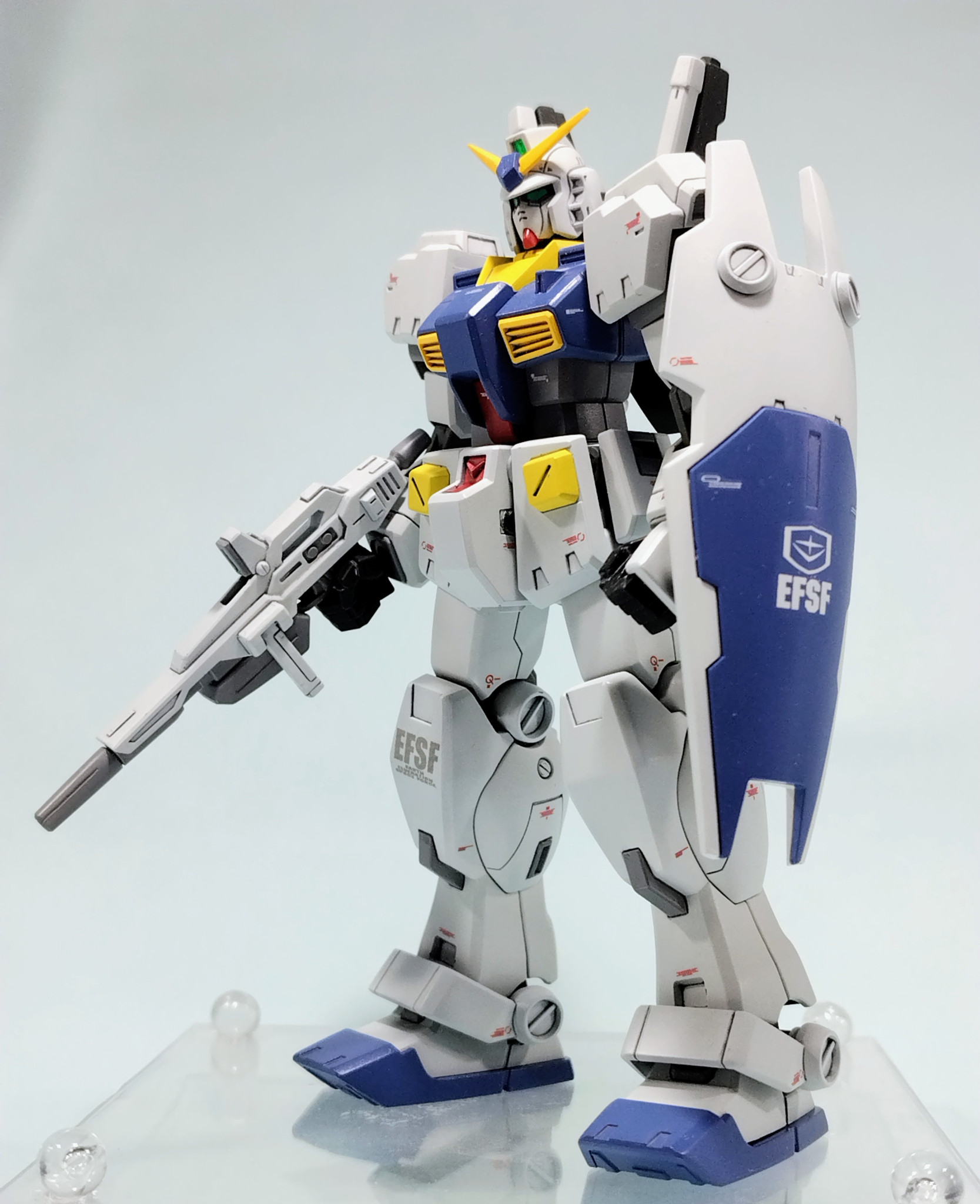 A.O.Zだと、タイトル名ぽくなるみたいですが、あまり考えず、ジム・クゥエルにマークⅡの頭と、バックパック、ライフルを付けて、オリジナルカラーで、塗装しました。