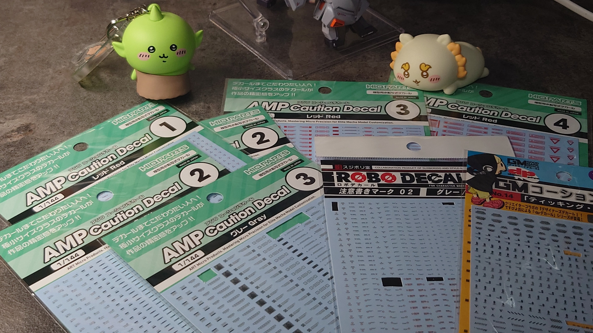 デカールはハイキューパーツさんの新作 AMPデカールを筆頭に、スジボリ堂さんのロボデカール、MYK デザインさんのGMデカール(アシタのデカール)を各所に使用しました。(テスト・カラーということで気持ち多めに貼ってみました )
