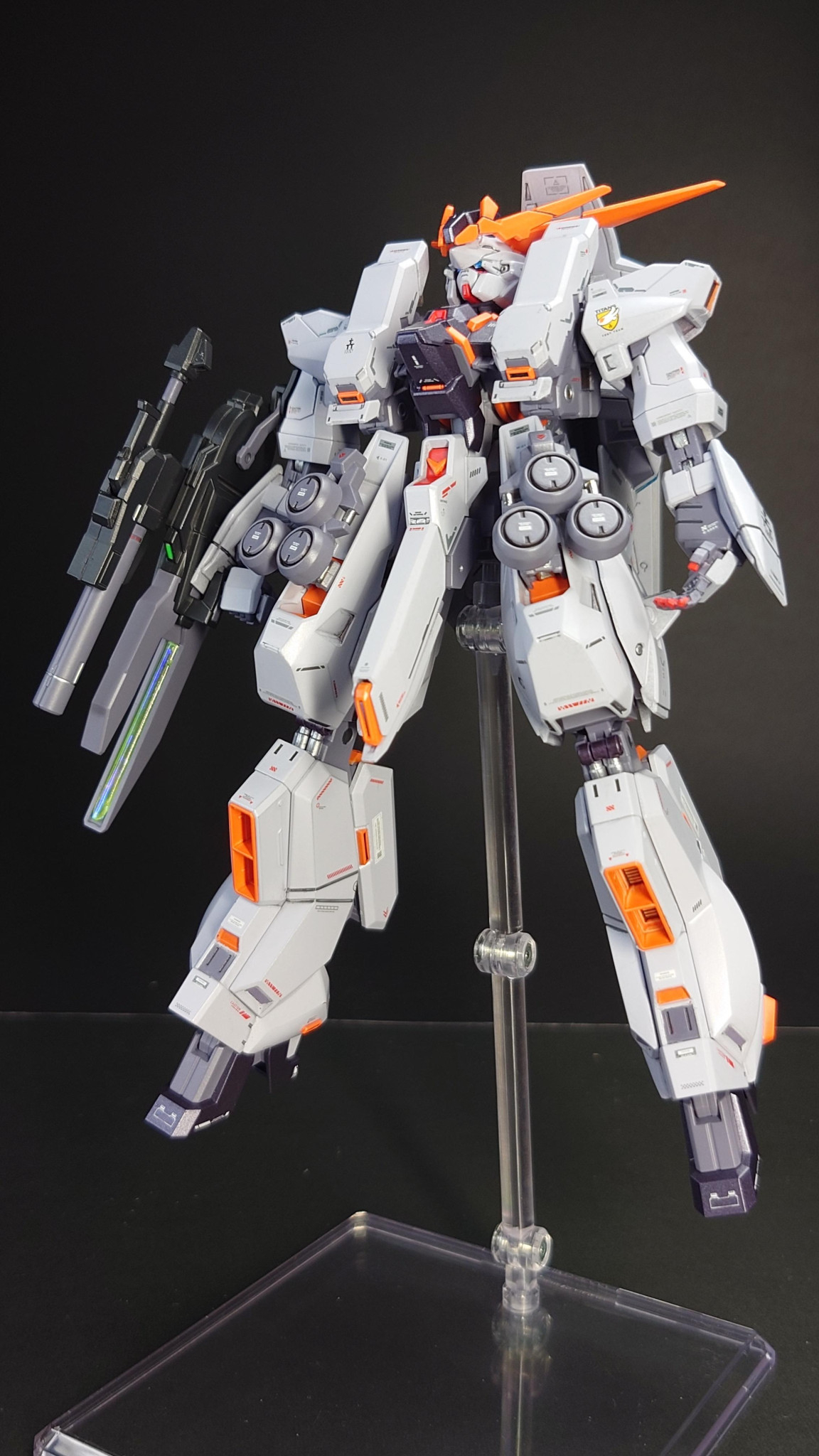 なお、ビームライフル先端部分は透明プラ棒3mmをエナメル蛍光塗料で塗装してから埋込み、表面にオーロラブルーシールを貼ってます。