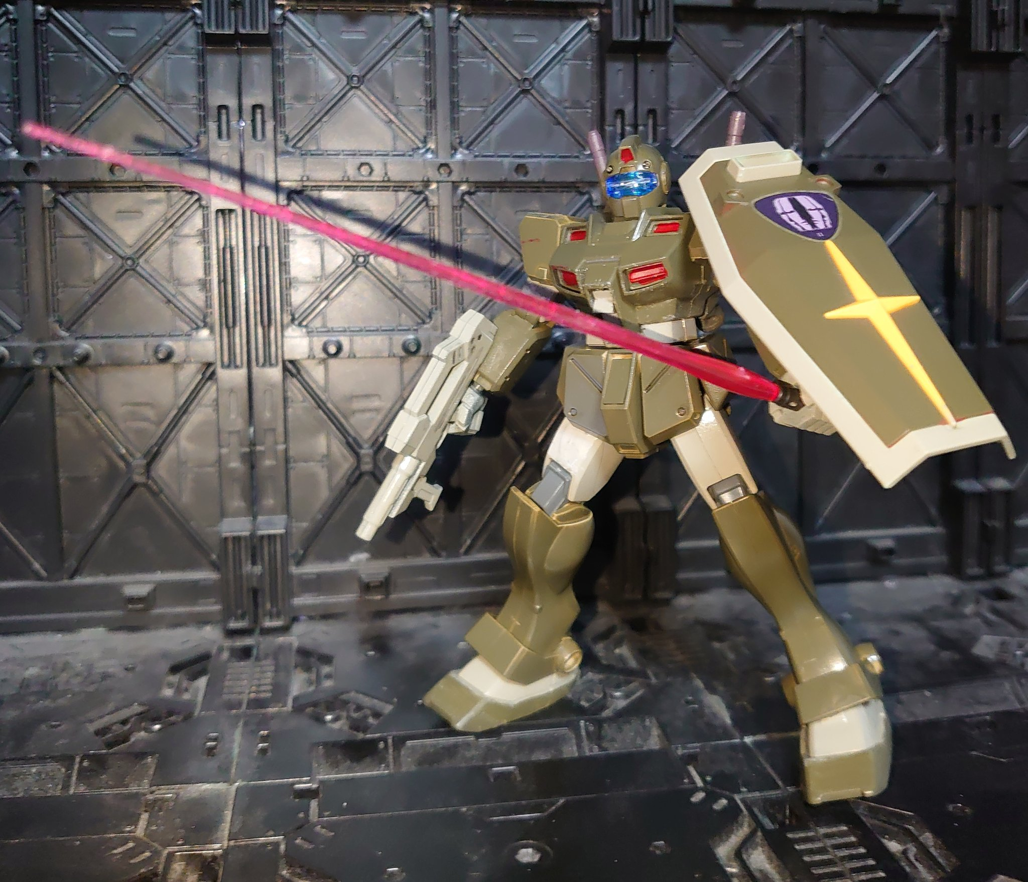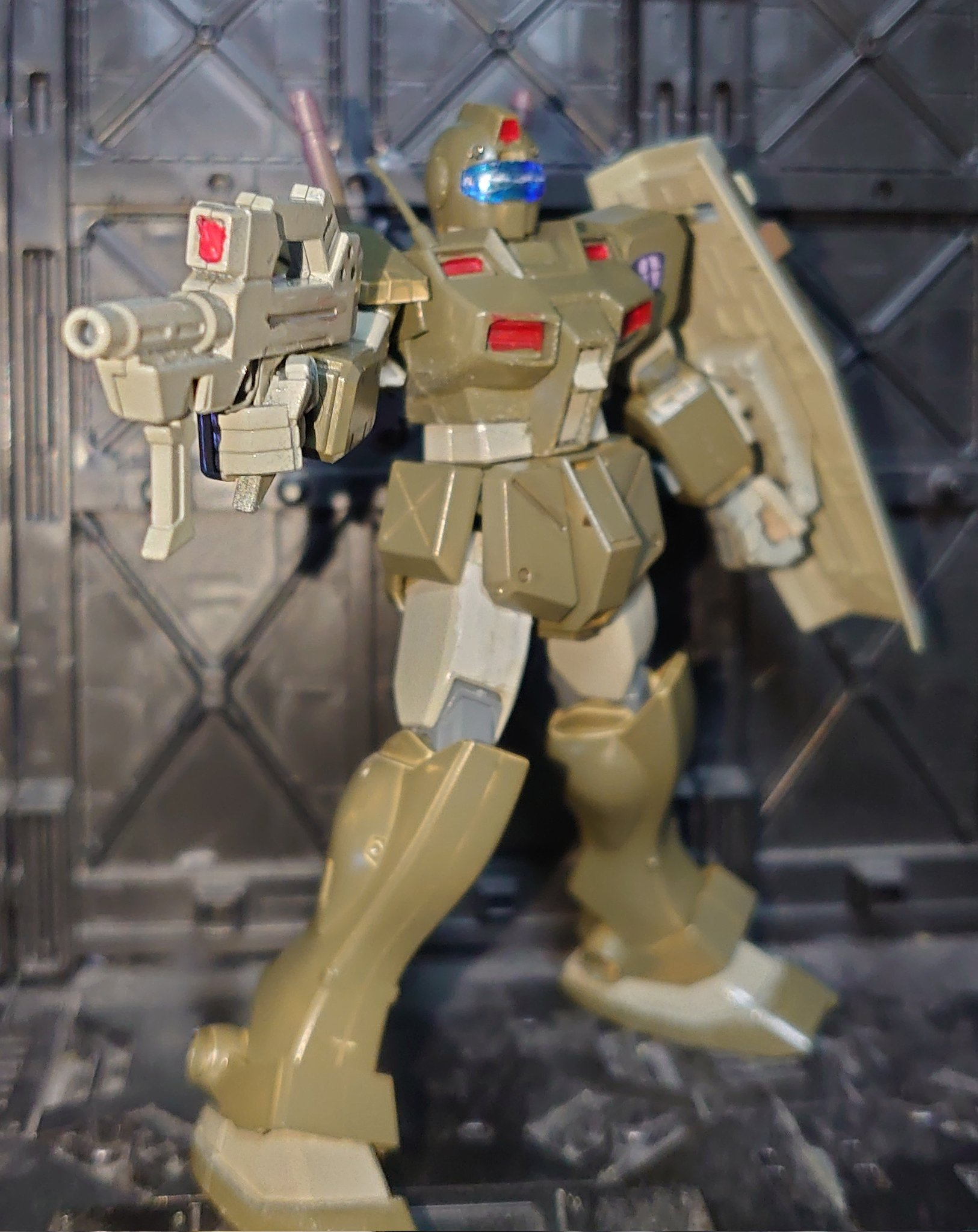 ジムコマンドをベースにナイトシーカーの頭・カーディガンのライフル・ジムの盾・体験会配布のRX78のパックで作成