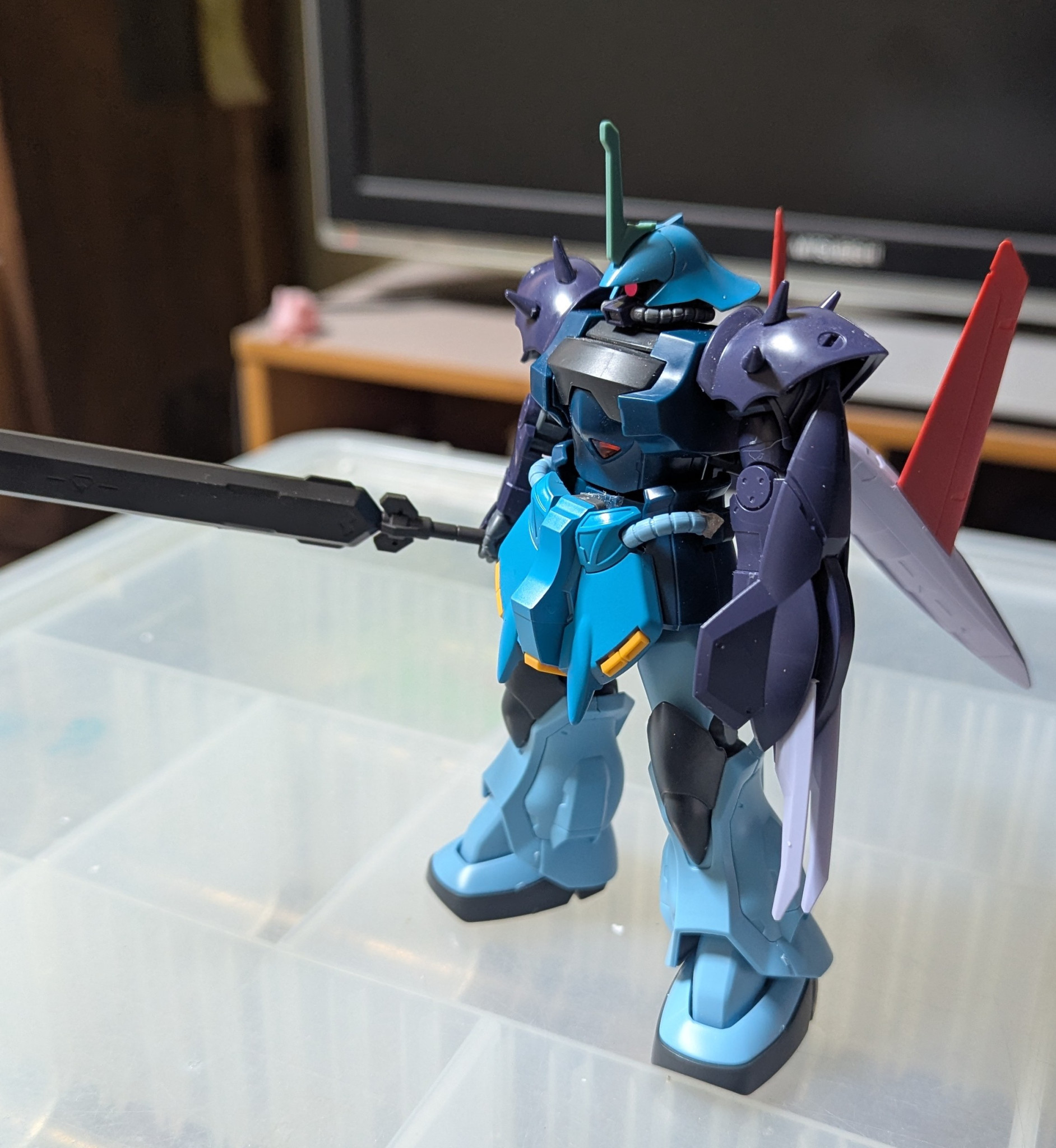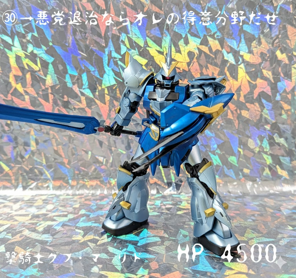 とあるビルダーが作ったガンプラ(グフ・マーリド)がガンプラバトルの最中に不思議な力でスダ・ドアカワールドに転移し冒険と戦いの旅の果てにスペリオルドラゴンに出会い元の世界へ帰還した時の姿である