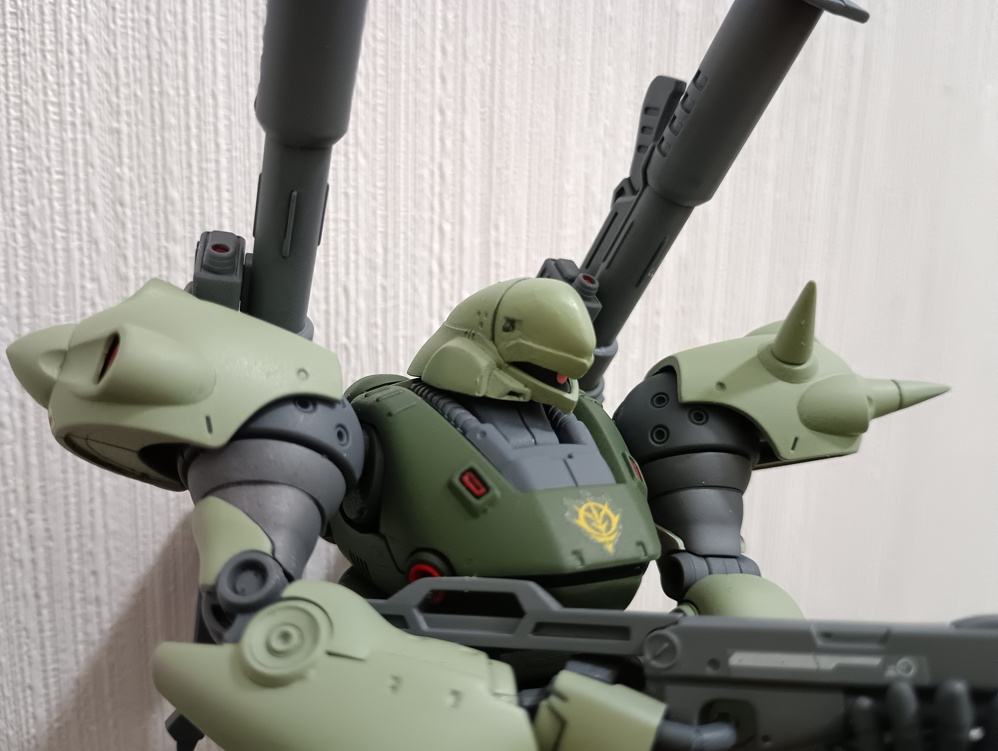 青いケンプファーも好きなのですが、ジオンのMSといえばやはりこの緑かな、と思いつき塗装してみました。
