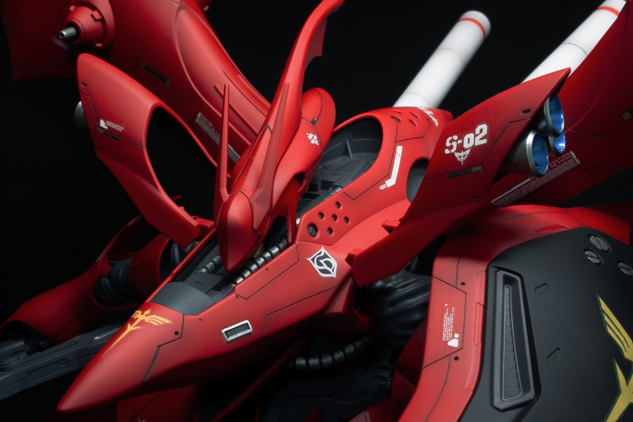 バーニア内部は青色を選択。赤い機体にアクセントカラーとなってオシャレな感じですね。