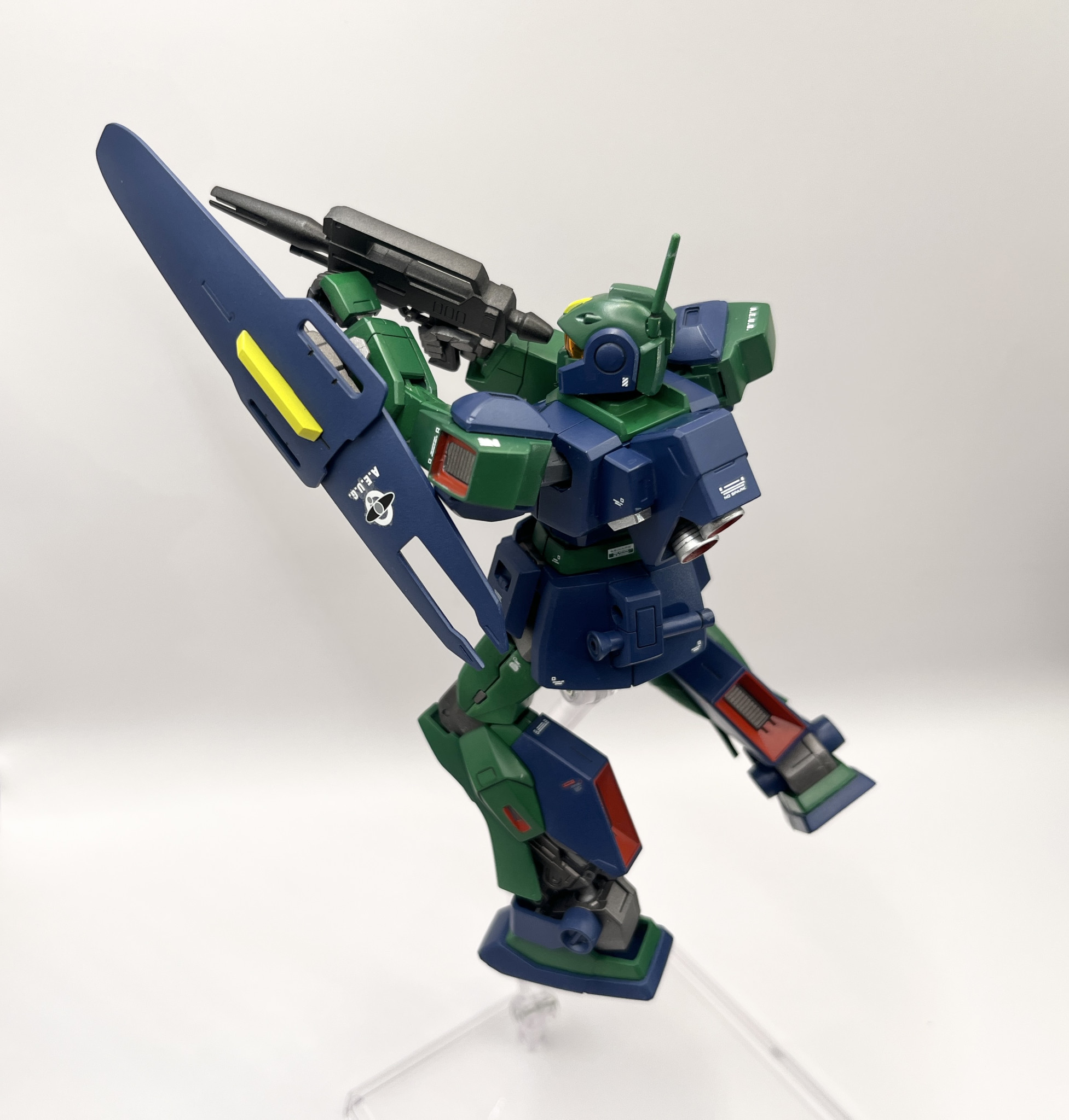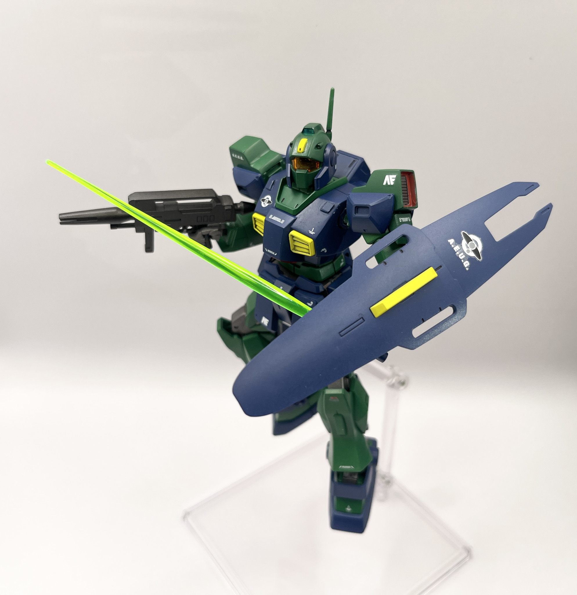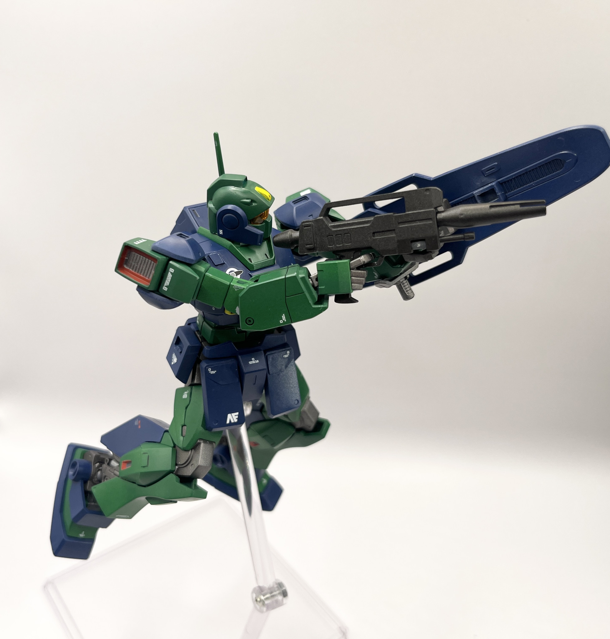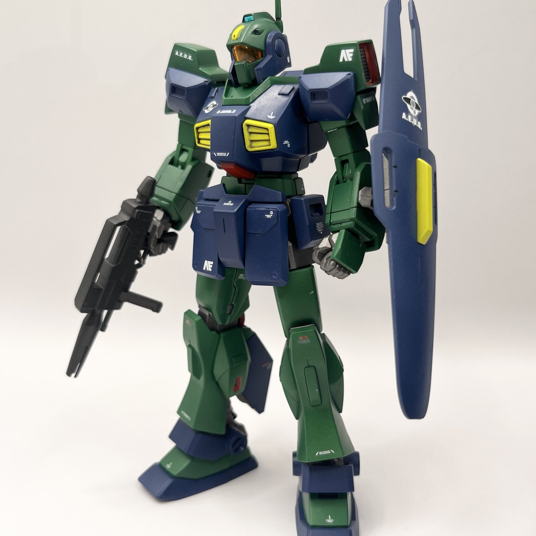 HGUCネモです。合わせ目消し、プラ板ディティール追加を少々、全塗装で仕上げました。