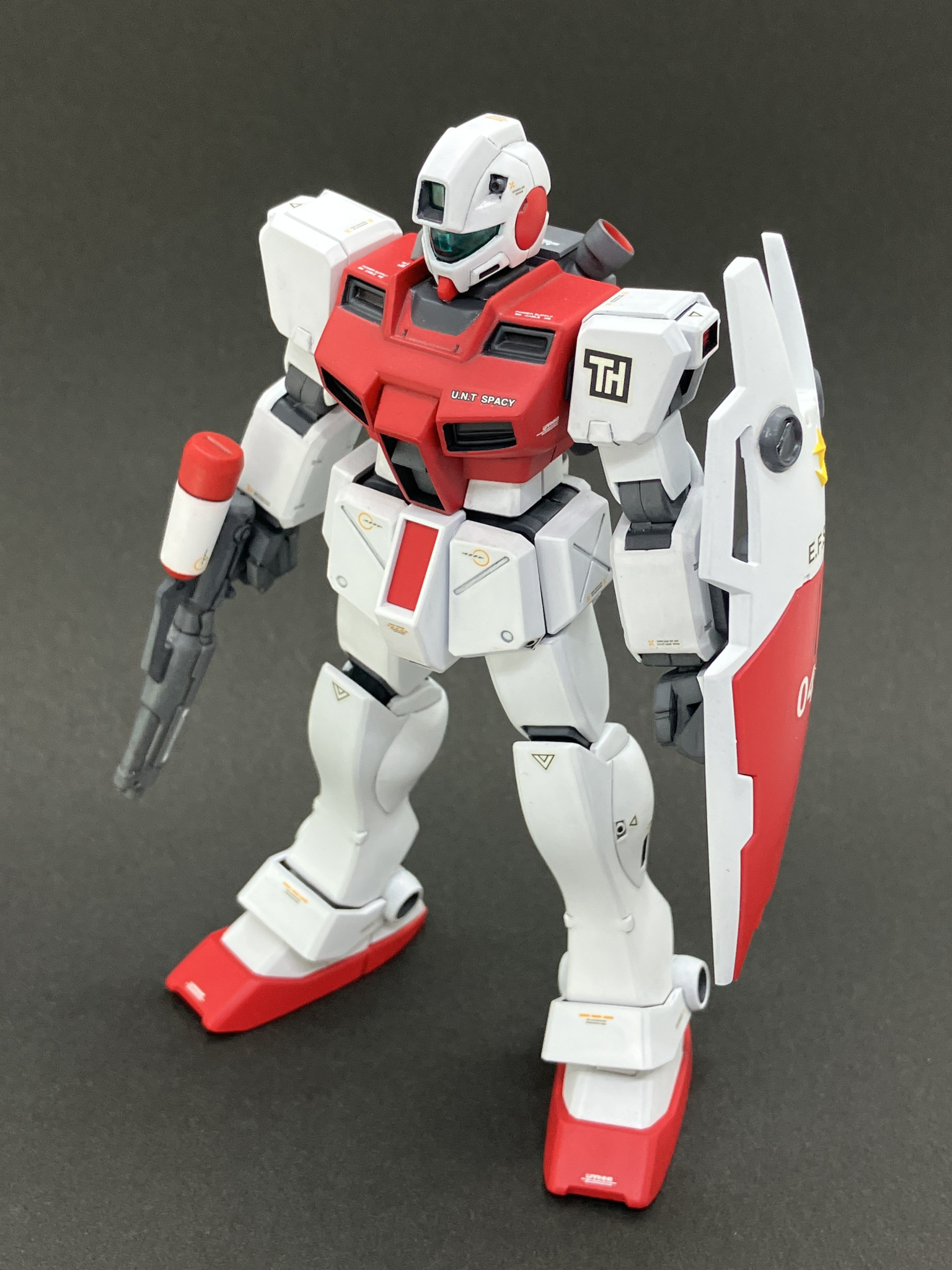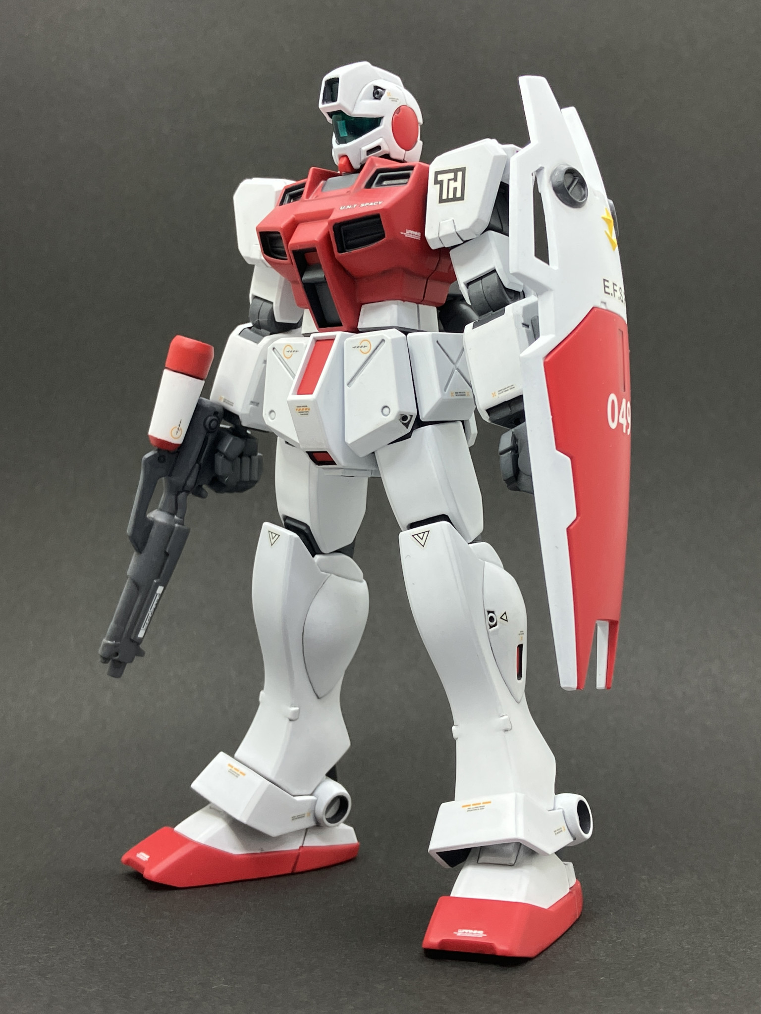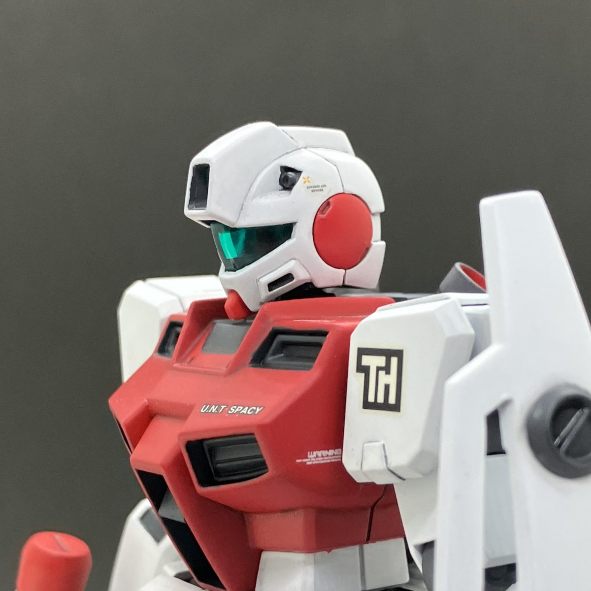 合わせ目が結構あるので時間がかかりましたが、シンプルな形状とクールホワイトが映えるジムになってくれました。頭部の裏側を暗く塗ったので、バイザーが綺麗に見えてくれました。オススメですよ。