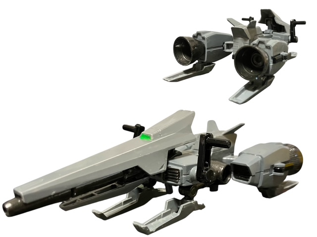 オプション装備「デミライダー」。螺鈿ワークス製「ミッションポッド」の多様性に着目した連邦軍が、強襲作戦向けにメガライダーのダウンサイジングを図った装備です。
