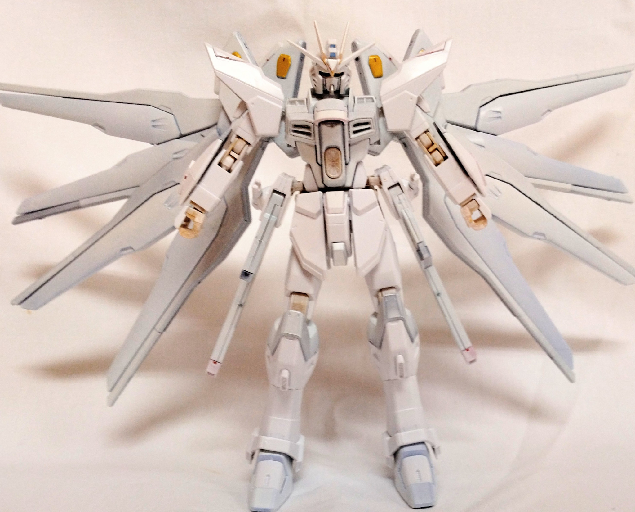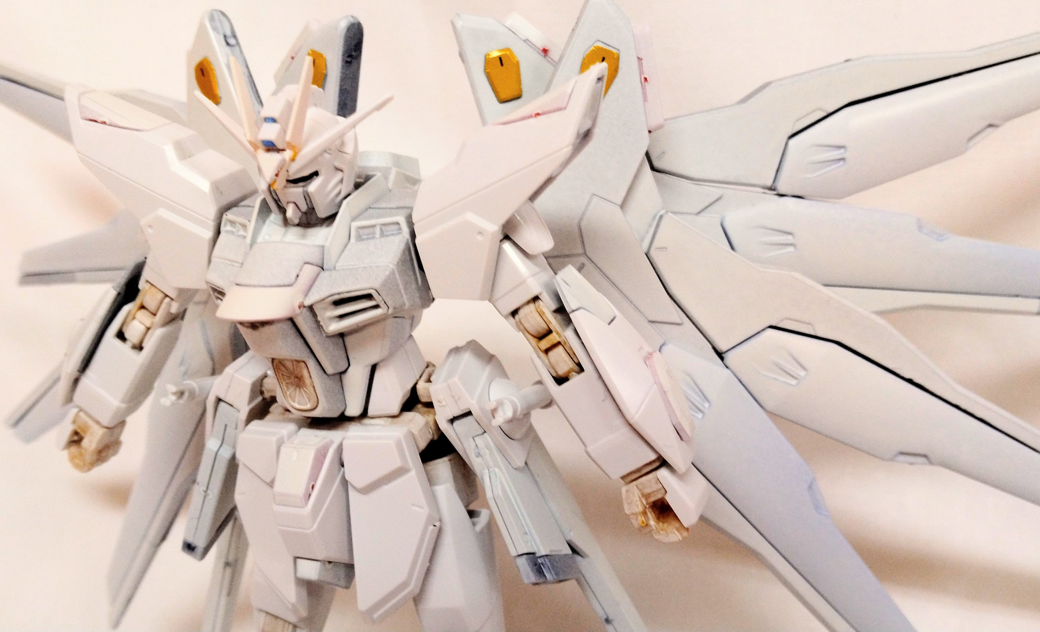 藤岳 HG 2026.03/02更新 ホワイトなストライクフリーダムHG 32 15 いいねしたモデラー(15) 0 0 作品を共有 とてもお高いストライクフリーダムを見て、かっこいいなーって思ったので、自分で塗ってみました 観測所でもらったカレンダーをバックにしてみました ドキューンはじめに、ランナーごと白く塗っちゃいましたサーフェイサーとかはあまりやらず、元の色を残すようにしましたが、中々色がつきにくく、4回くらい重ね塗りしました塗り分けたわけではなく、地の色が透けてるんです関節とかのゴールドがうまく色がつきませんでした時間を見つけながら、少しずつ作ってますだんだん棚に増えていくし、作ってないのも増えますね楽しみ楽しみ コメント コメントをして応援しよう コメントにはログインが必要です 藤岳 色々見ていたら、自分でも作ってみたくなり、令和7年から始めた新参者の初心者です 皆さんの投稿を見て勉強させてもらってます 4 自由にフリーダムガンダム フリーダムを浅葱色をメインに塗ってみました 7 メタリックでハインドリー 素組みで置いていた HGハインドリーをメタリックカラーでキラ… 6 初投稿 HG ガンダムルブリス オレンジで部分塗装 初投稿です 5体ほど素組みで作り、ぼちぼち塗装も挑戦してみよ… 藤岳さんのページ この作品をお薦め作品に設定する Please login to update your profile! Please login to update your profile! Please login to update your profile! Please login to update your profile!