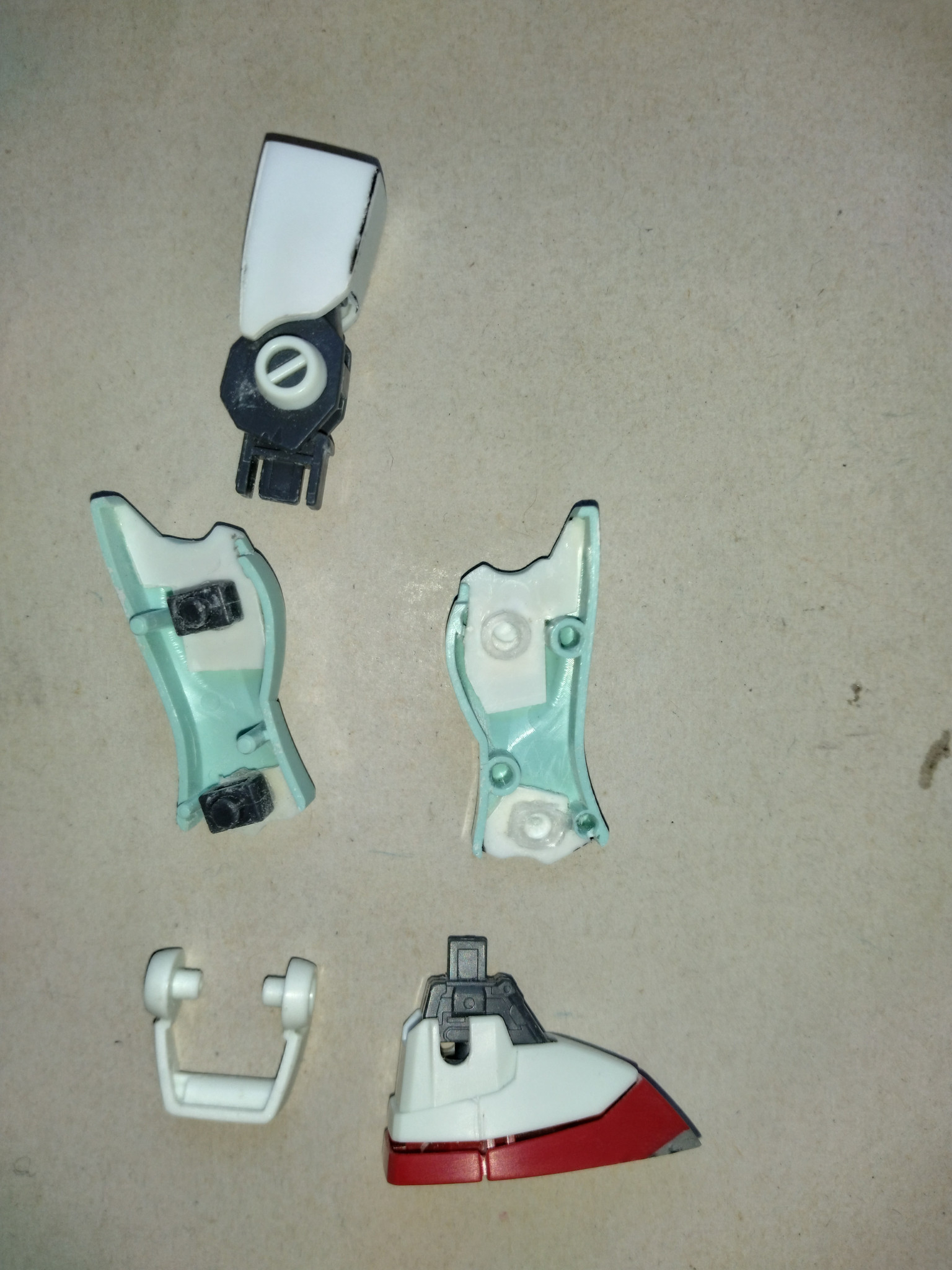 脛は素ジムのパーツの膝のマルイチモールドを削り落としリバイブガンダムの関節を入れた時にスカスカにならない様に1ミリプラ板を貼り付け調節してます。