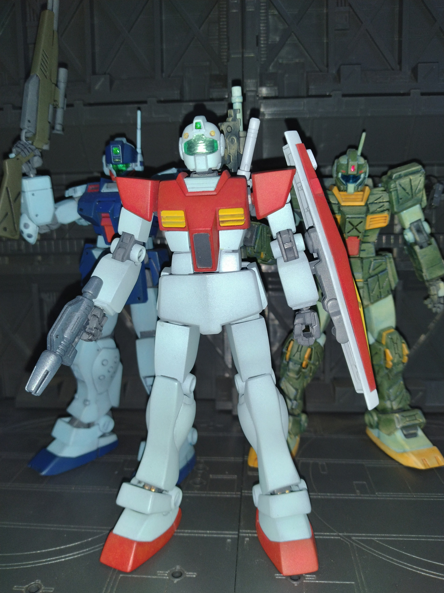 待てど暮らせどリバイブ版のジムが発売されてないのでHGUCガンダム(リバイブ)をHGUCジムとミキシングしリバイブ風に改造しジムの日に合わせ投稿しました。 因みにHGUCジムのパッケージ風のポージングです。