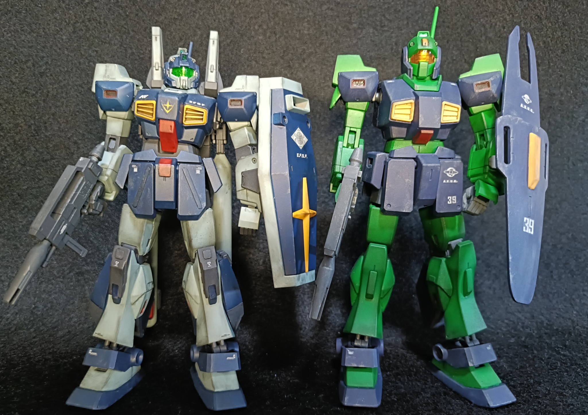 左腕の増設アーマーの中には、近接ダガーを収納している。ライフルやシールドはジム系を使用した。