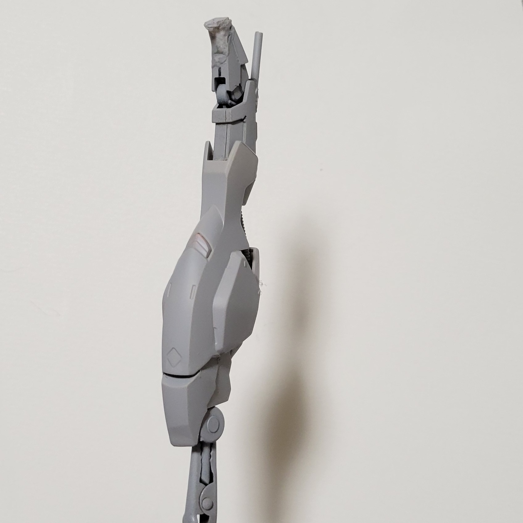 脛。ハイヒールはアロンアルファを瞬着硬化スプレーで硬化させたのですが、ヤスリで削るのがめんどくさかったのでそのままサフりました。