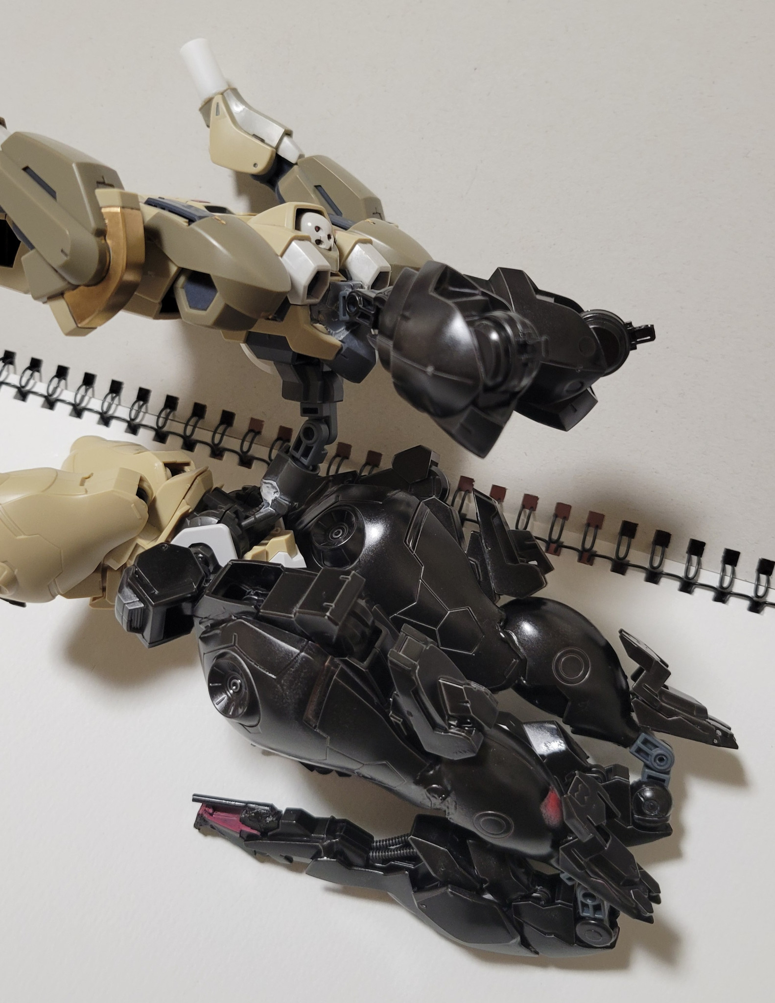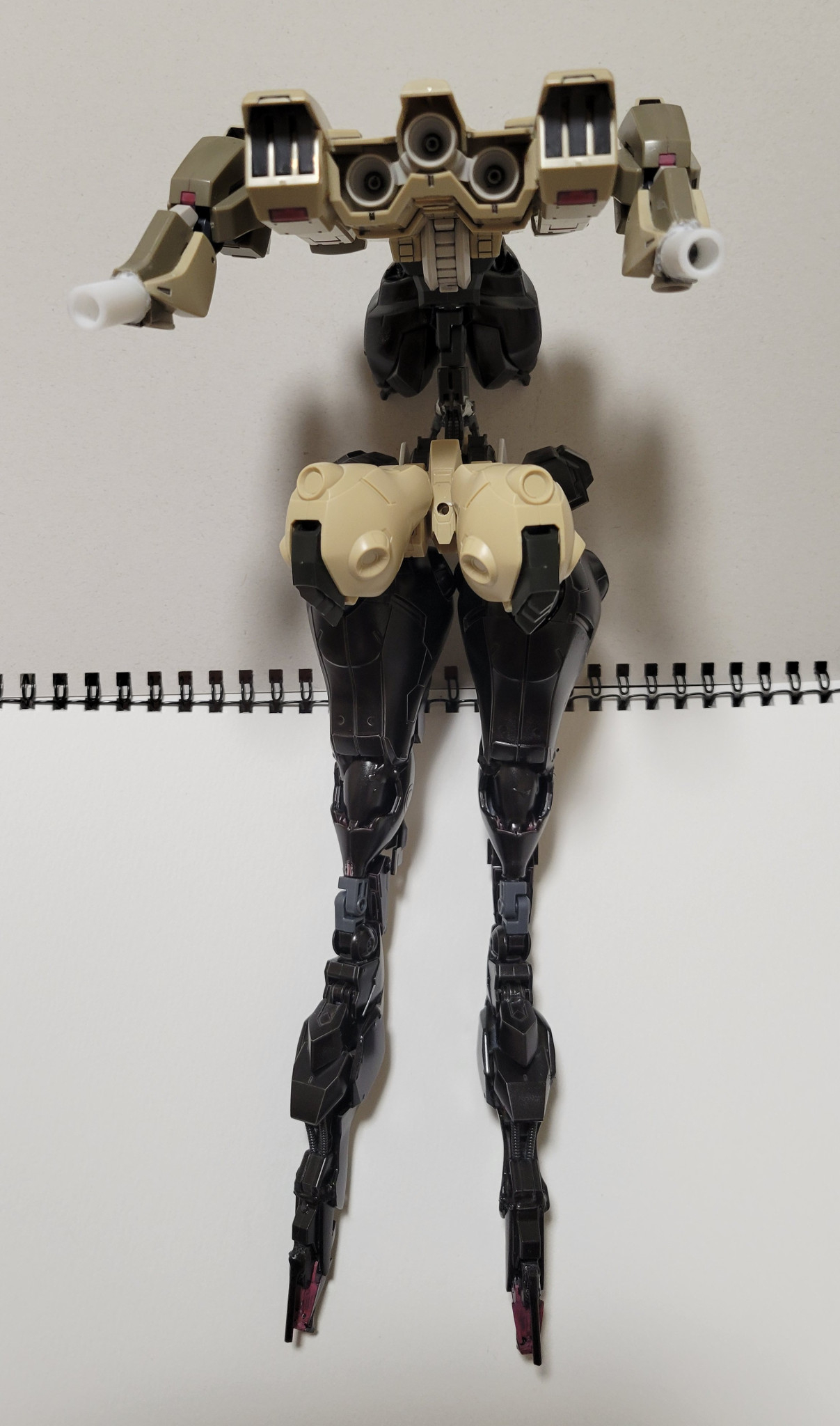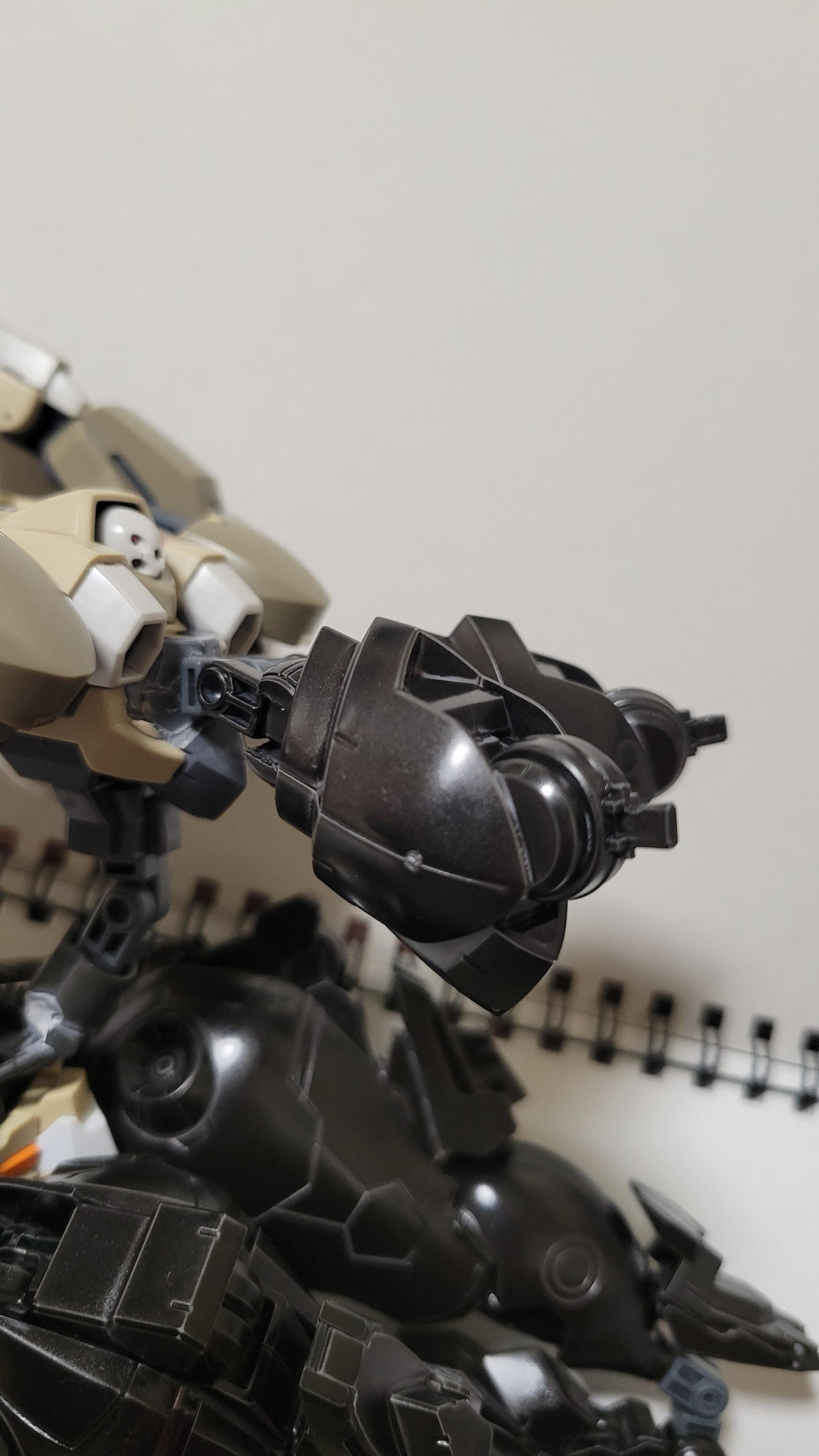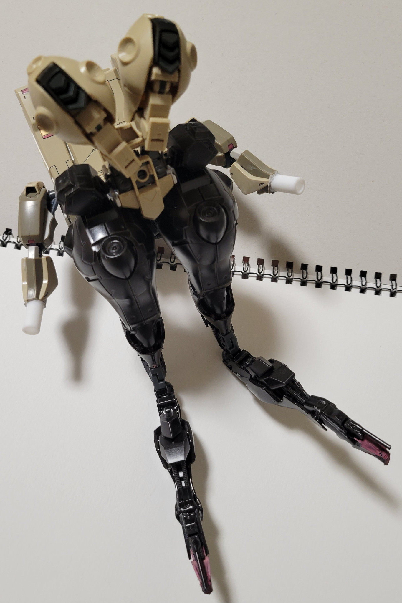 どうも、土緑です。今回は部屋にあった百里をベースに改造したオリジナル機体を紹介いたします。それと一つ…今回の作品は全体的に関節が緩いのでスケッチブックに寝かせて撮ってます。ご了承ください。