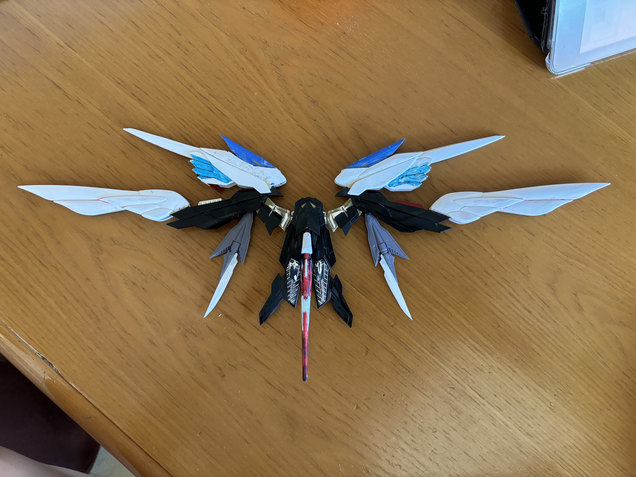 結構なサイズ感なのでいい感じに映えてくれるのありがたい。元々八咫烏モチーフで考えていたんですが、どちらかというと大天使とかに近いイメージになってるかも。尚当然自立性は皆無なので翼で支えています。