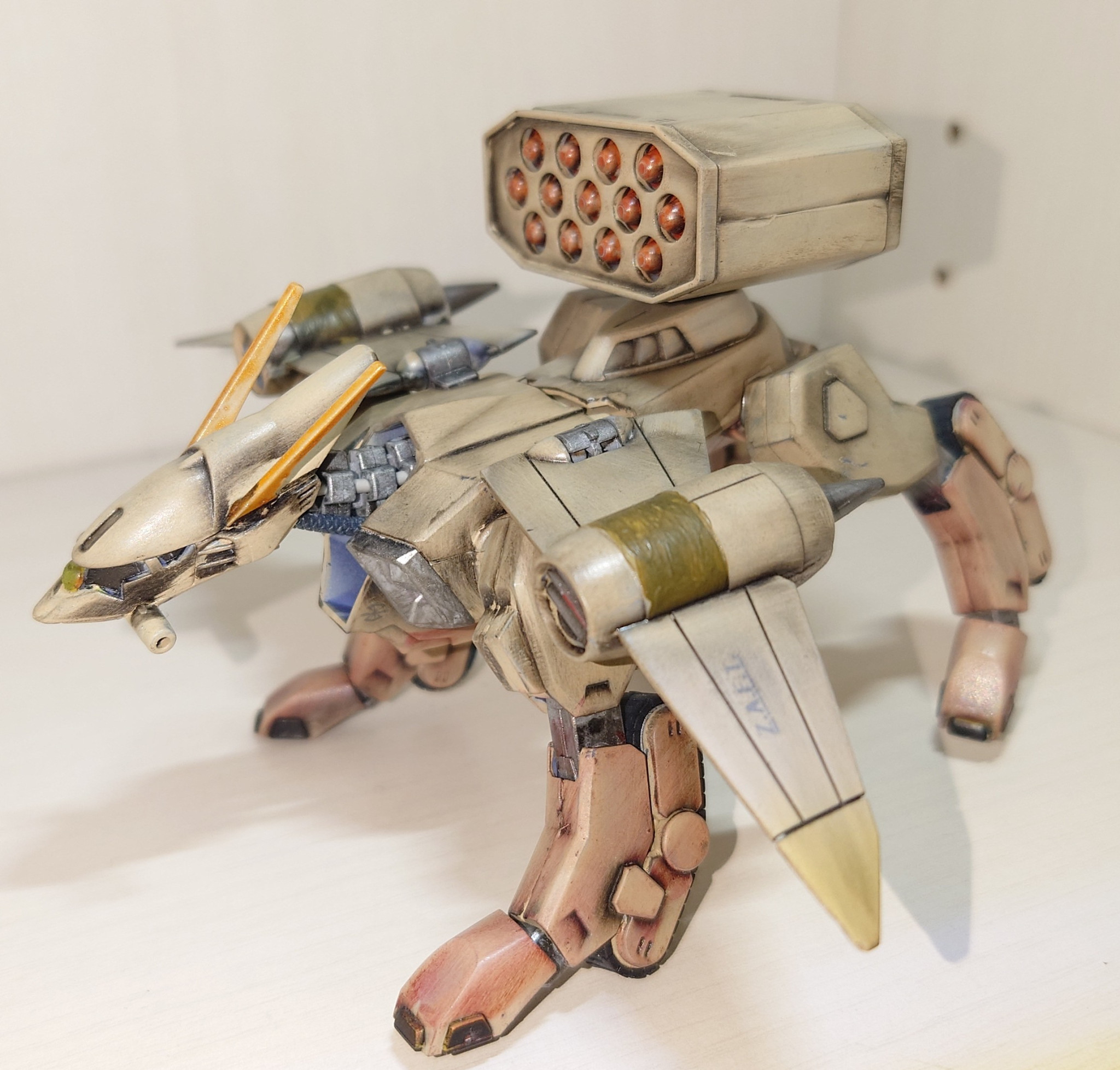 はい!「機動戦士ガンダムSEED」に登場した四つ足のMSバクゥを製作! 砂漠仕様にタン(ライトブラウン)カラーに全塗装 初めて四つ足MSを作るので時間がかかりましたが、キット自体はシンプルな組みやすい良キットです