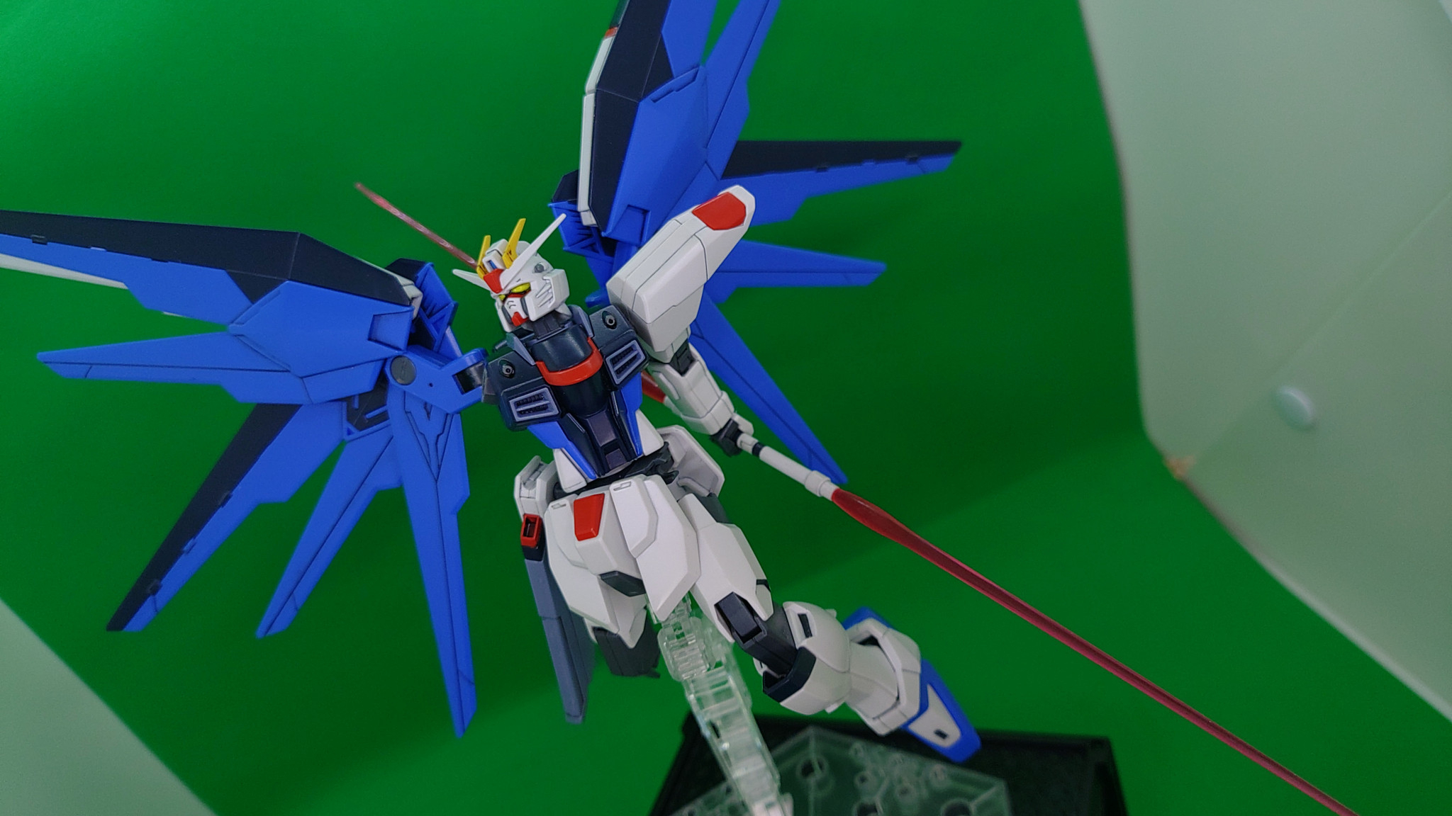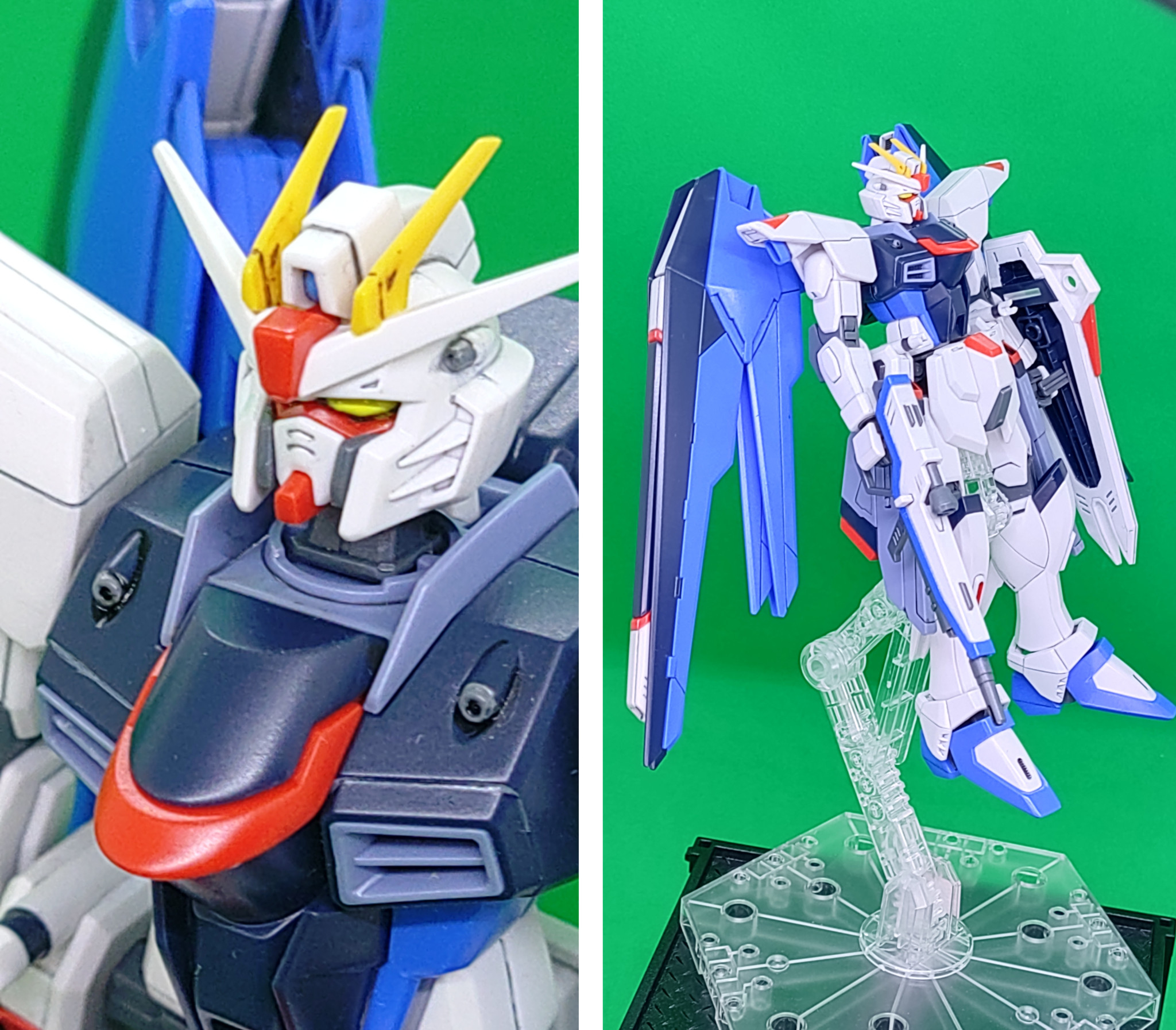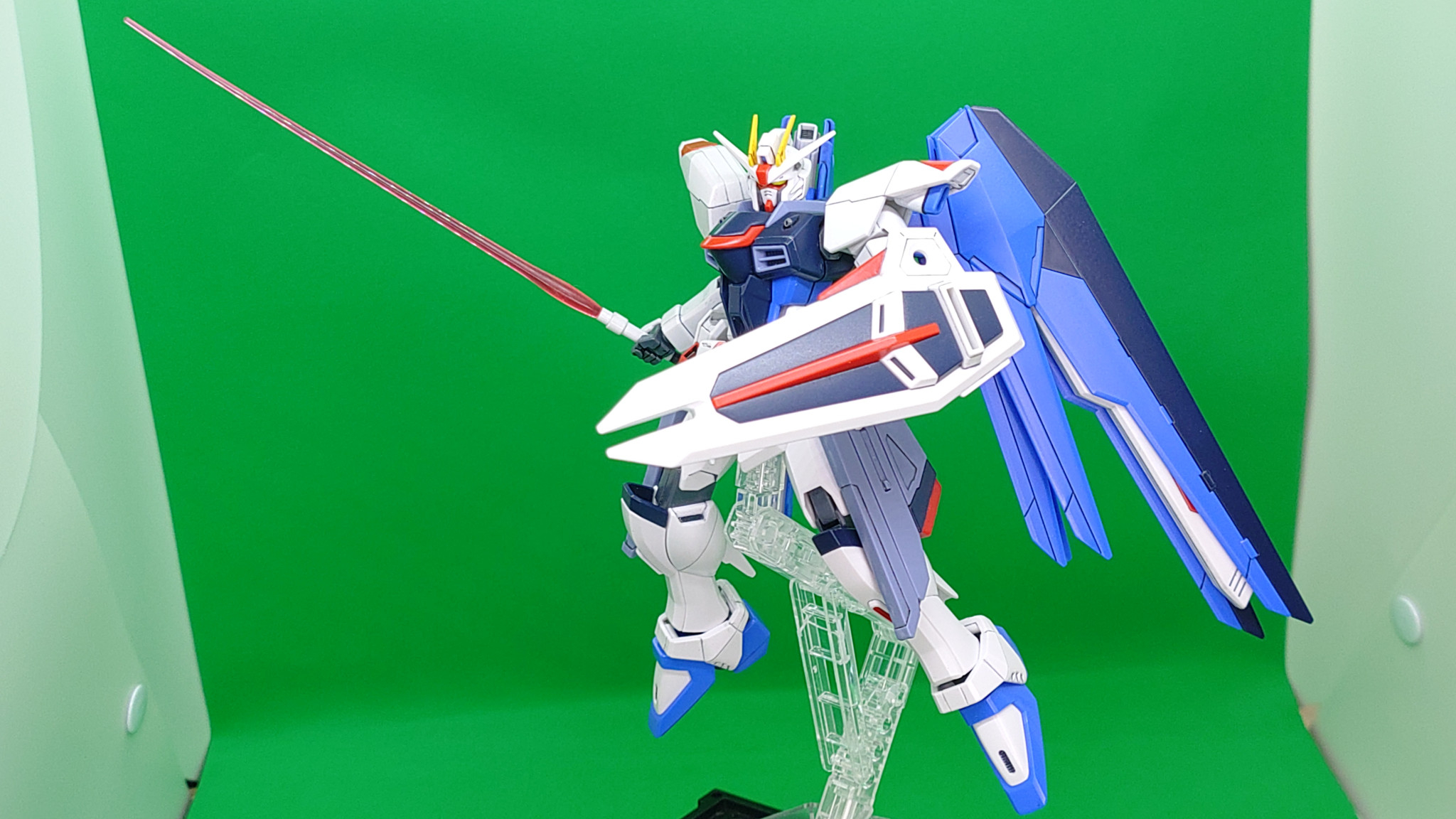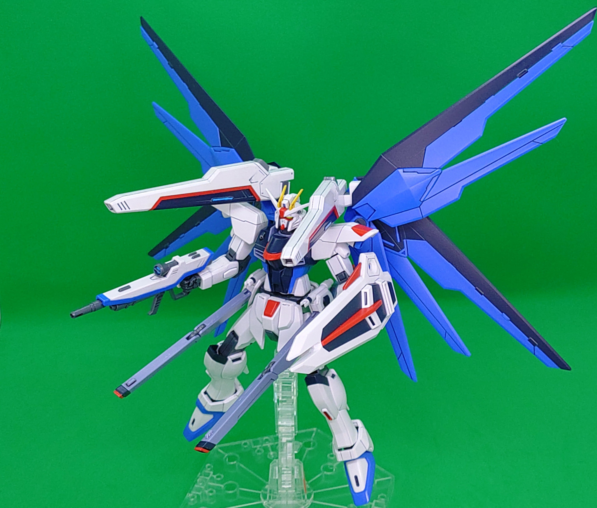 形状変更なし、ポイント塗装で仕上げたHGCEフリーダムです。TVアニメ本編に近づけることを理想に作りました。