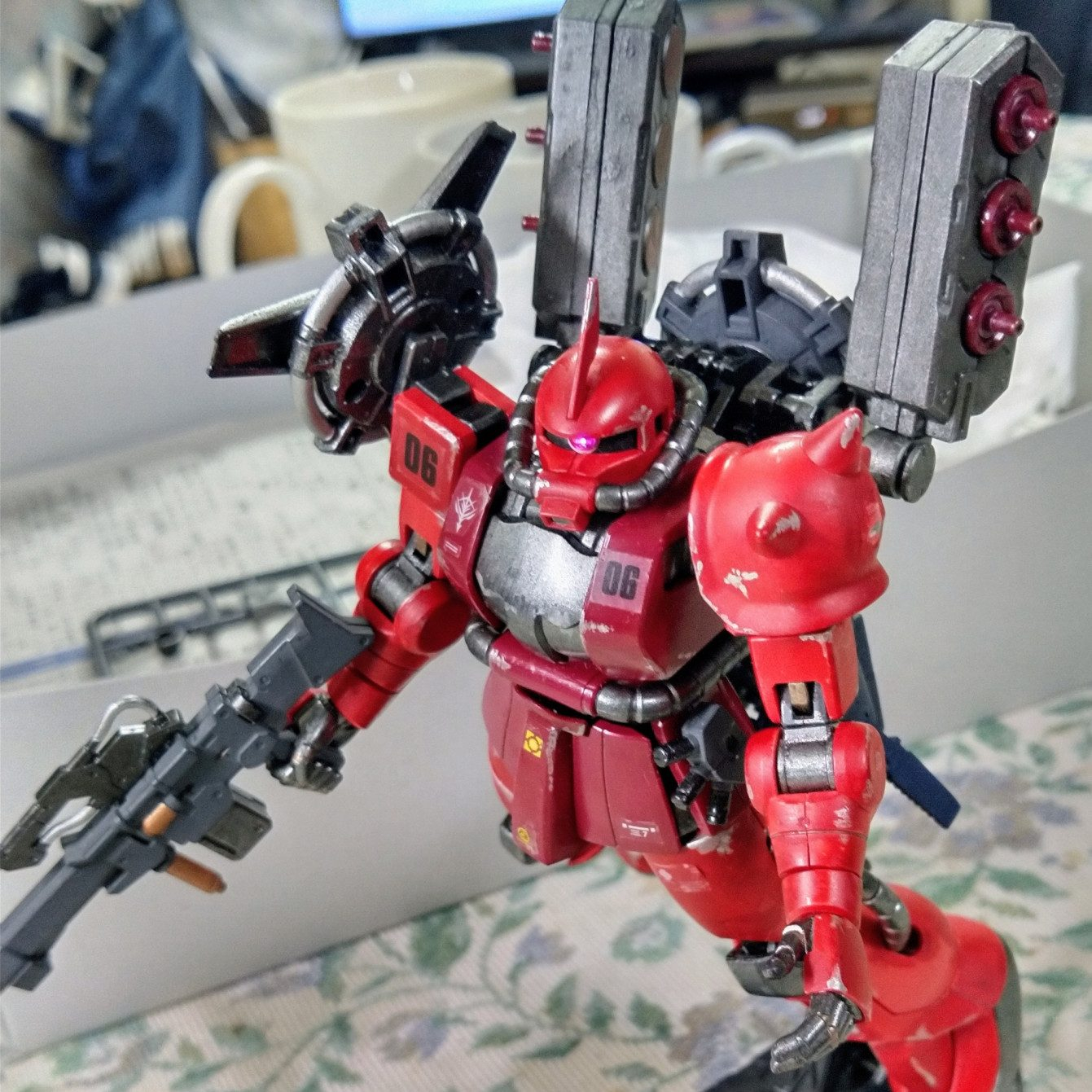 作品中では所在不明になったシャアザク。こんな流用もありかなと。背中にはテストデータ収集用センサー装備。
