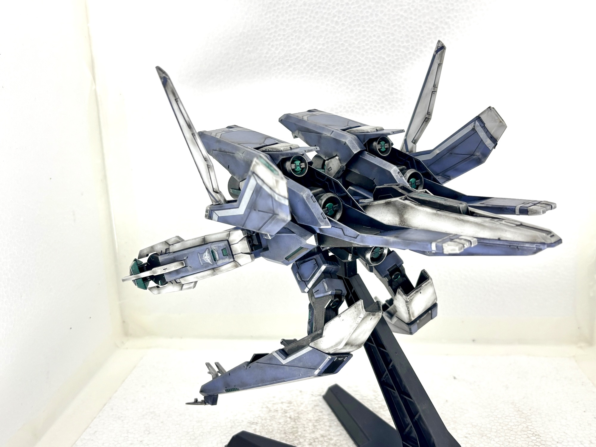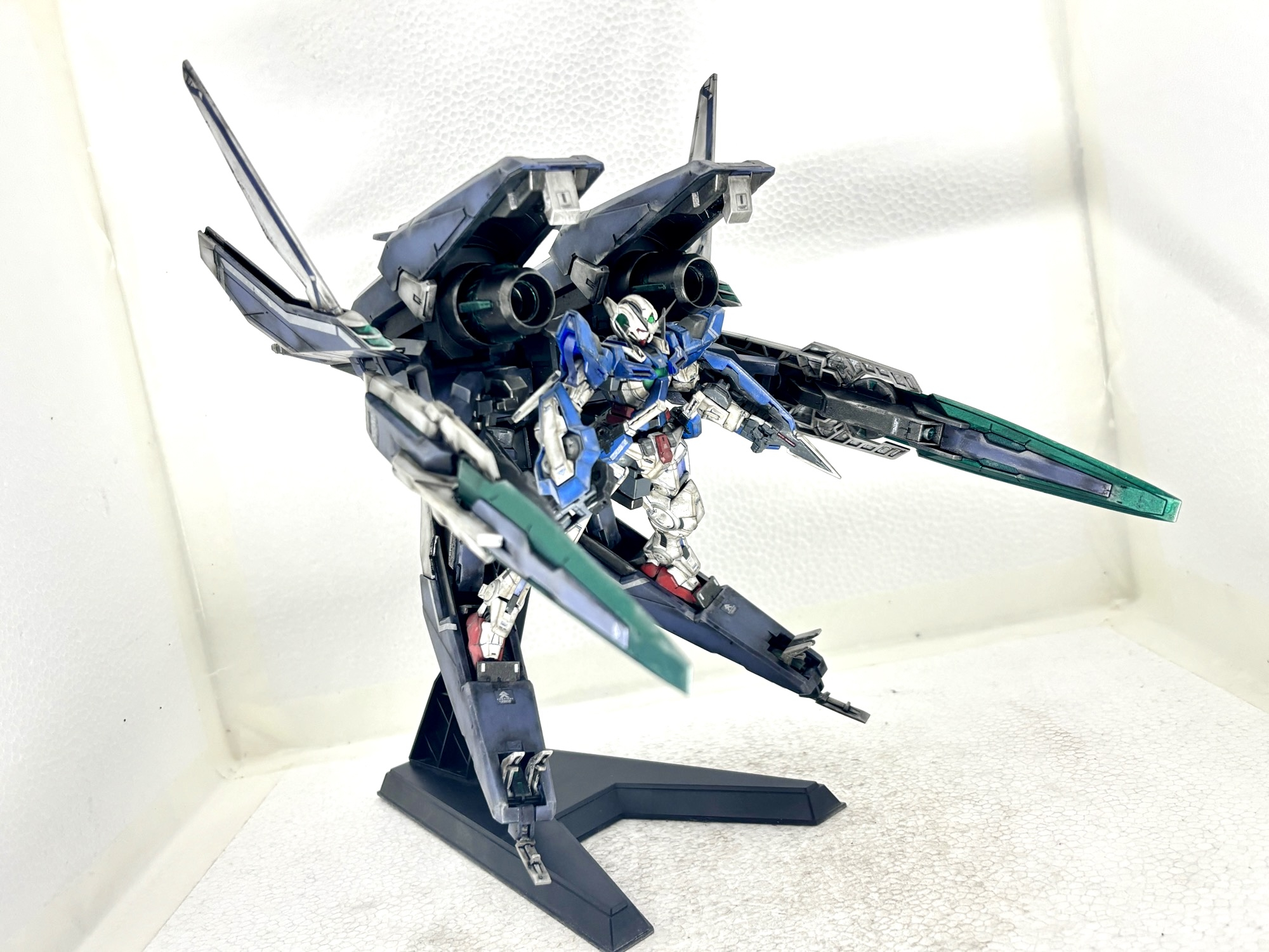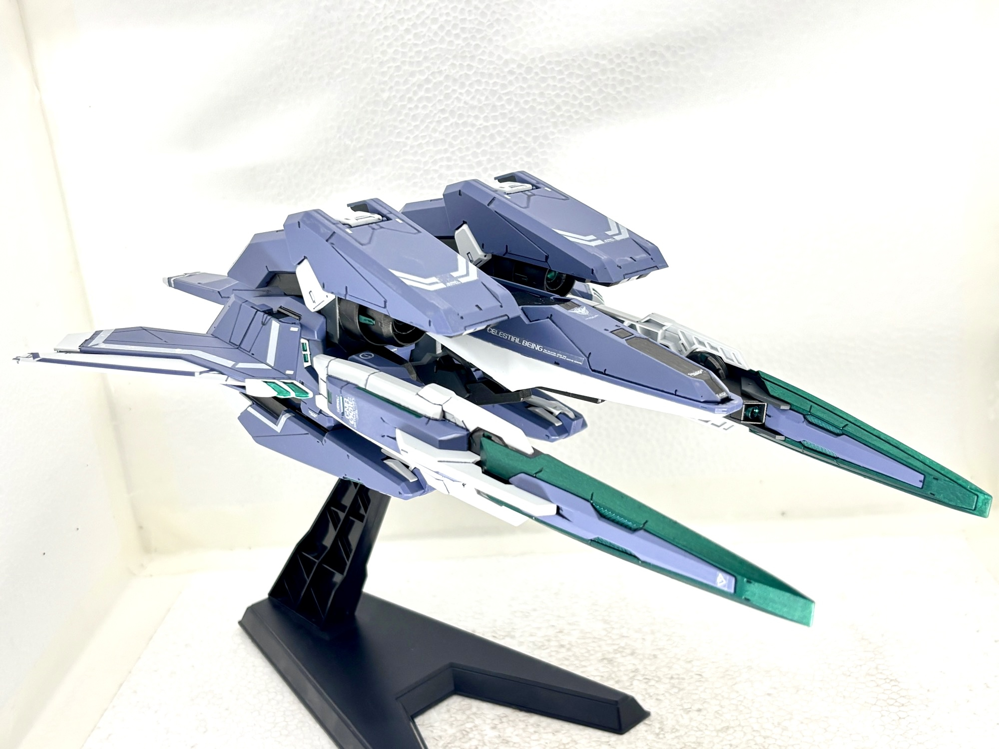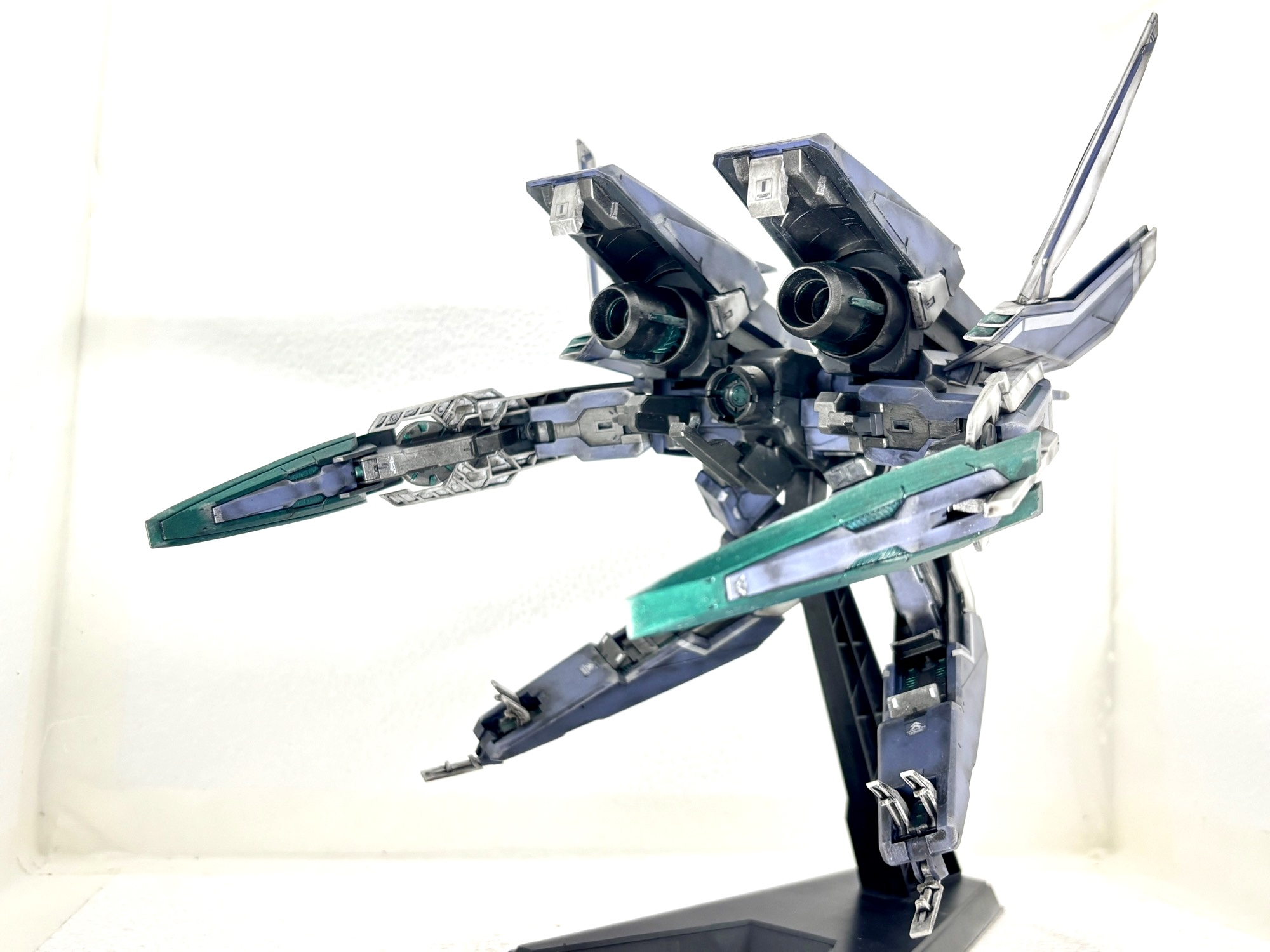 単独飛行形態。GNアームズは各所可動部に軽く水性ニスを施し強化をしました。大型キットですが組みやすく、保持力も十分でした。