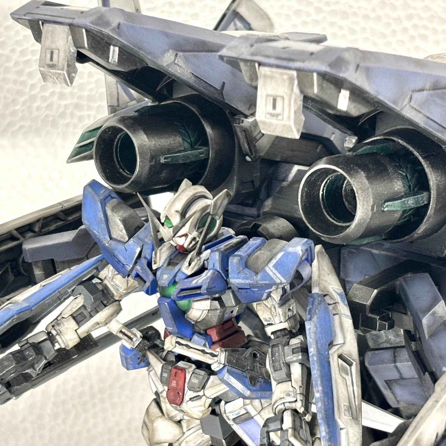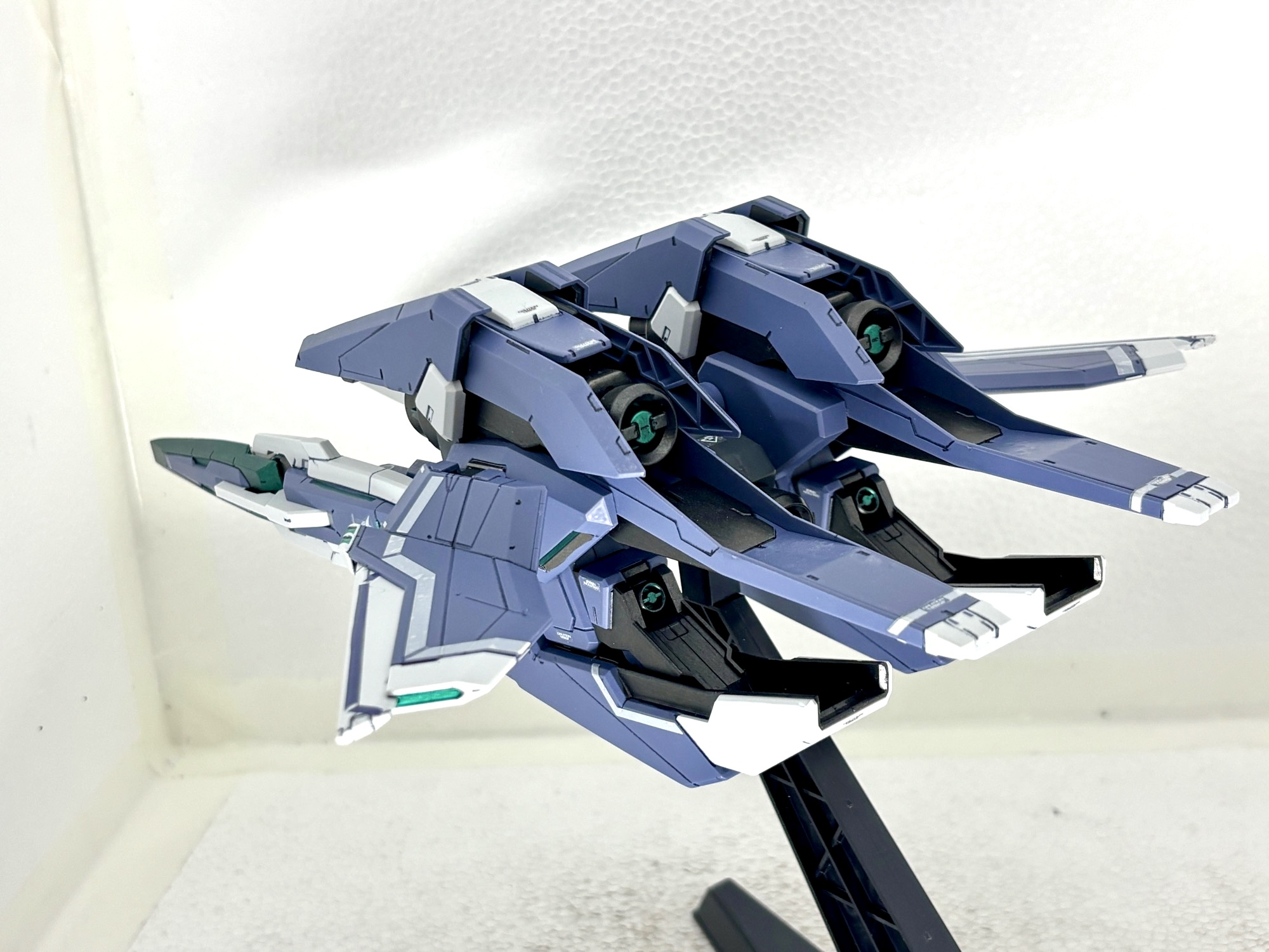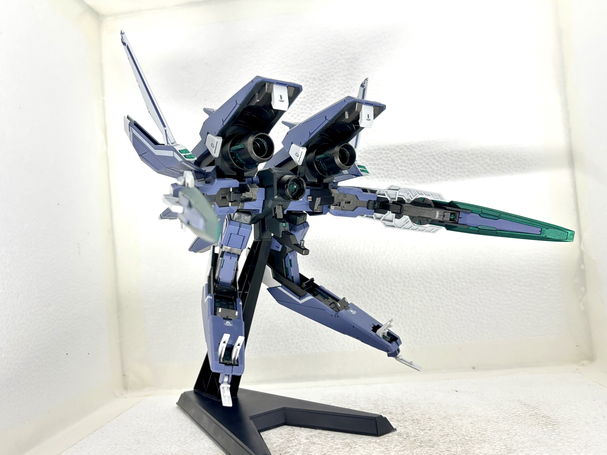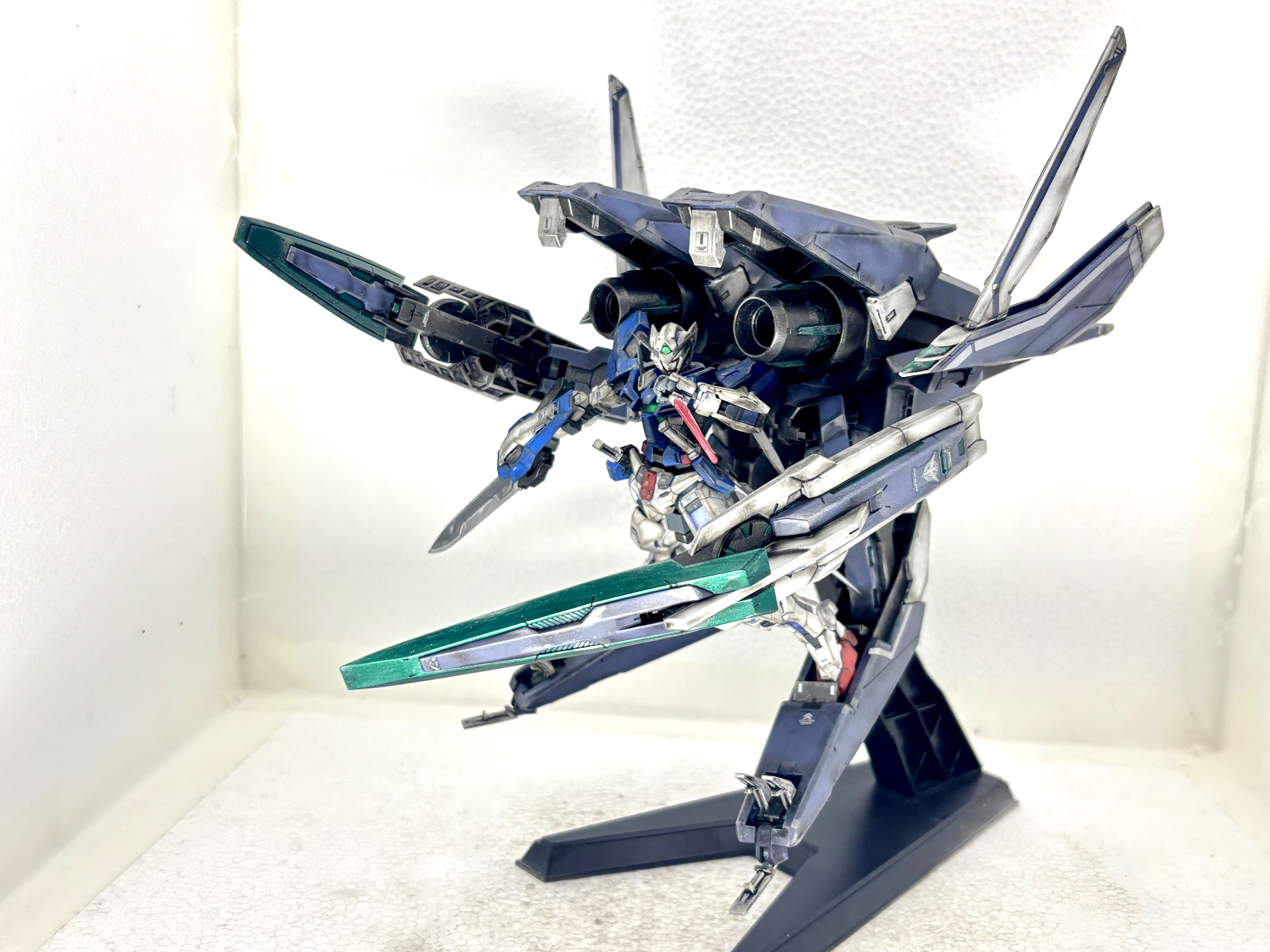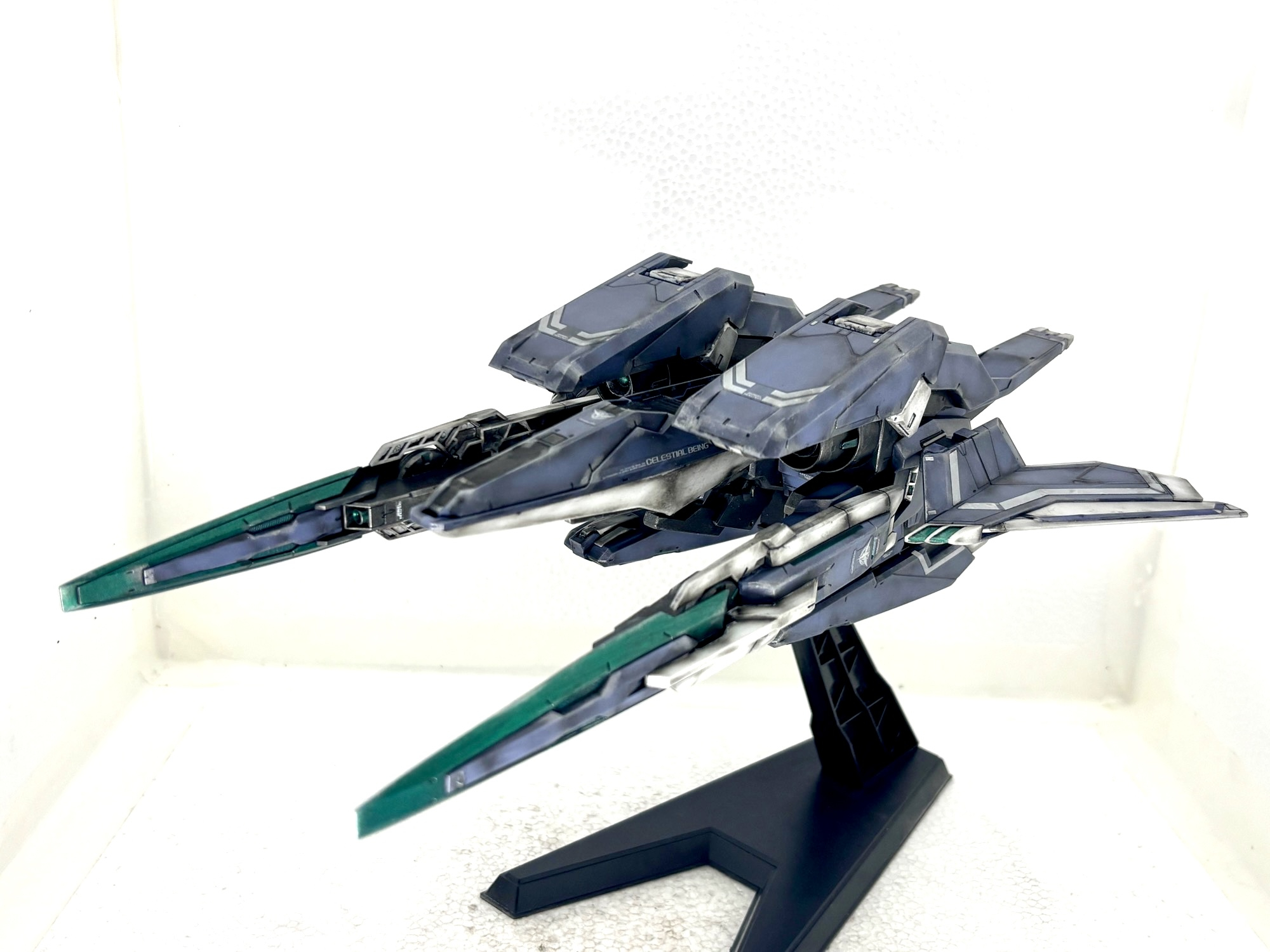 単独飛行形態。GNアームズは各所可動部に軽く水性ニスを施し強化をしました。大型キットですが組みやすく、保持力も十分でした。