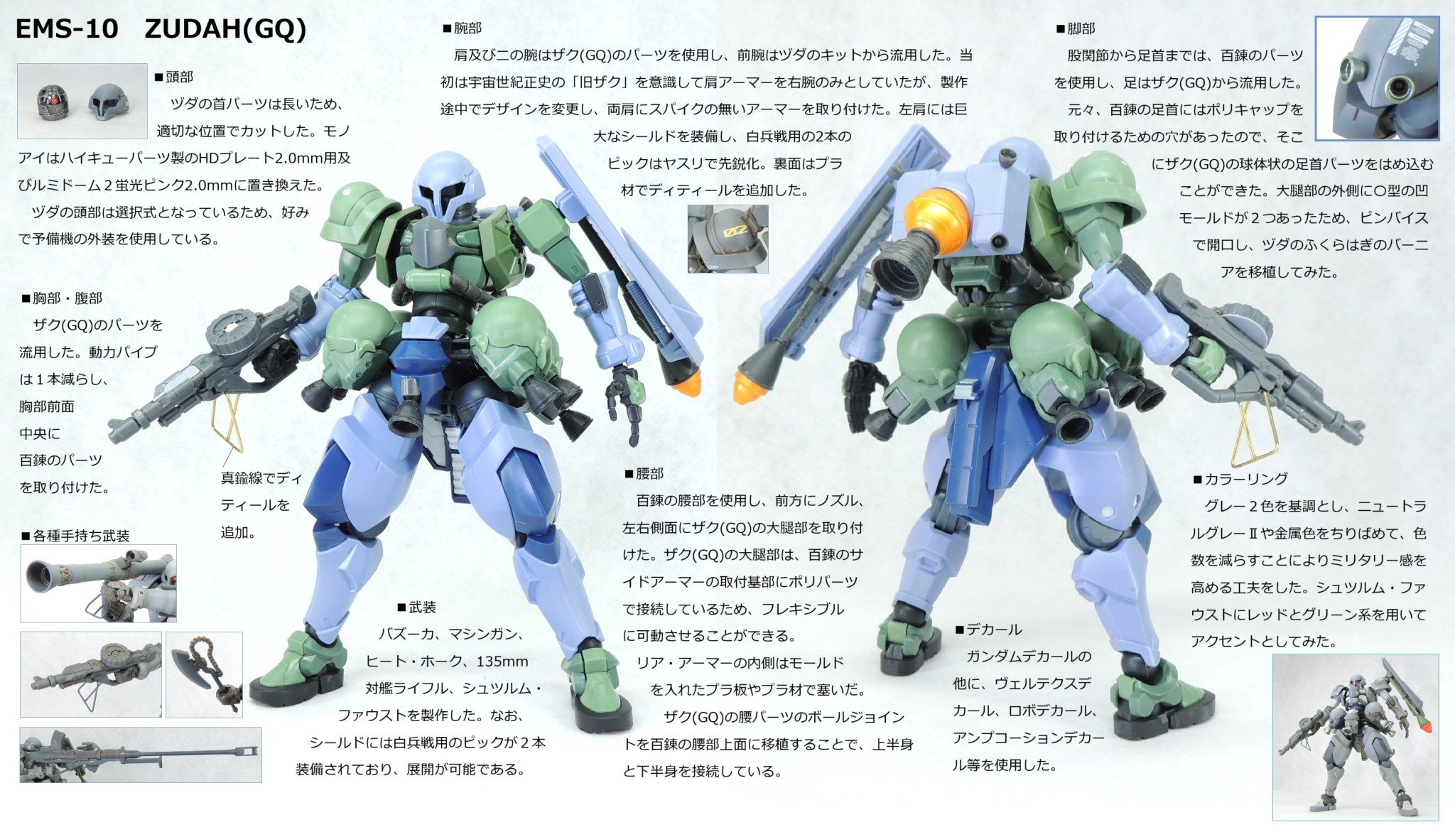 各キットの特徴的な部分がバランス良く配置され、自然なGQ感が醸し出されていますね。素晴らしいミキシングセンス(gandam-hand2)