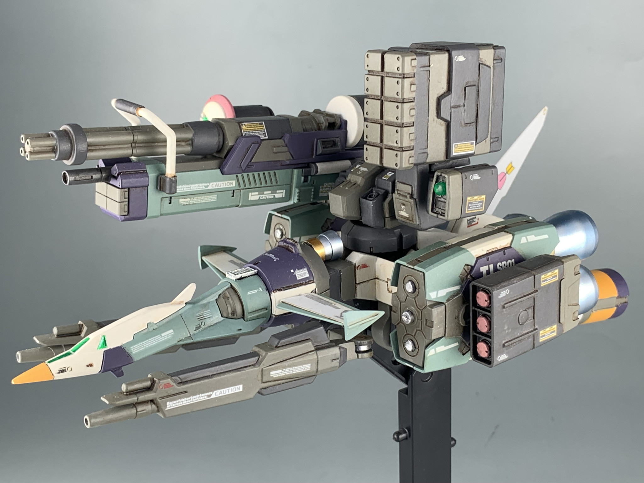 機首部分を外し、バックパックを合体。重装備形態になります。