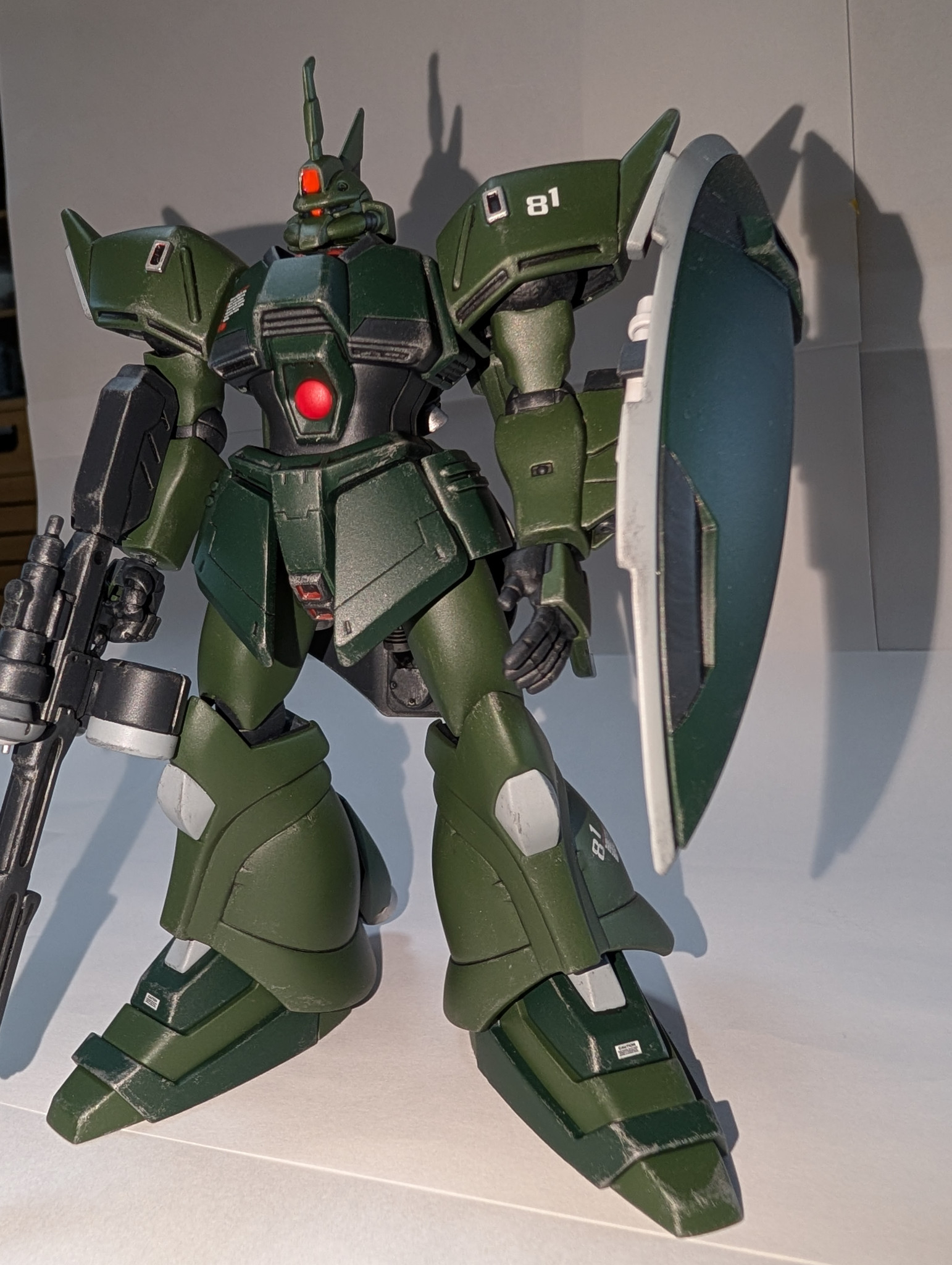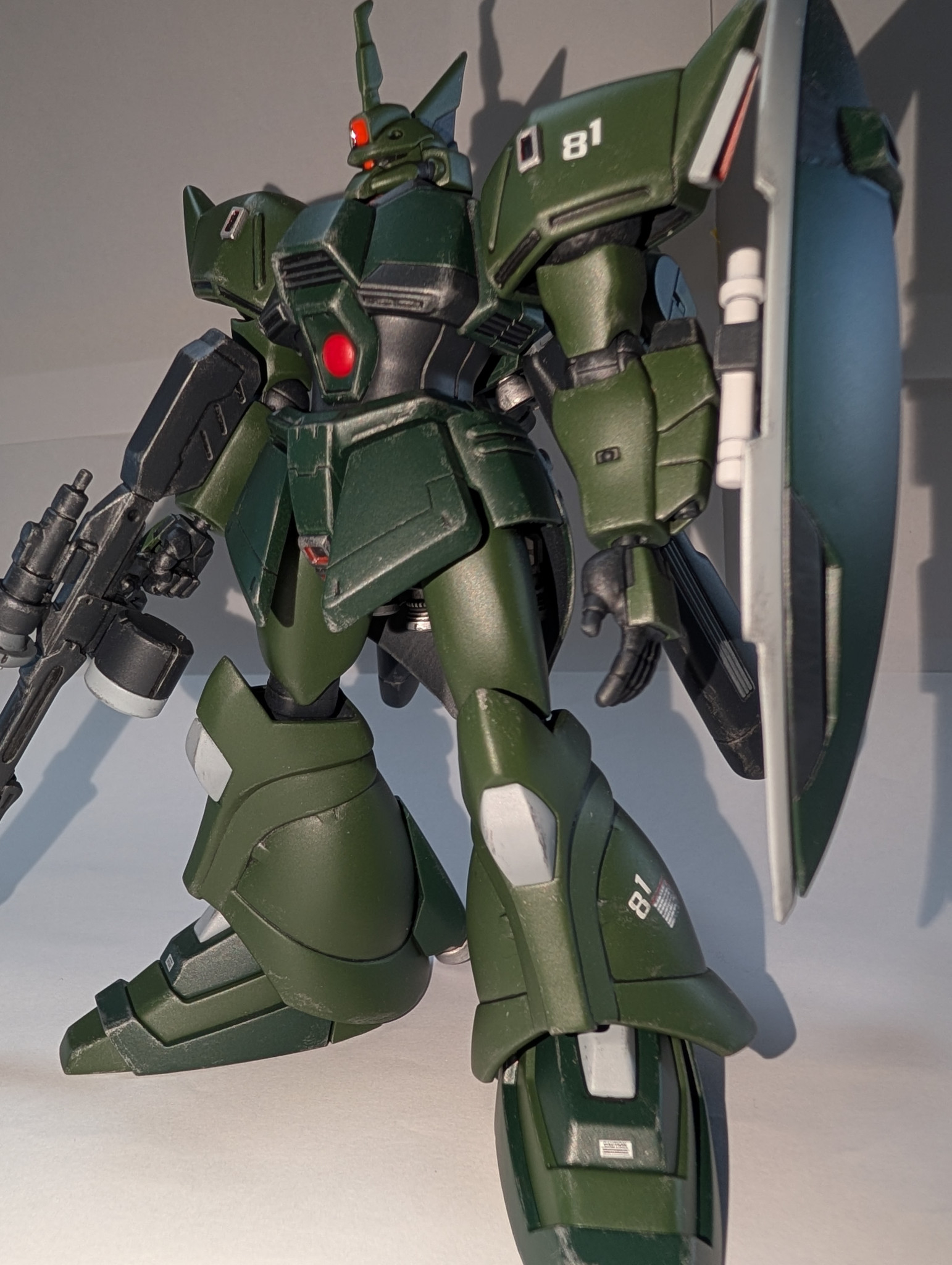 シールドは量産ゲルググから裏側も細かく塗り分けしナギナタは廃止し通常のビームサーベル装備です。