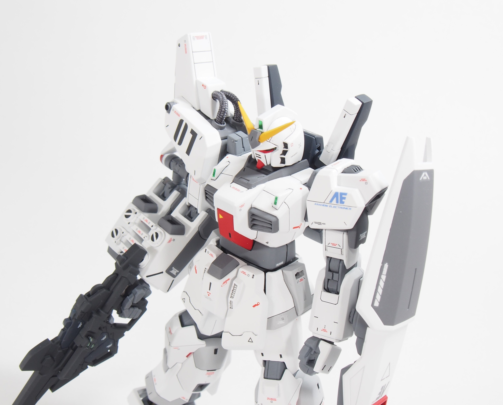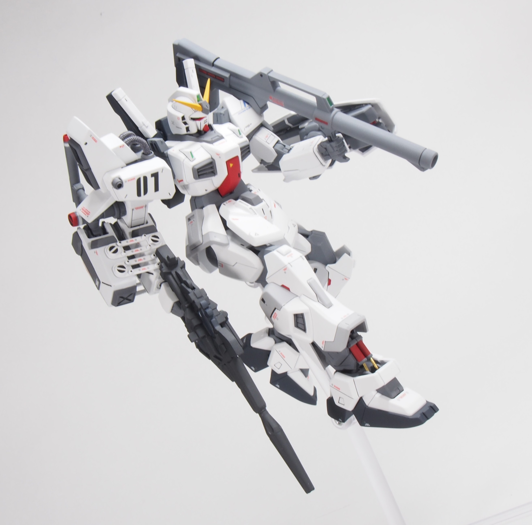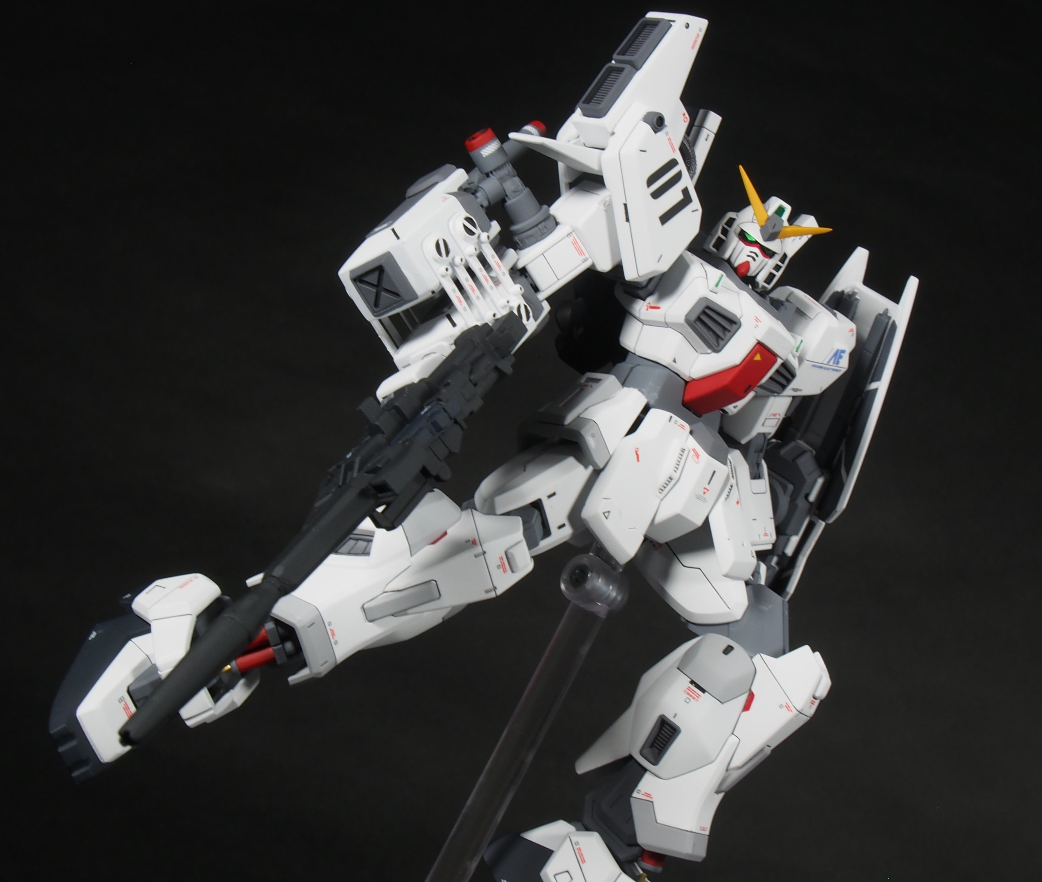 長い期間、戦場を渡り歩いて色々な人に搭乗されてきたガンダムMk-II。今回はバナージ君が搭乗し、ビームマグナムが撃てるように改造されています。