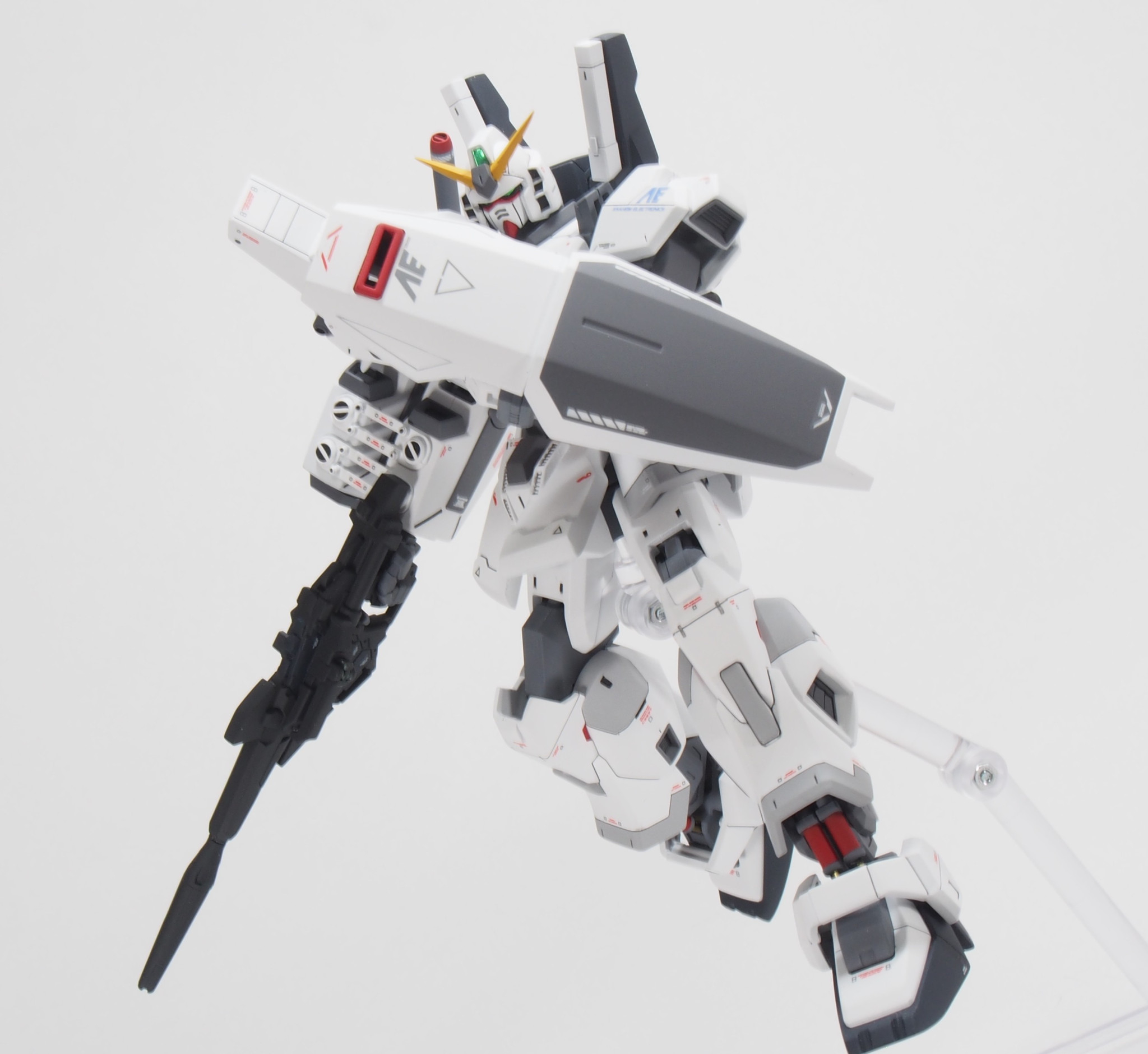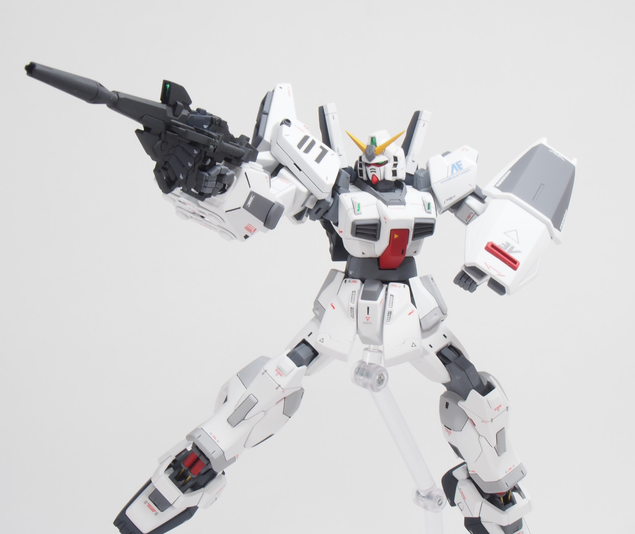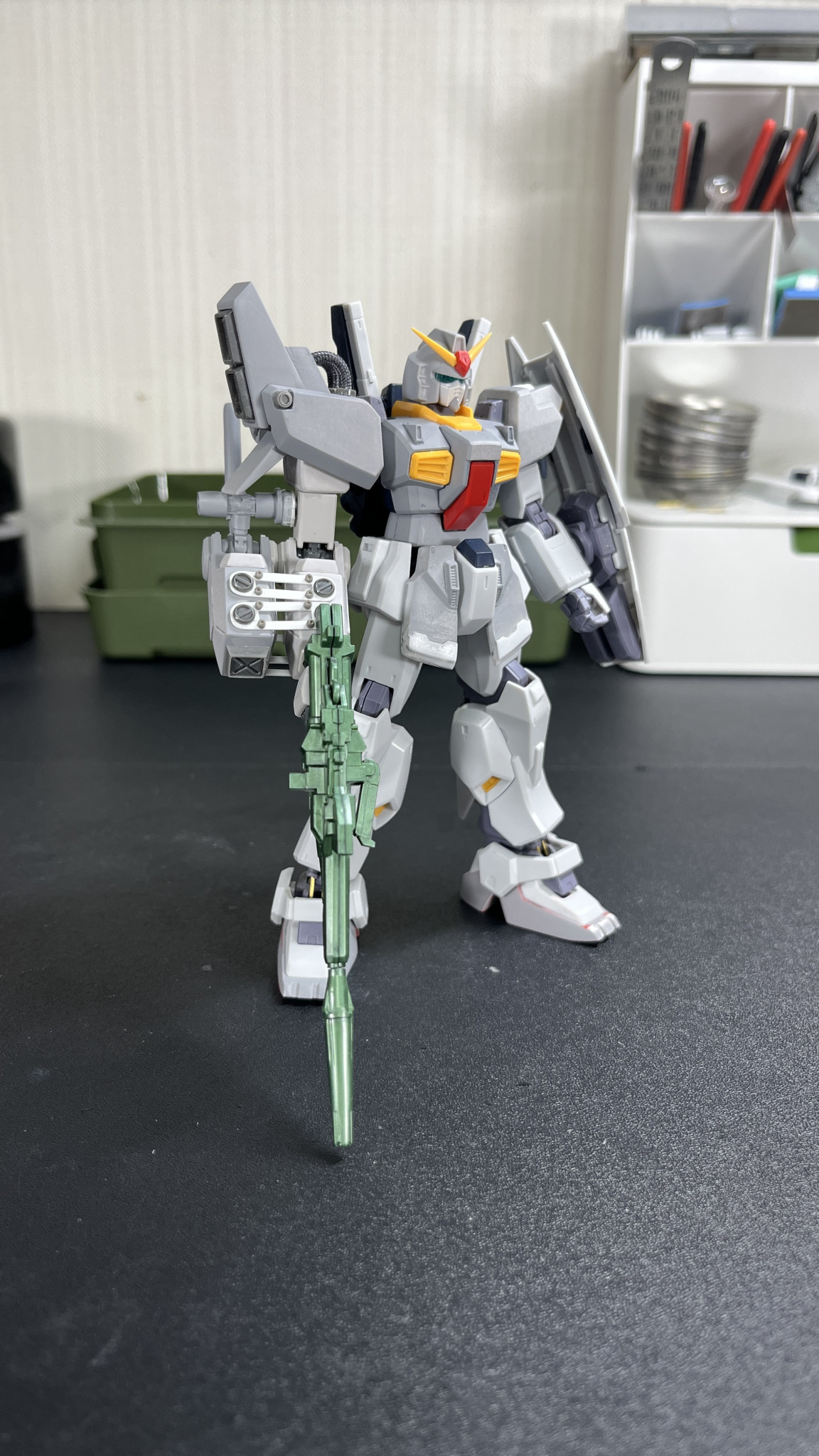 長い期間、戦場を渡り歩いて色々な人に搭乗されてきたガンダムMk-II。今回はバナージ君が搭乗し、ビームマグナムが撃てるように改造されています。
